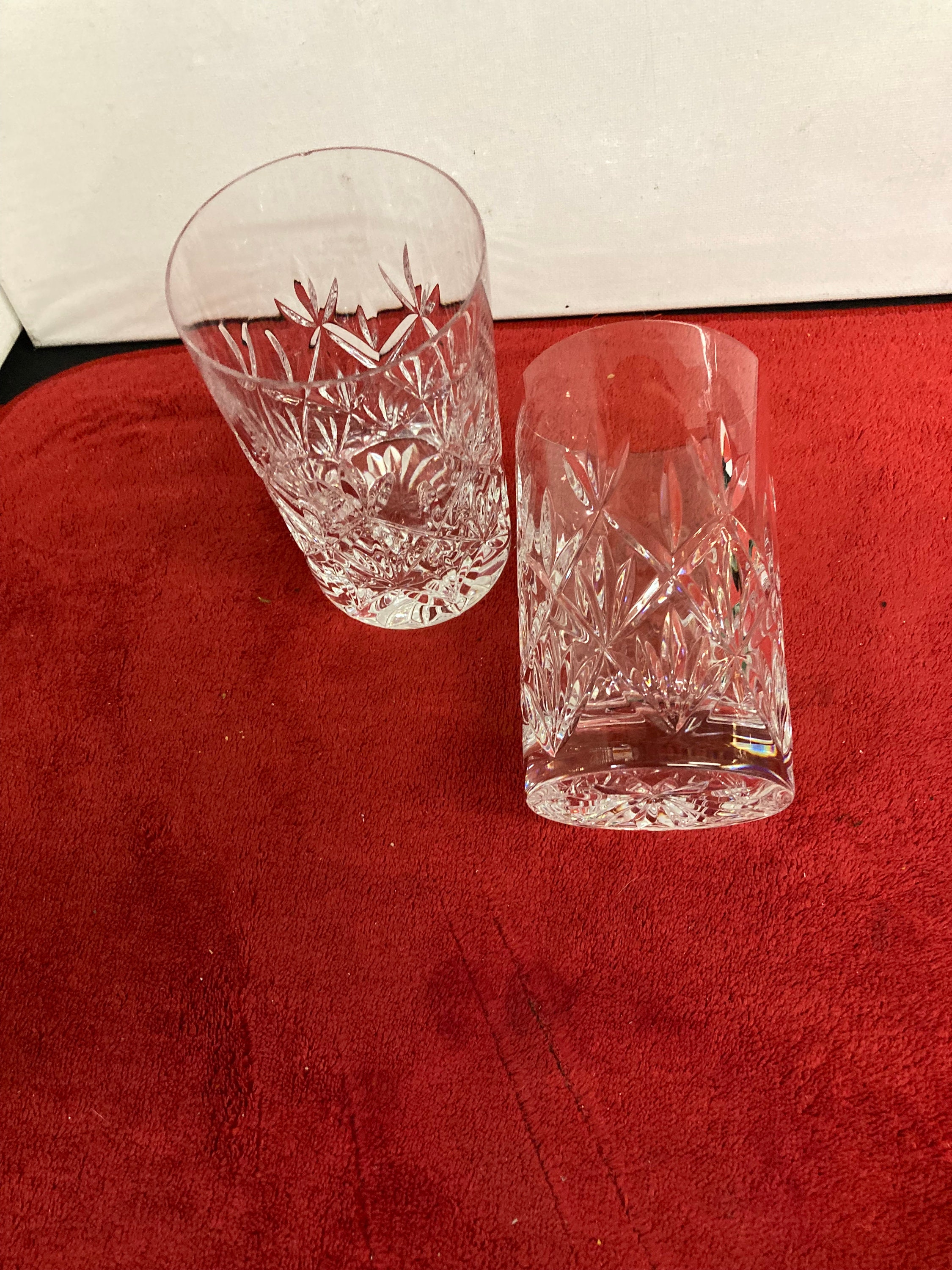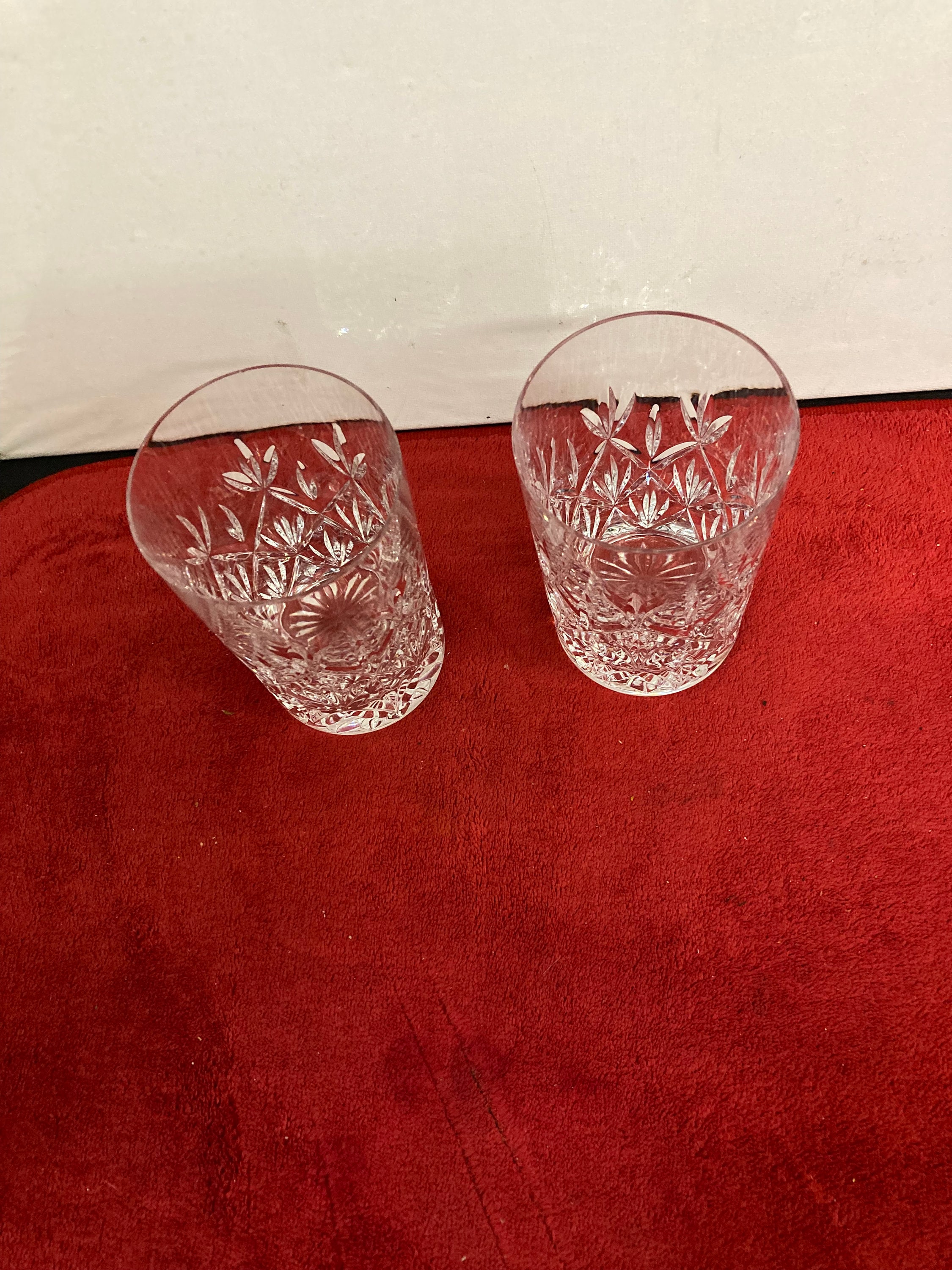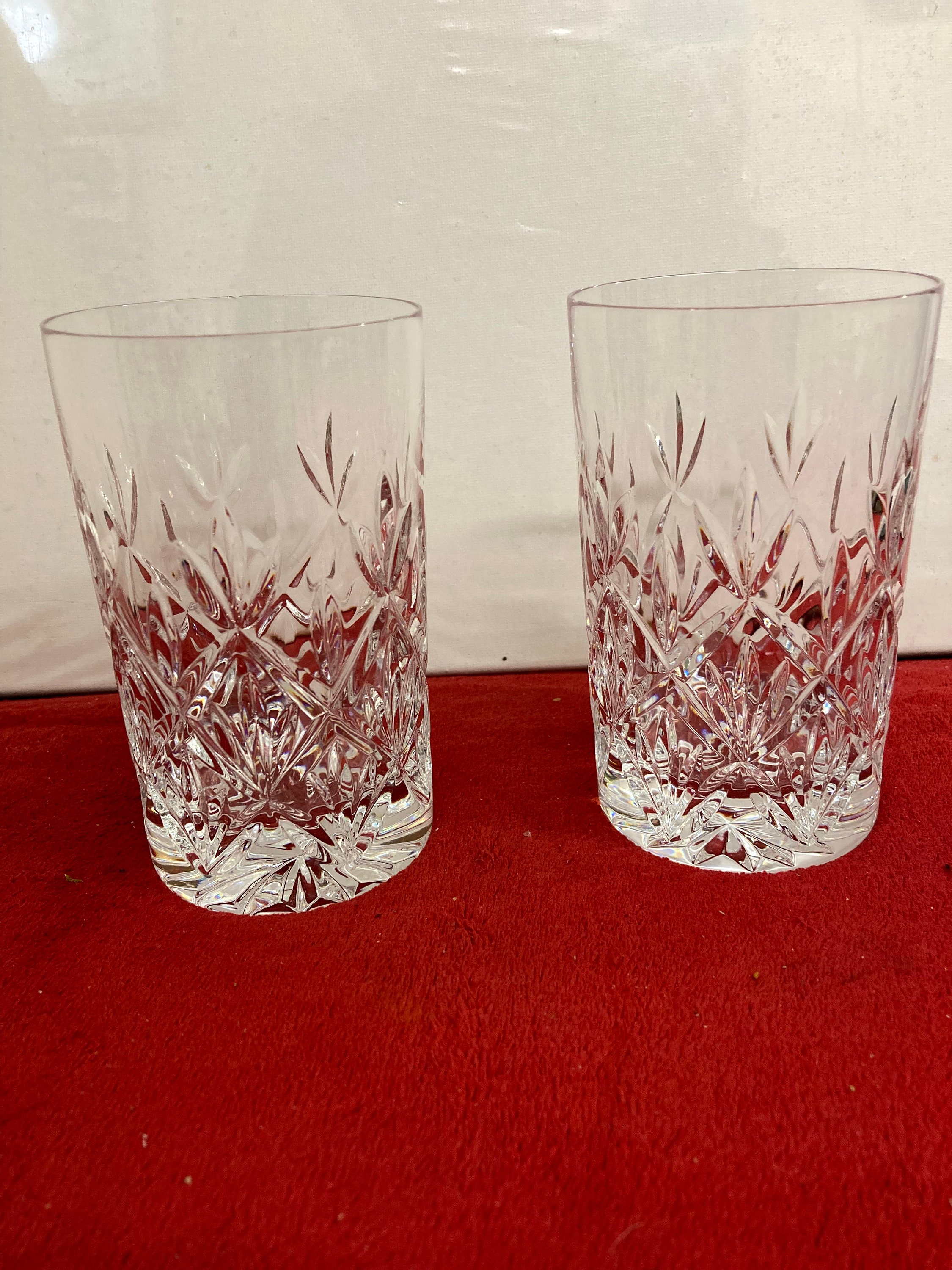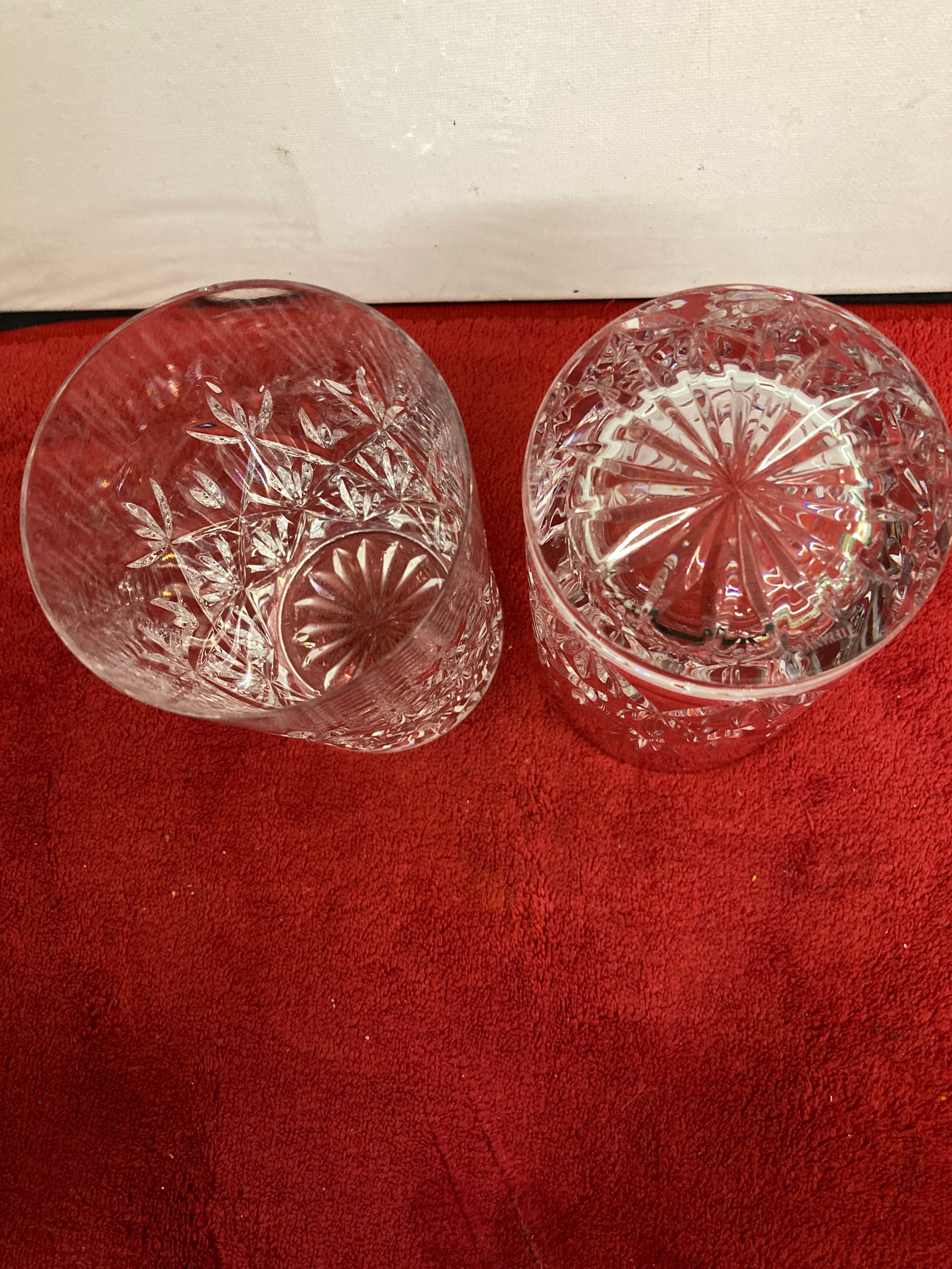 Two Tiffany & Co. crystal double old fashioned glasses in the Sybil pattern.