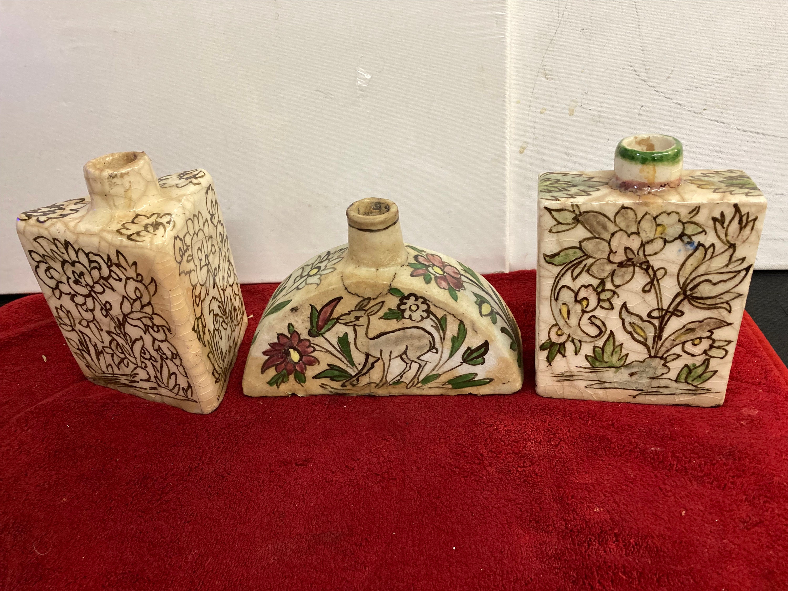 Antique Middle Eastern Ceramic Jars/Crackle Glazed Pottery Spice Jars Pottery Vessel/Iznik Style Tea Jar/Floral & Bird Design Vases