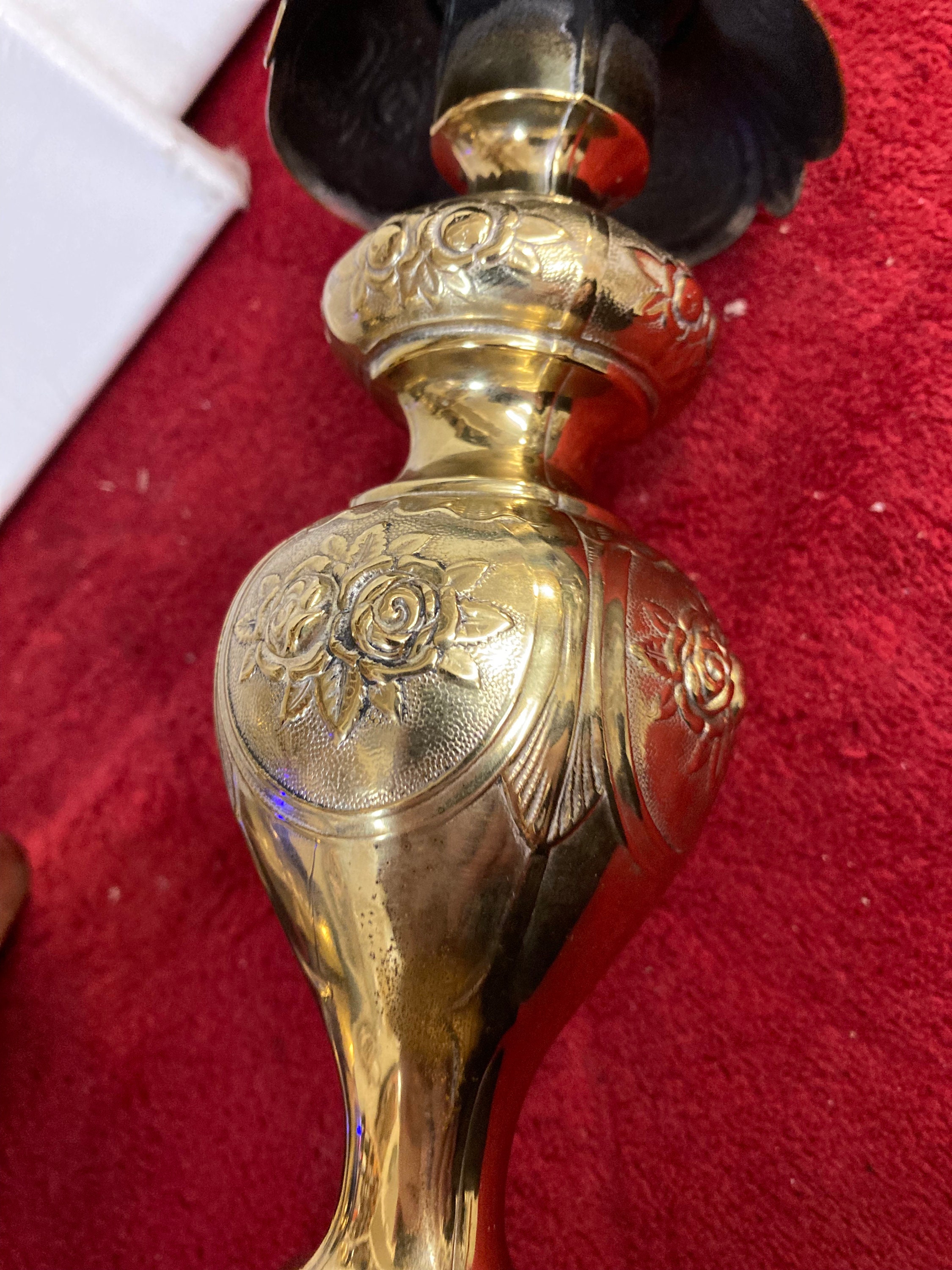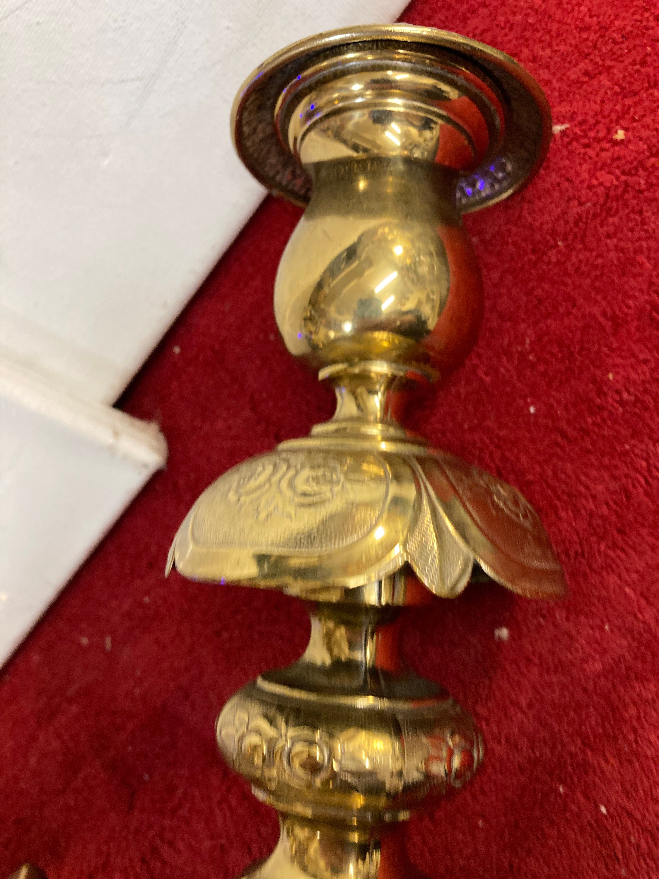 Antique Norblin & Co Brass Shabbat Candlesticks Warszawa, Poland 1890 Art Nouveau'