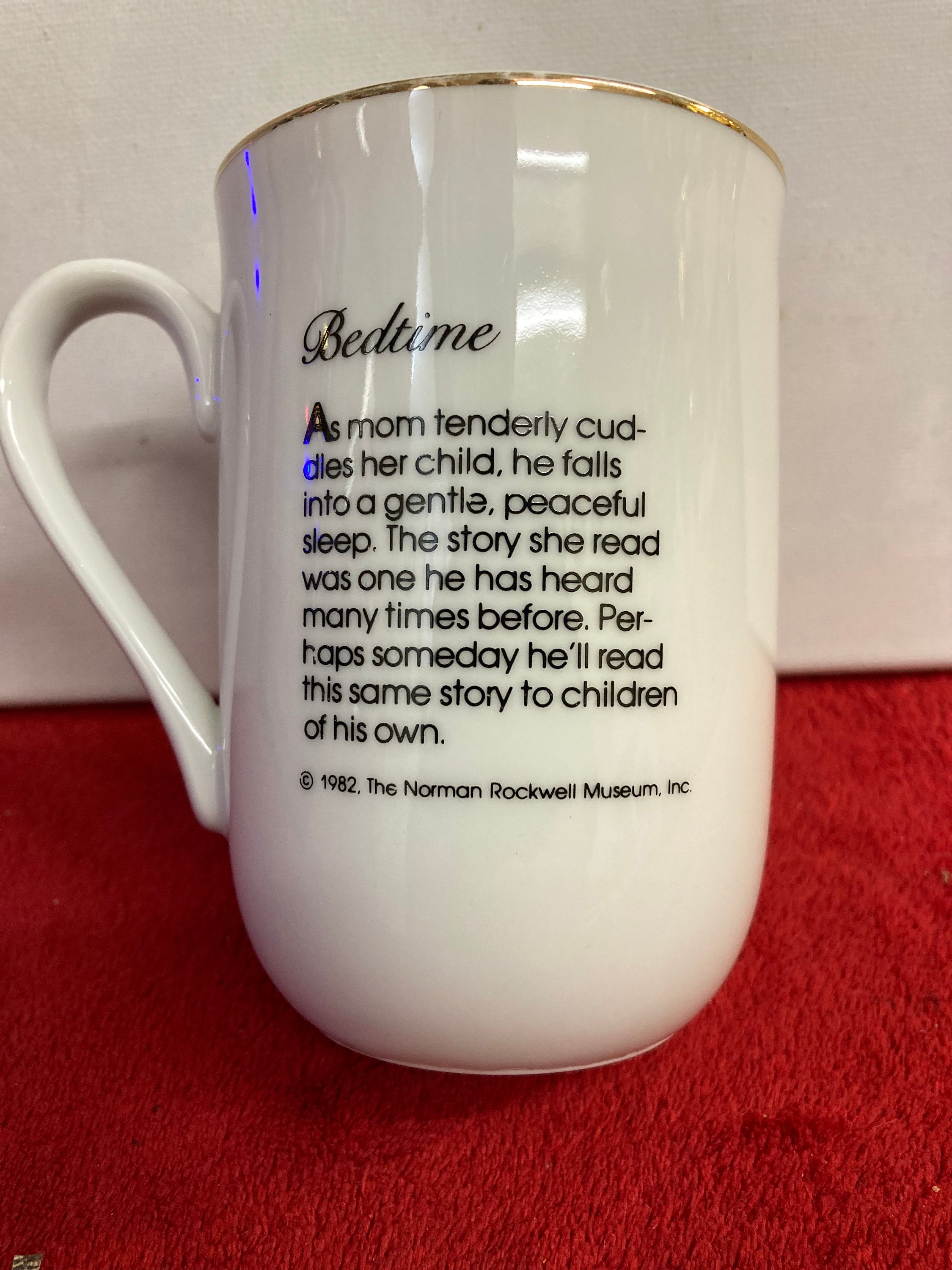 2-Norman Rockwell Museum Tea Coffee Cup "Bedtime" Mother Child