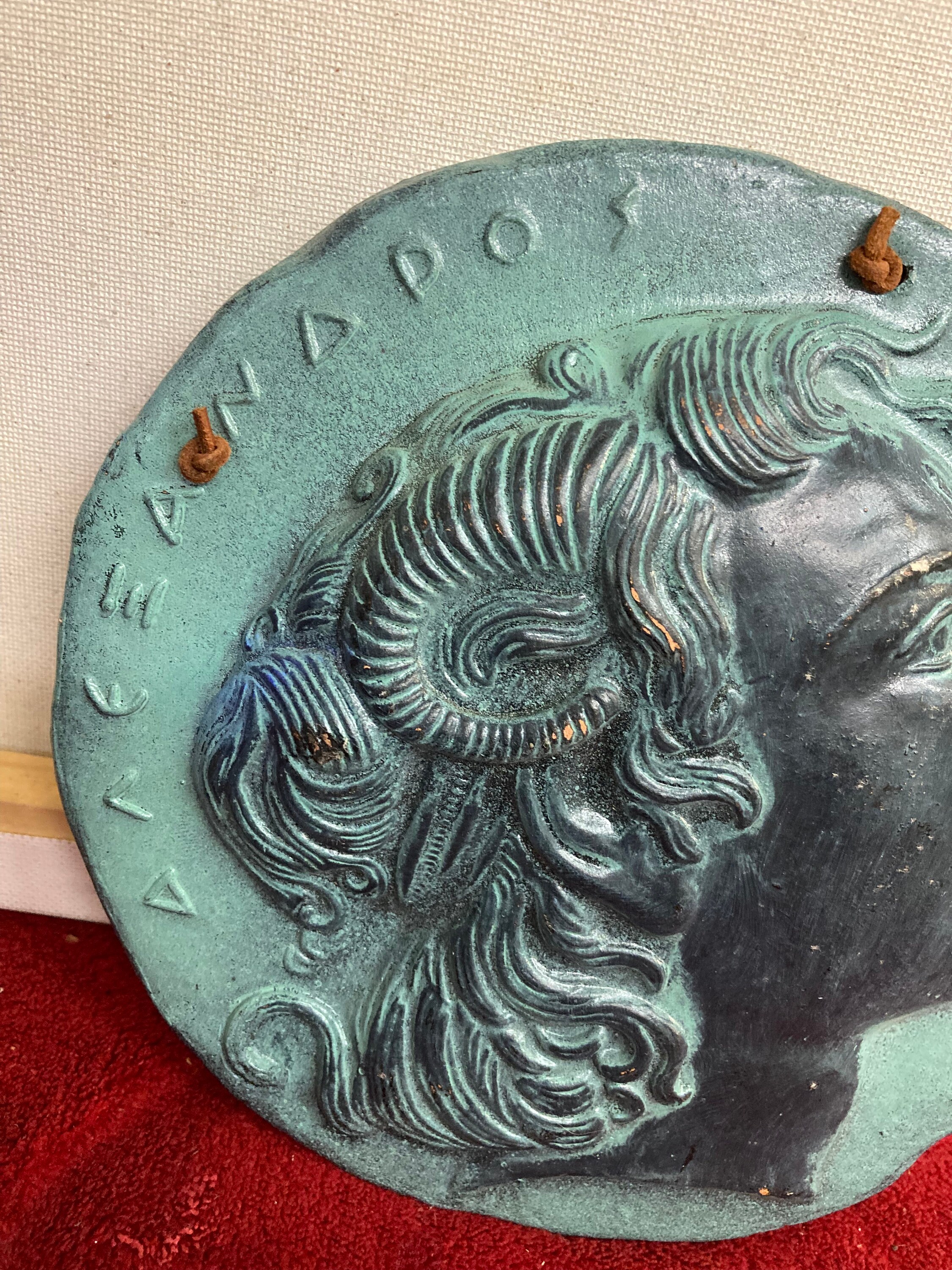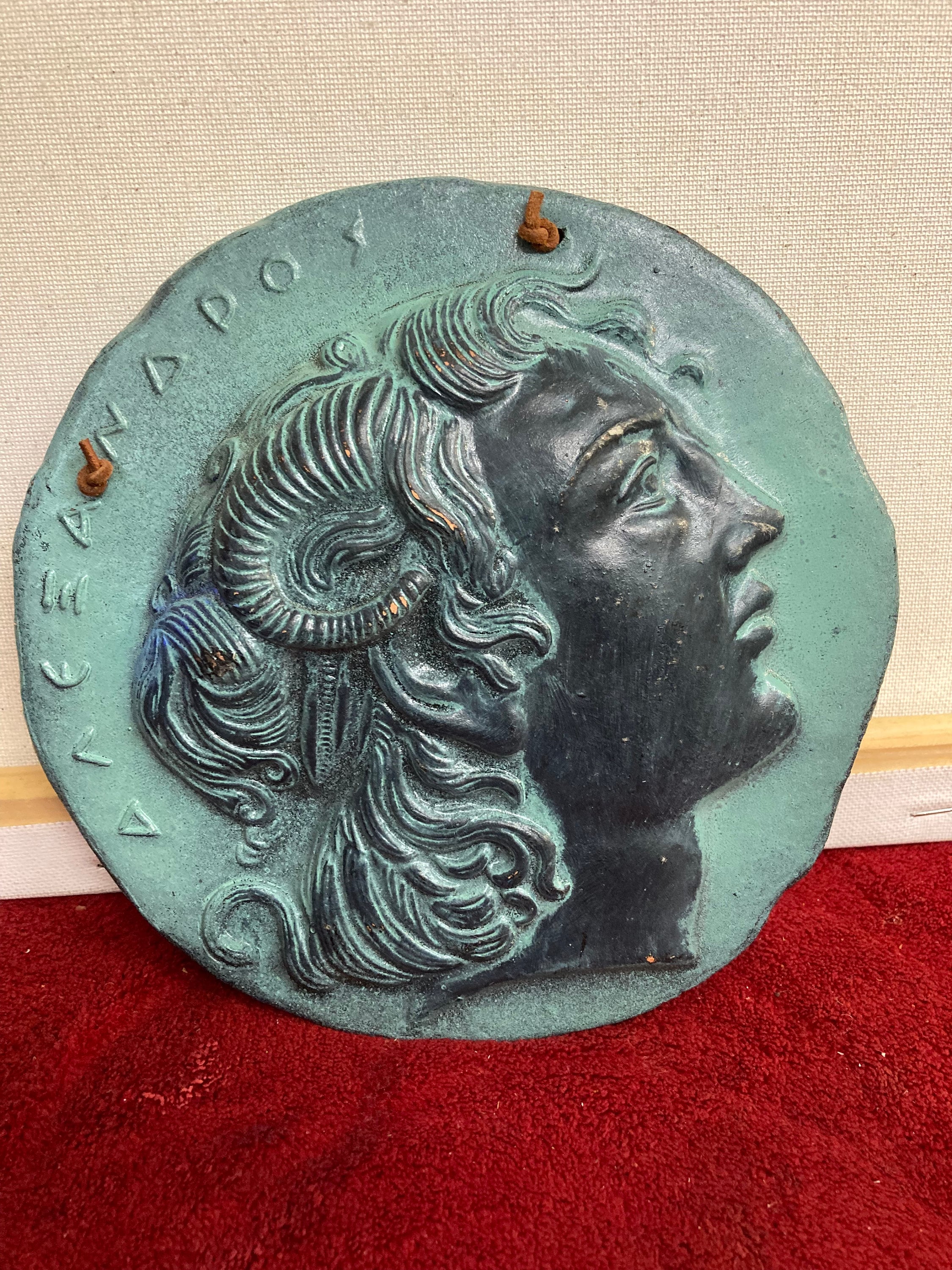 Head In Relief Of Alexander The Great Hand Made Made In Greece No 42 Limited Pieces6 3/4" in diameter x 1 " deepExcellent Condition