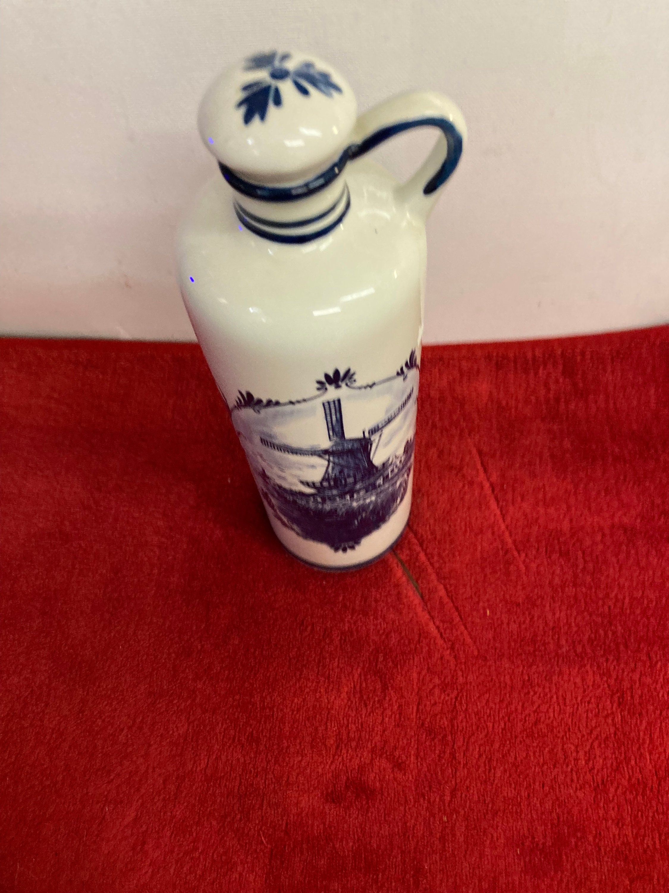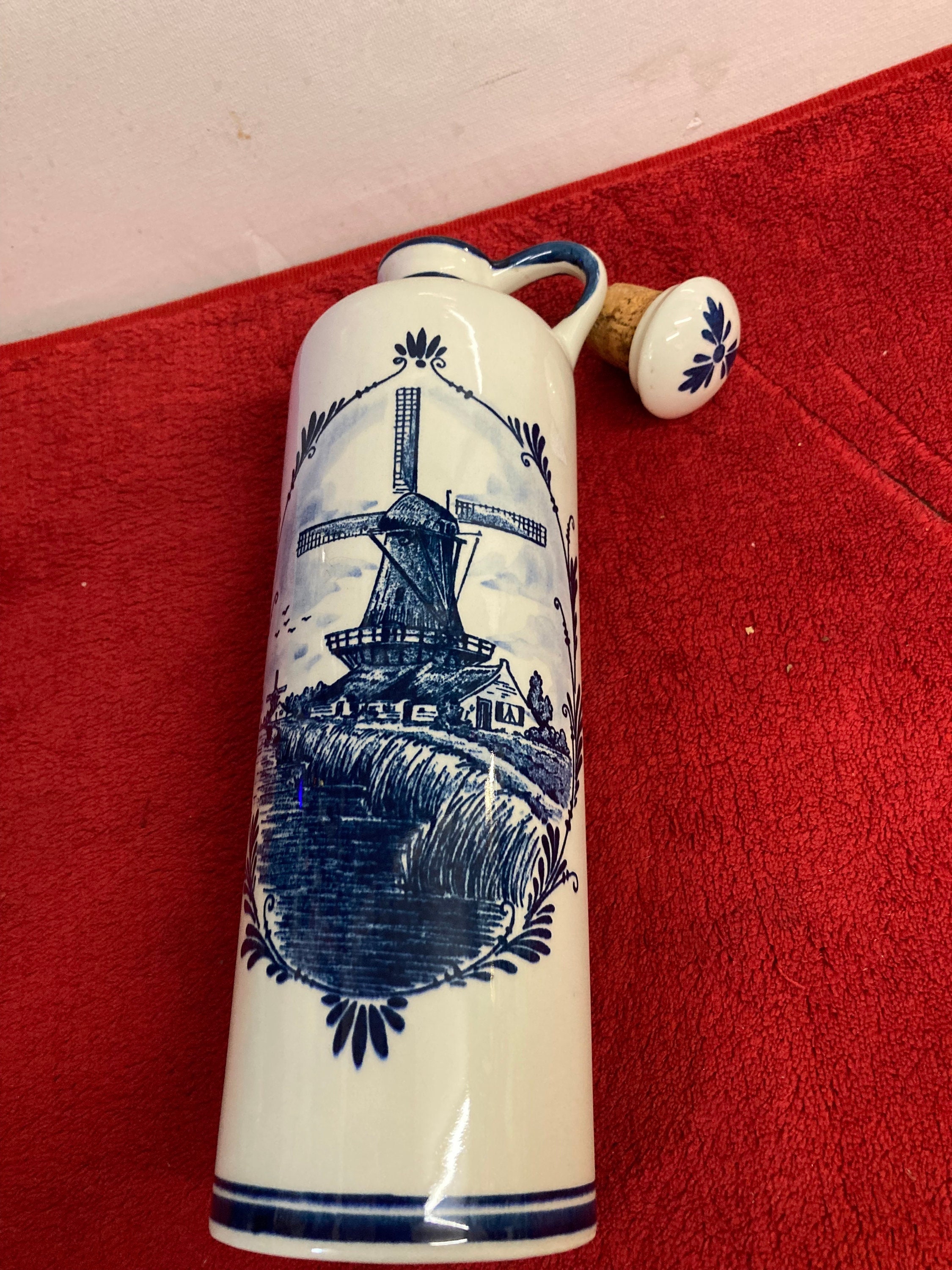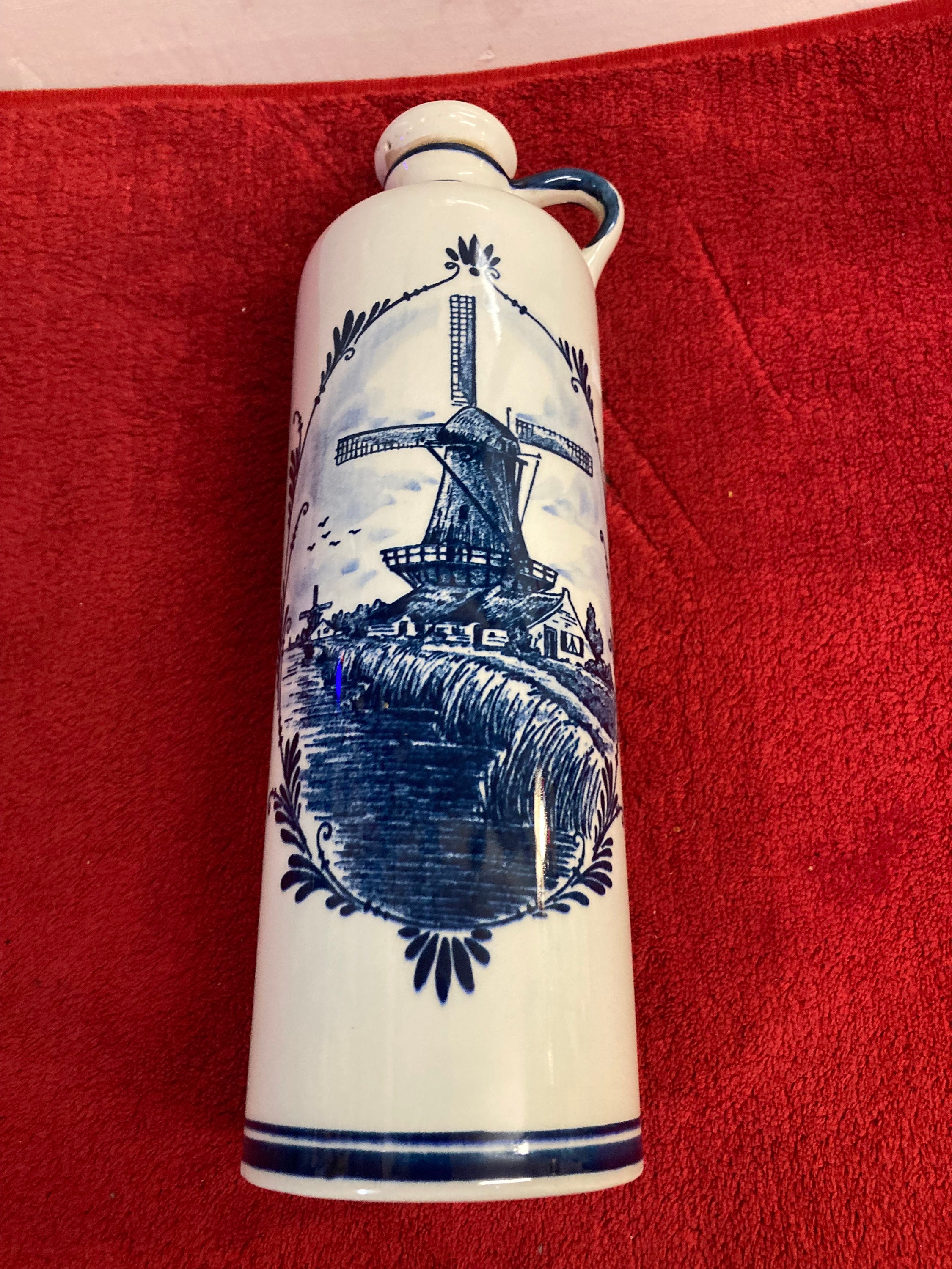Decorated on the front with the iconic Delft Windmill scene and on the back a floral motif.