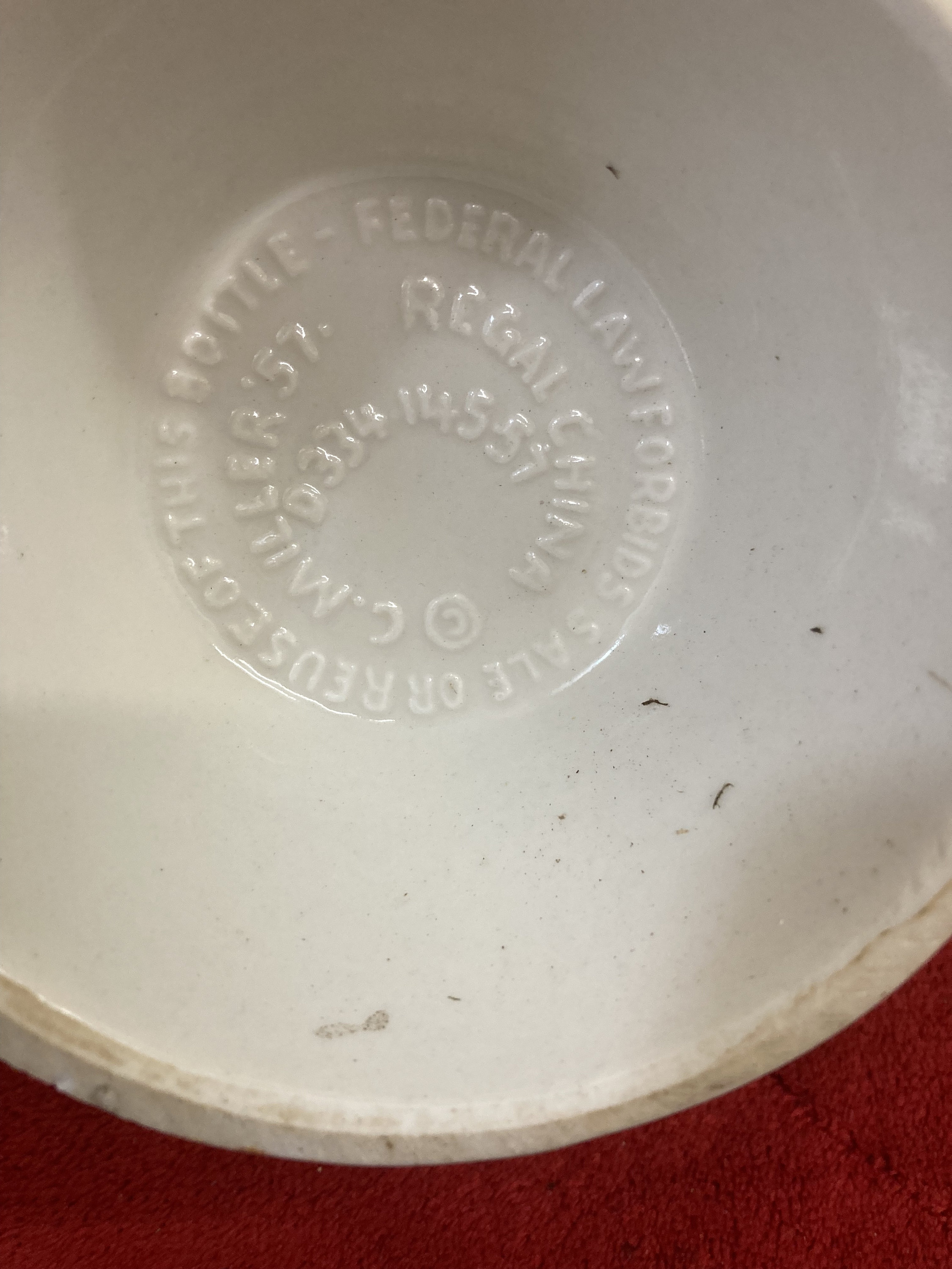 Vintage C.Miller 57,Regal, Empty DecanterVintage 14" DUCK DECANTER C.MILLER Bar Decor Cork is not missing but fits a little lose14 " Tall 4 1/8 " Wide and deepPerfect Vintage condition with no damages.NONE