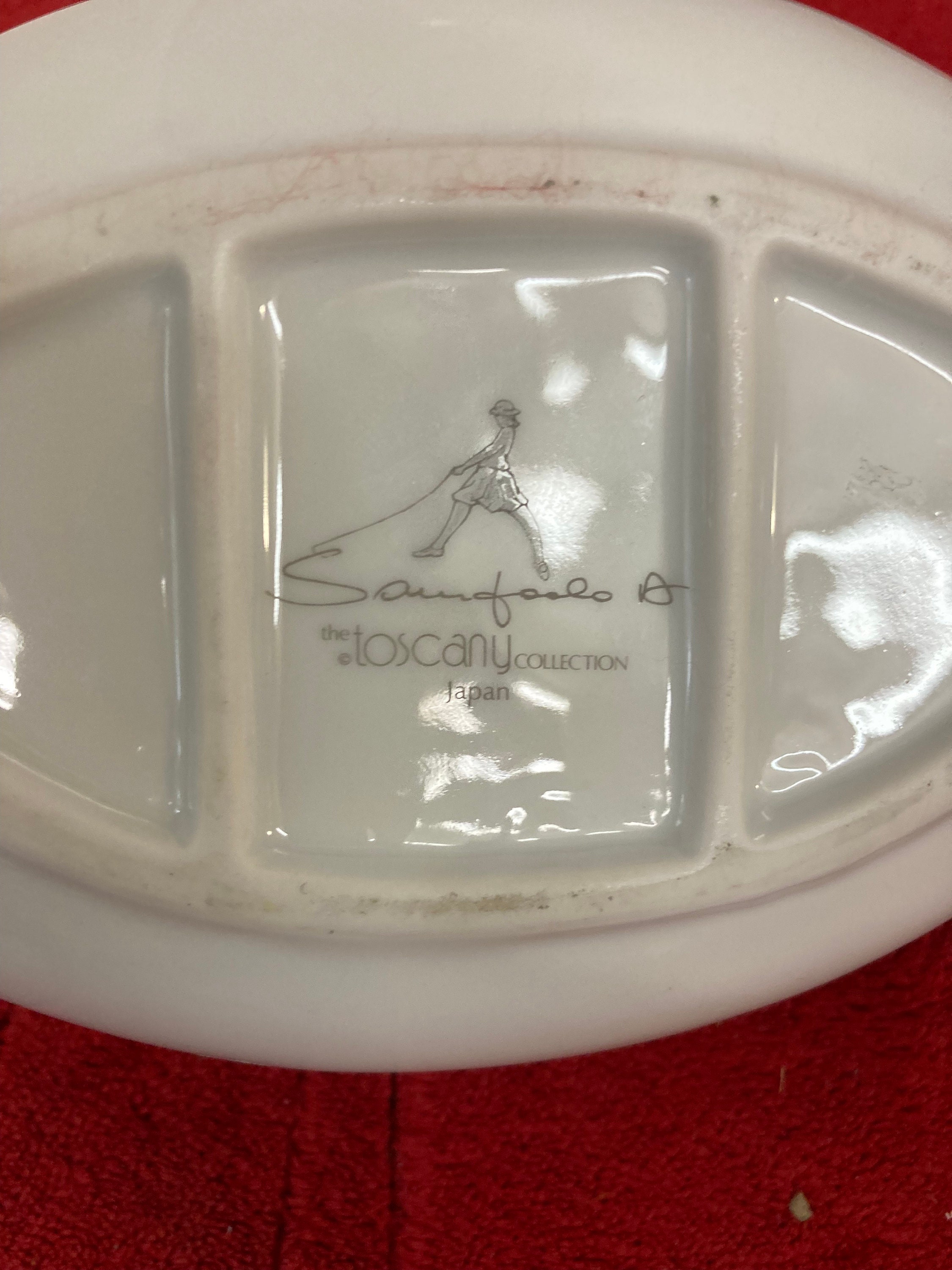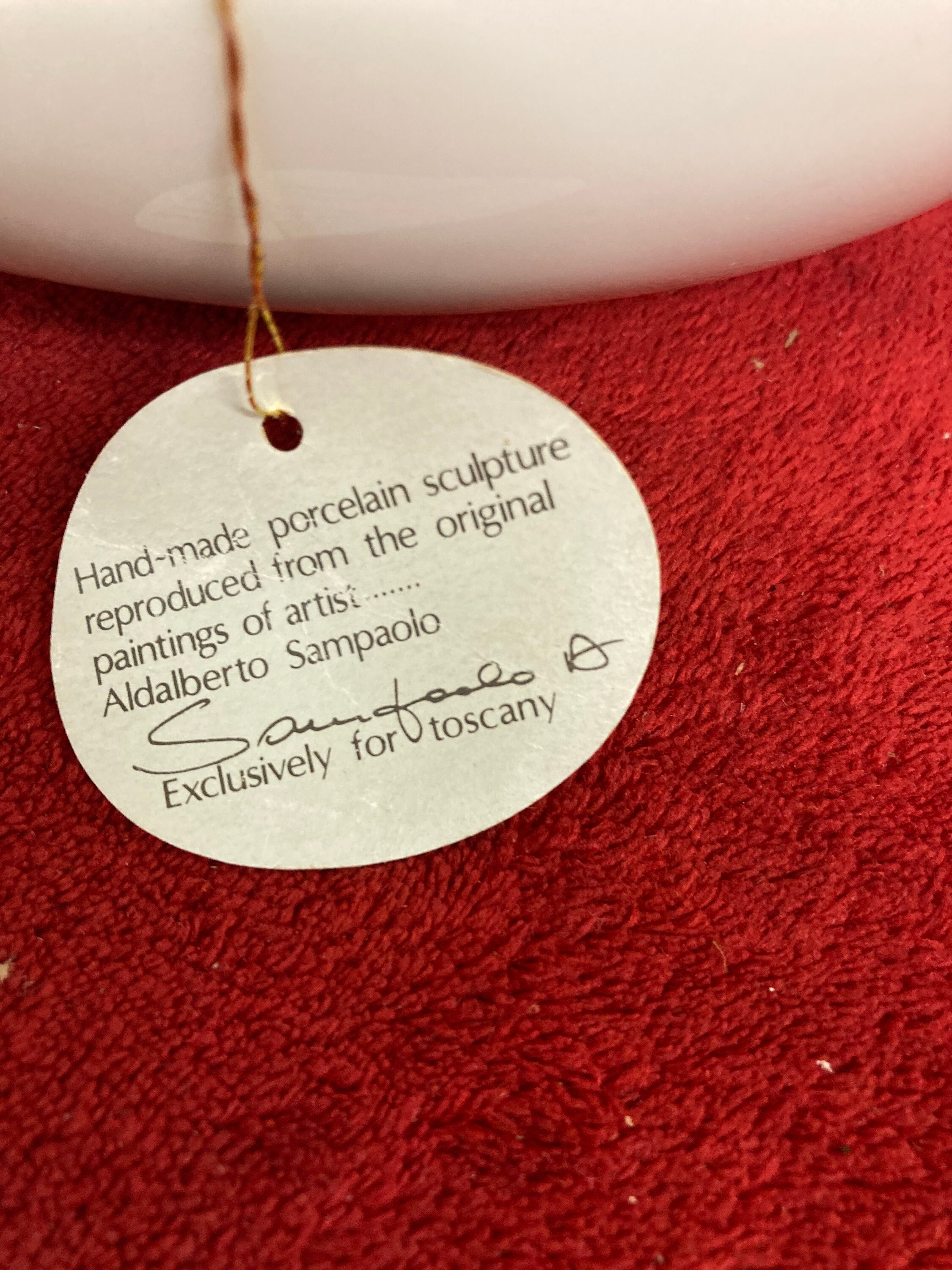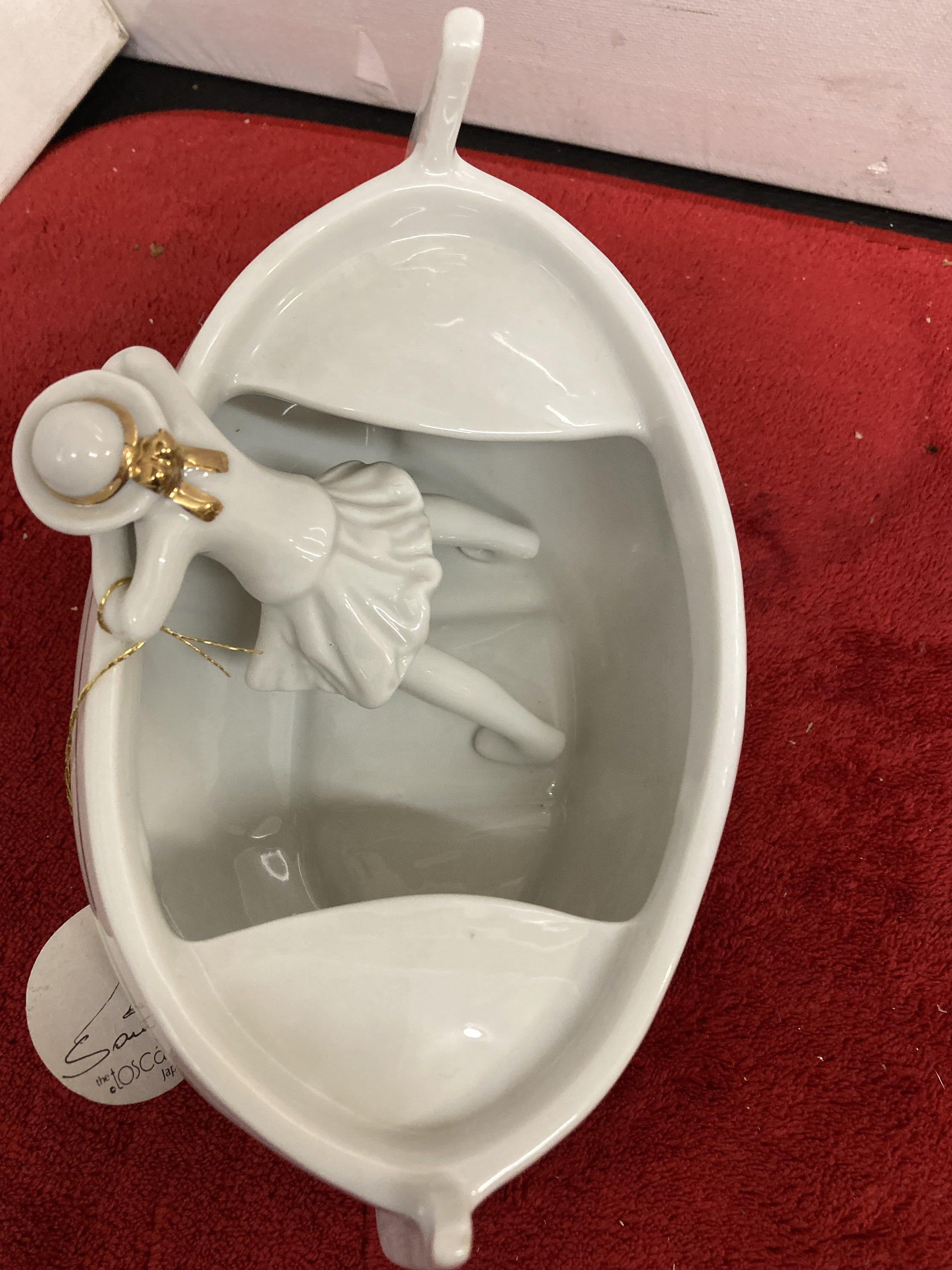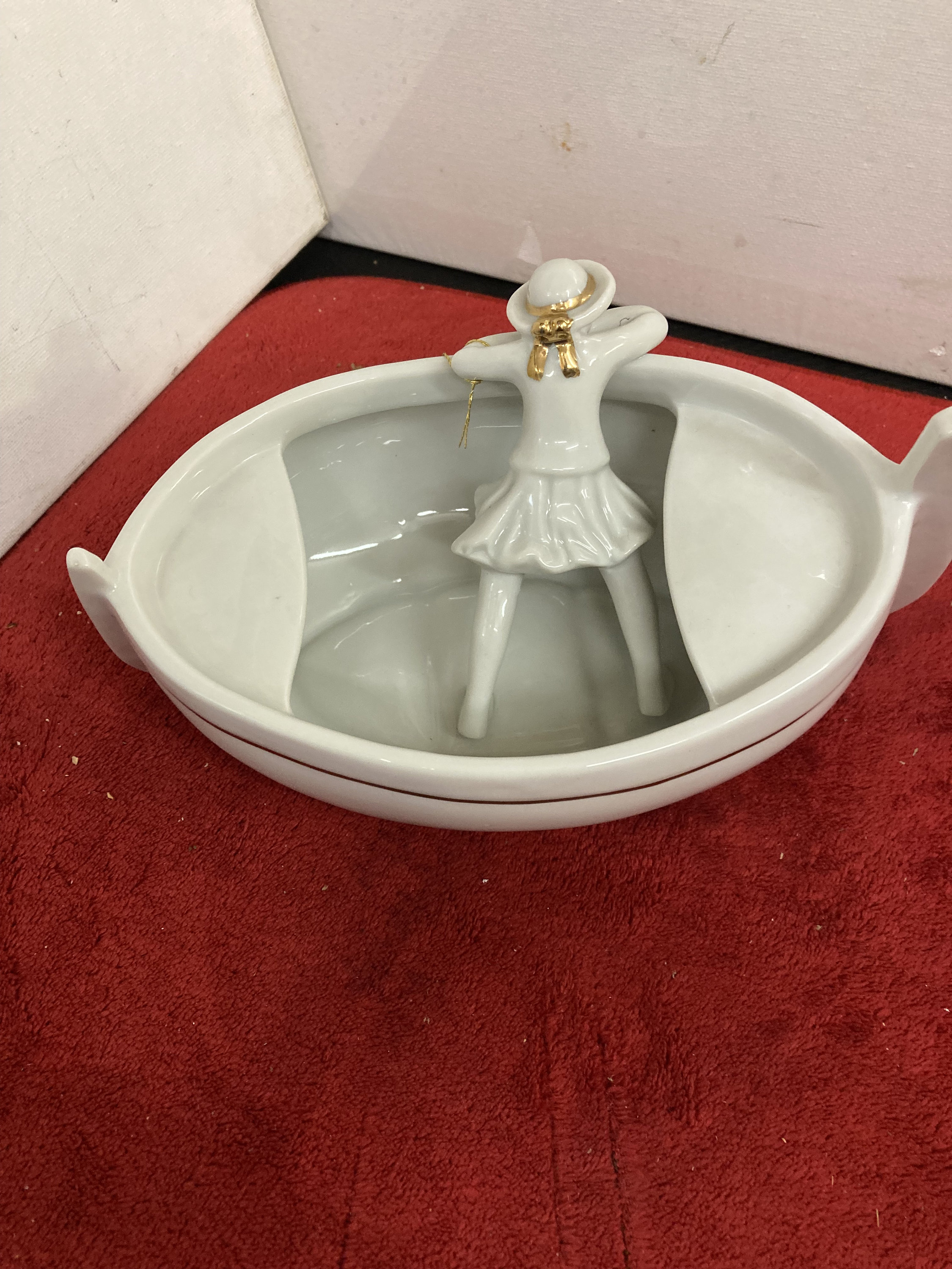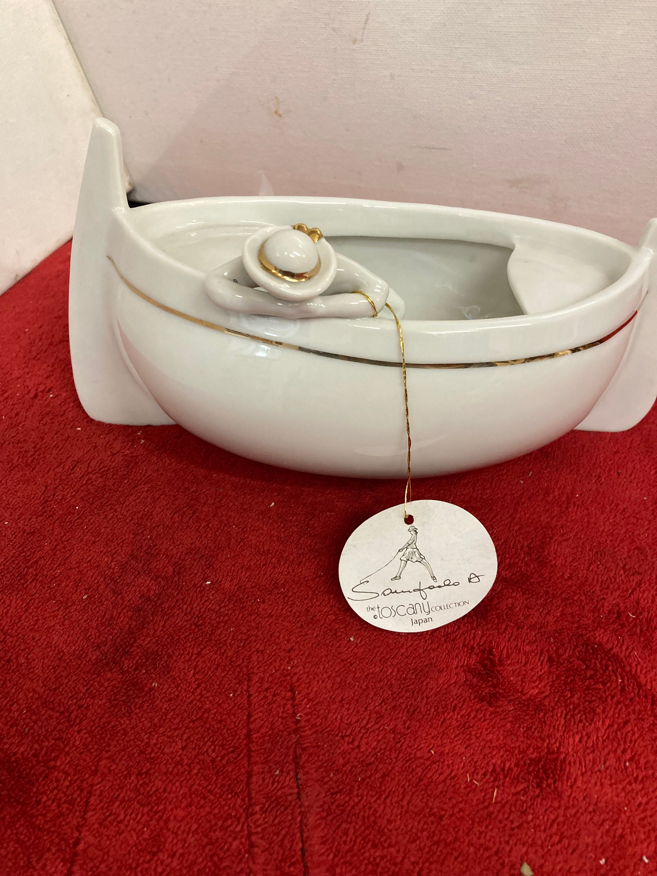 VTG White Porcelain Figurine Boat Girl Hat Tuscany Collection Gold Trim