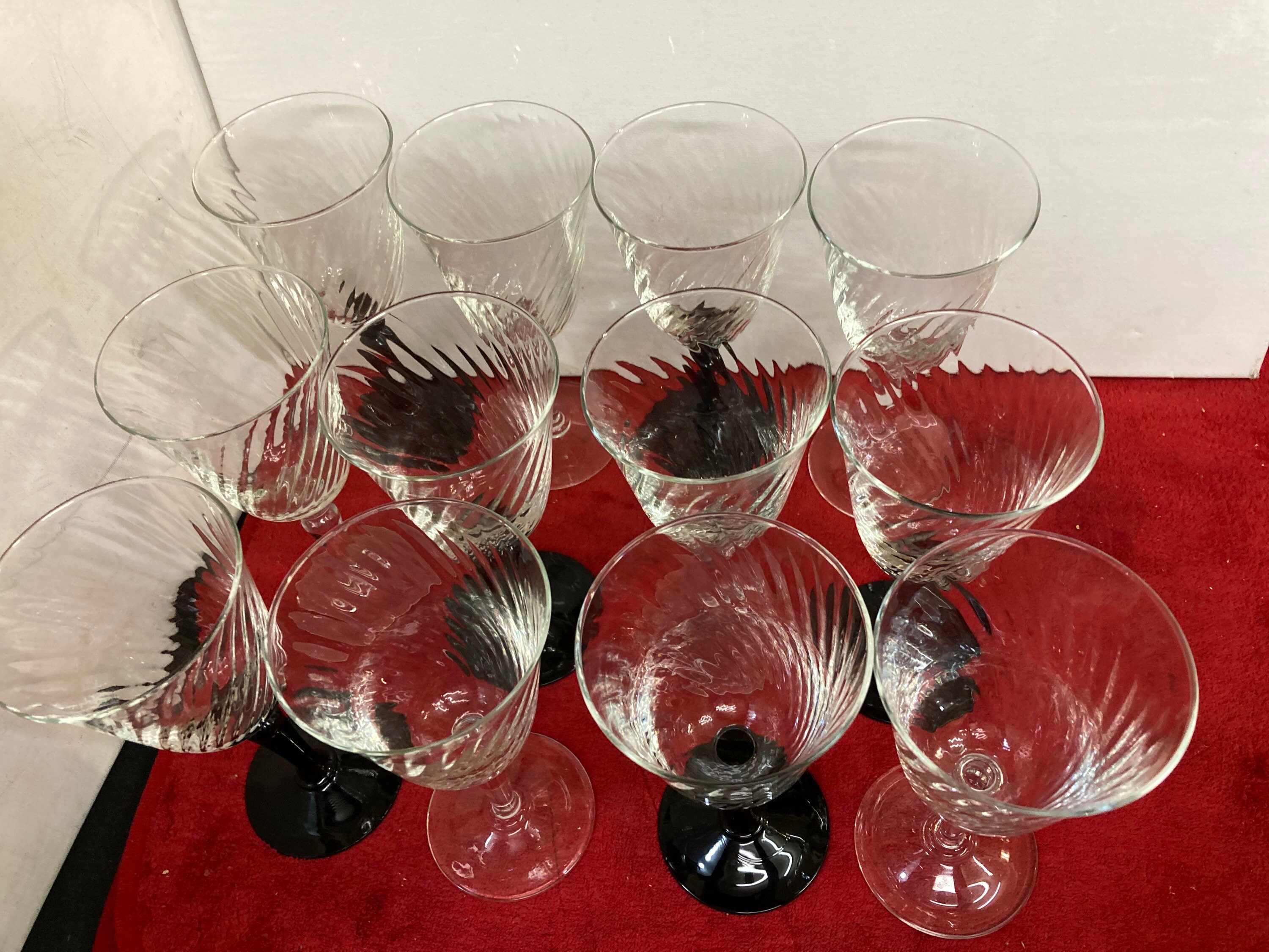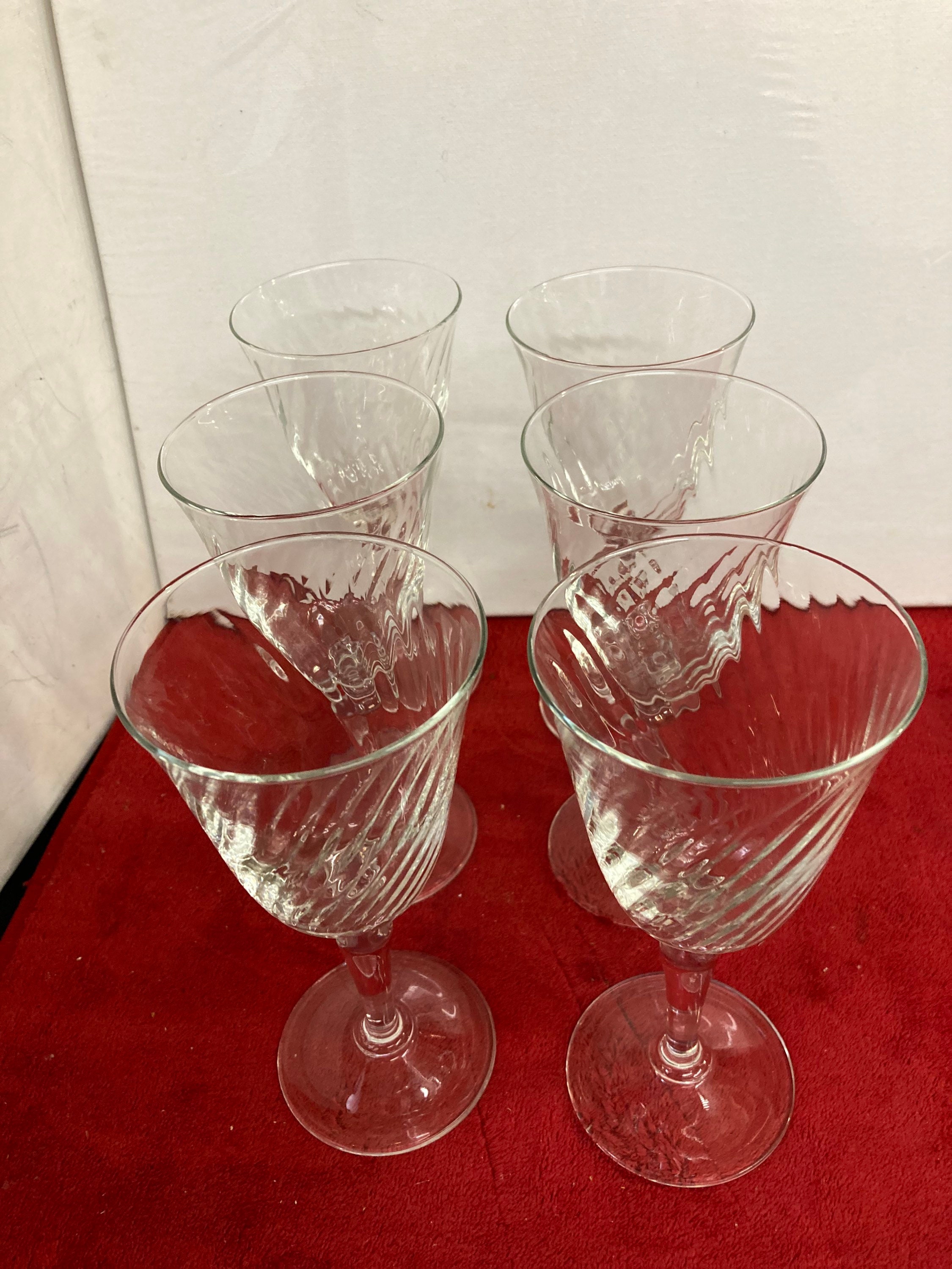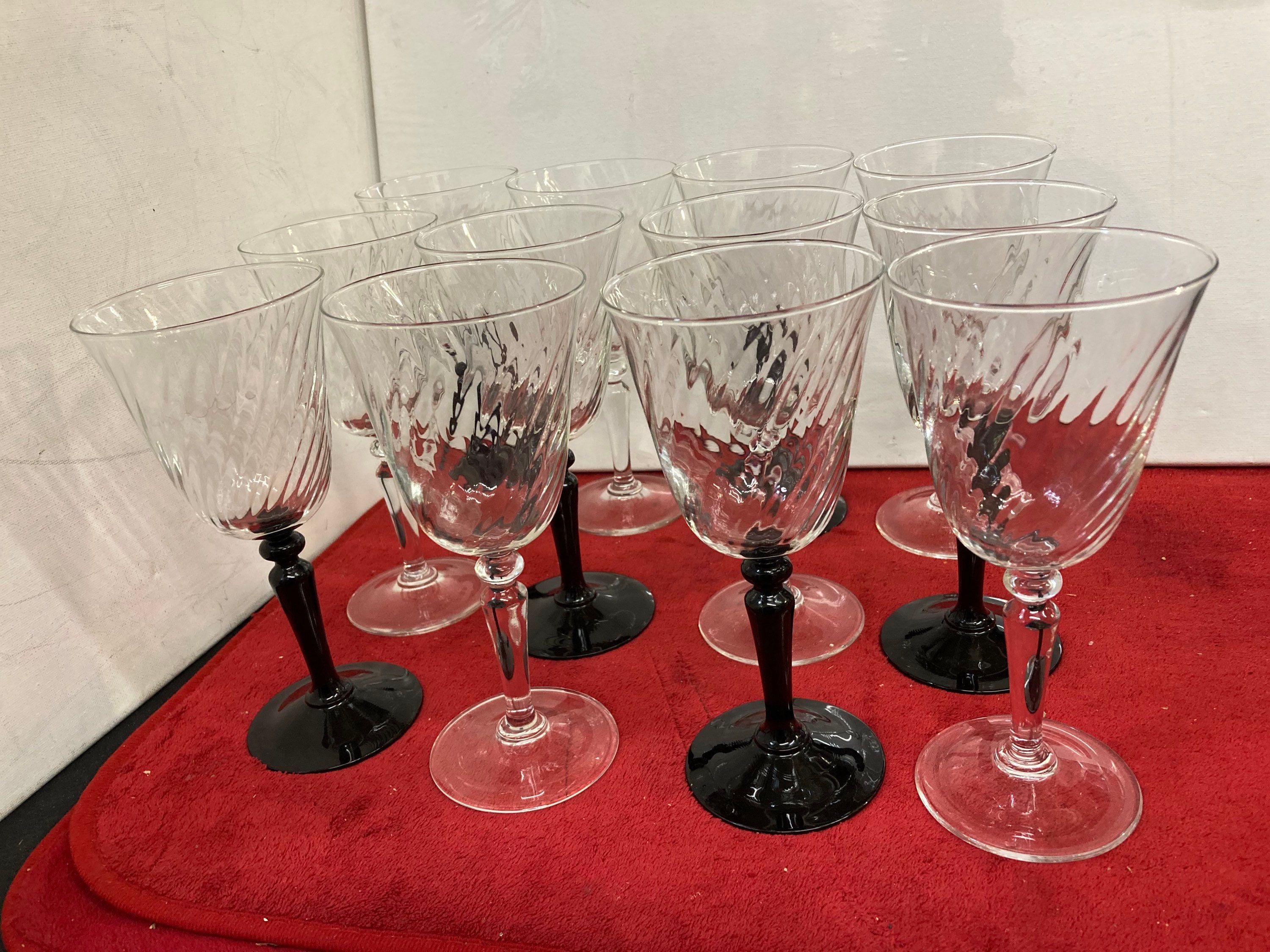 Vintage Set Of 6 Luminarc France Black Stemmed & 6 Clear Stemmed Swirl Bowled Wine Glasses
