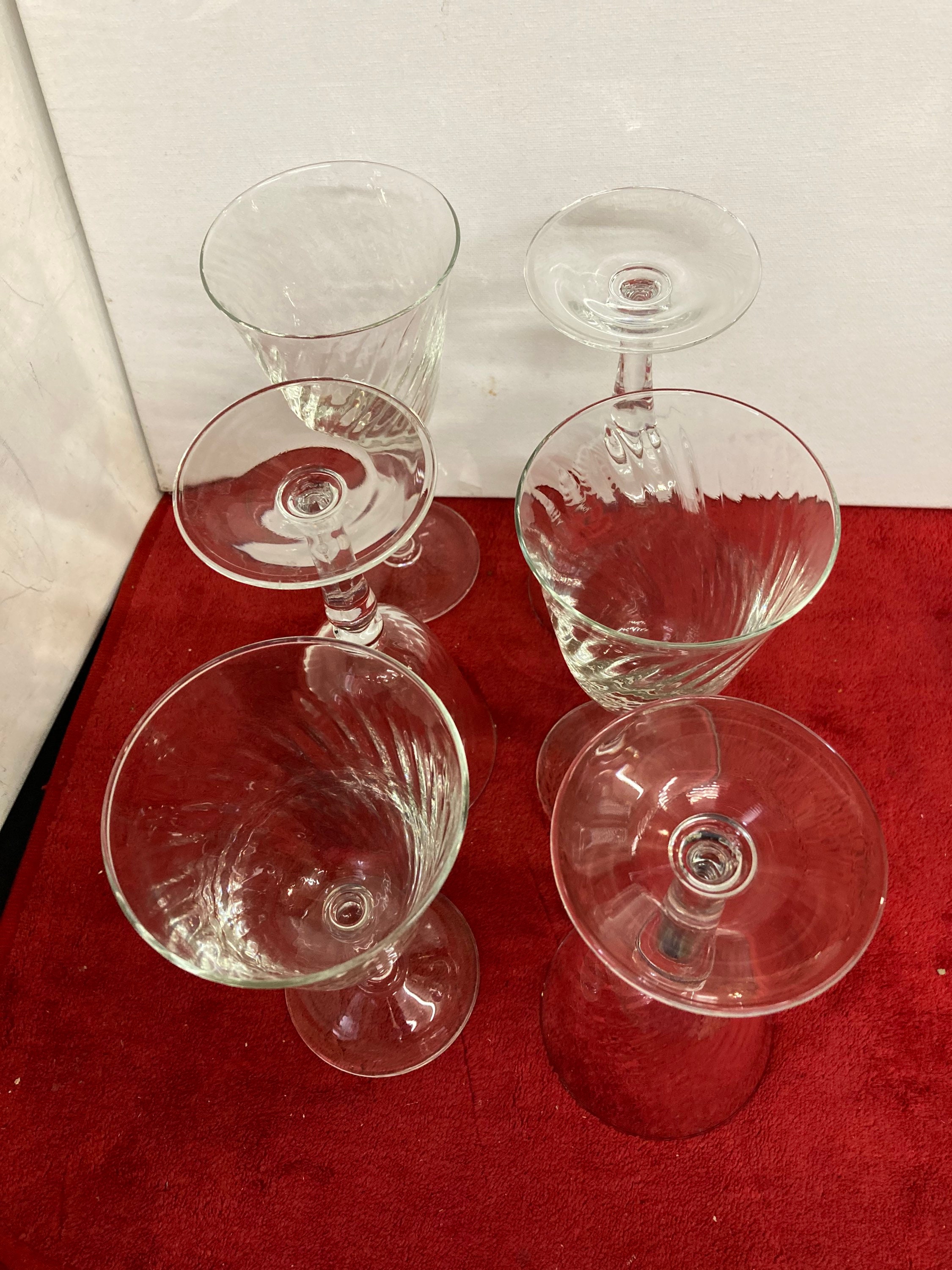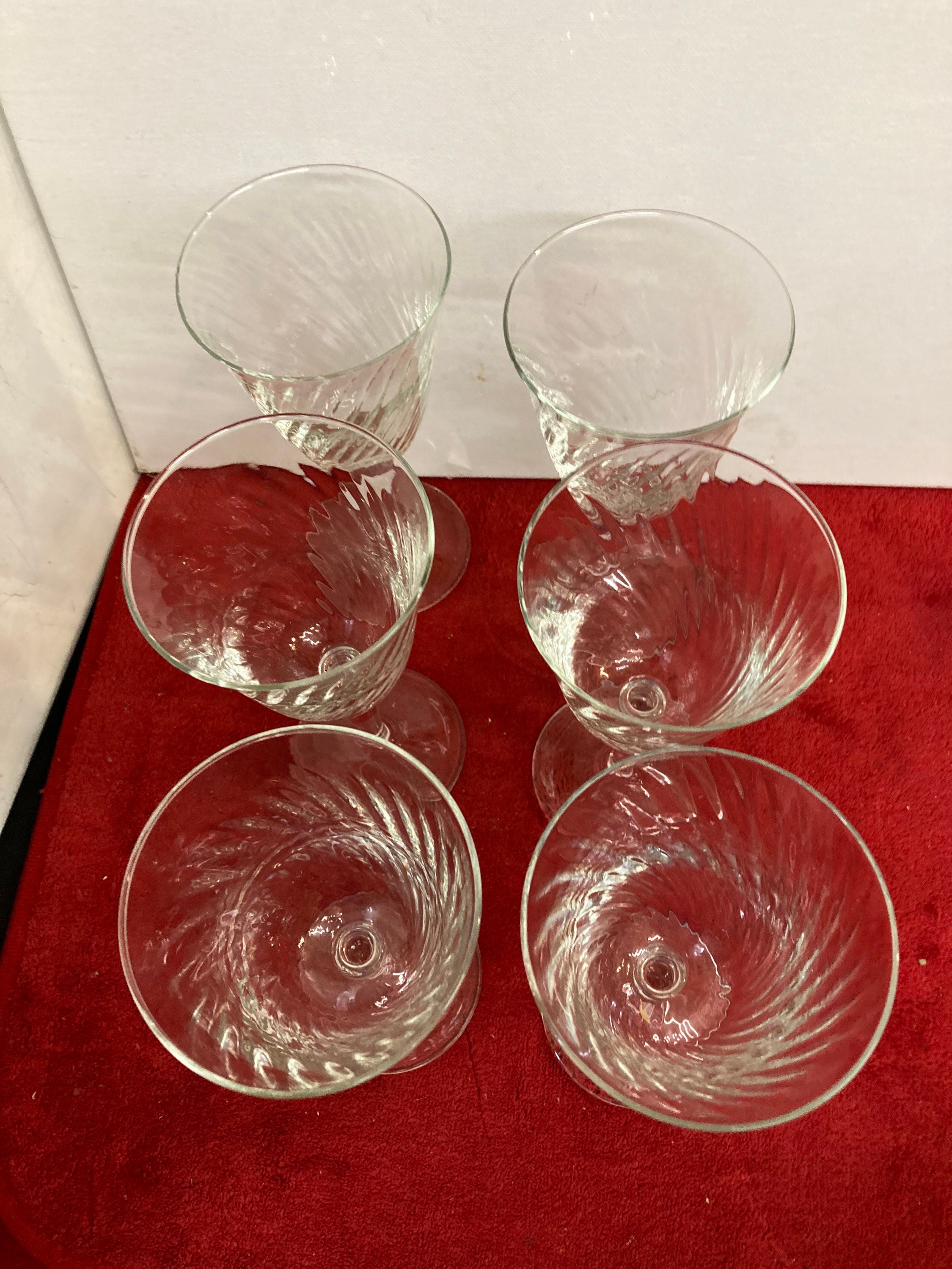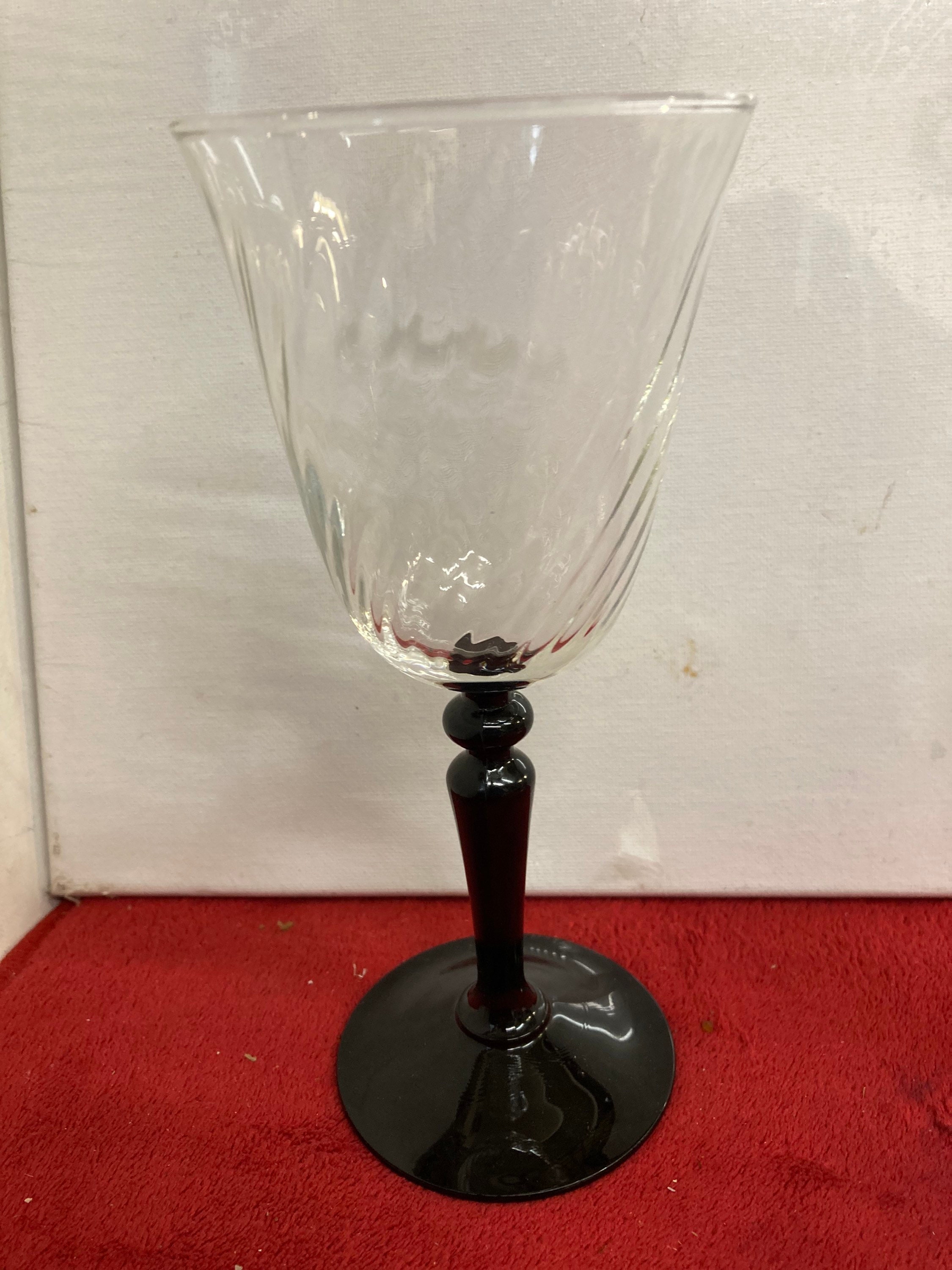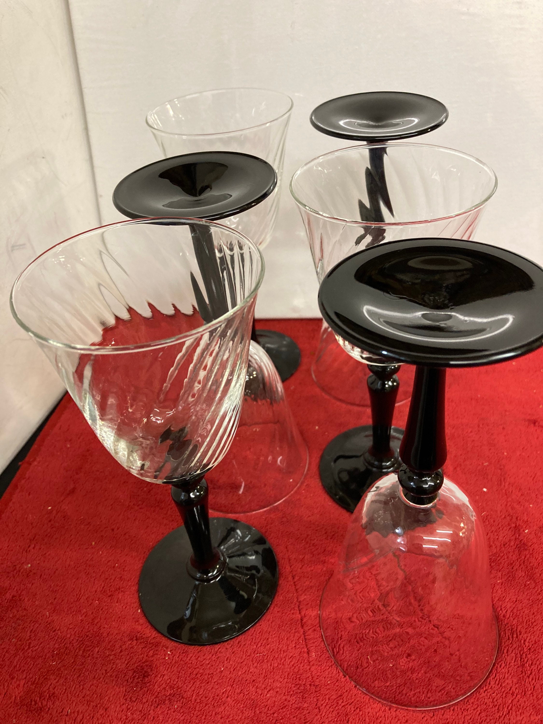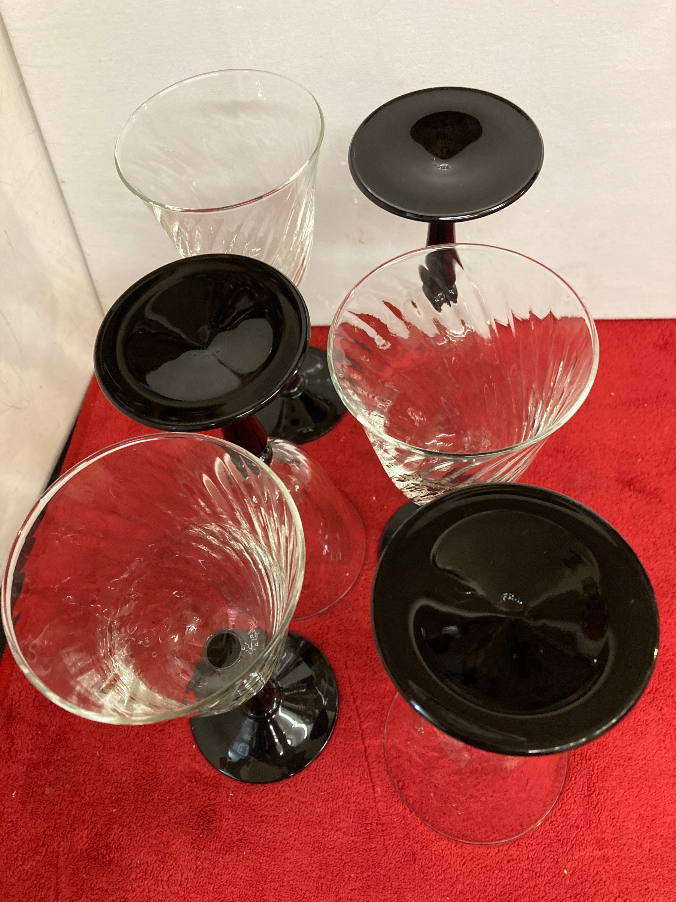 Vintage Set Of 4 black stemmed swirl bowled wine glasses by Luminarc