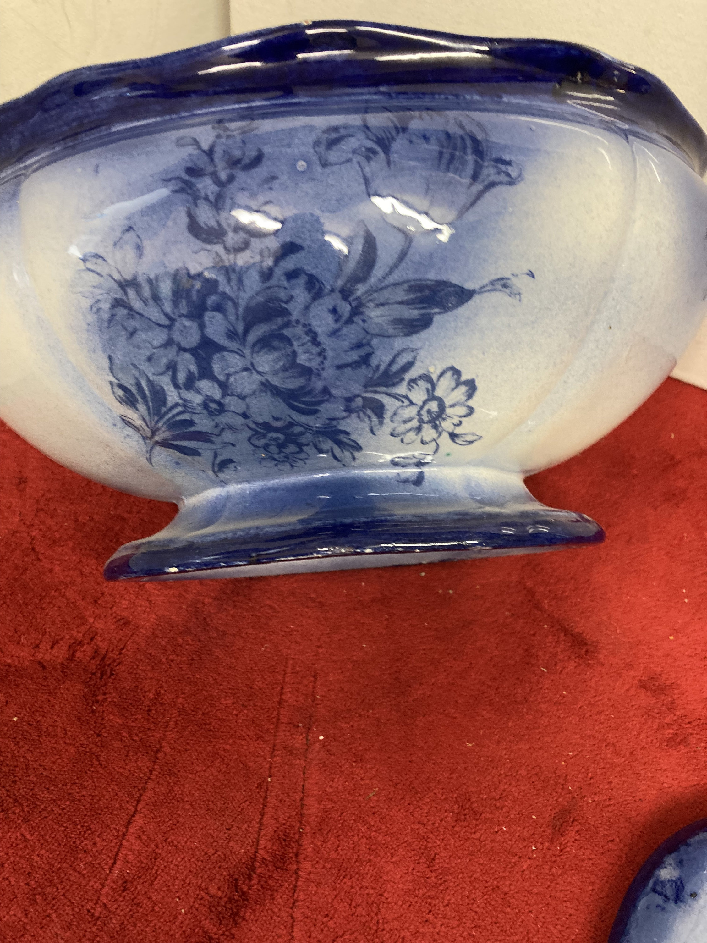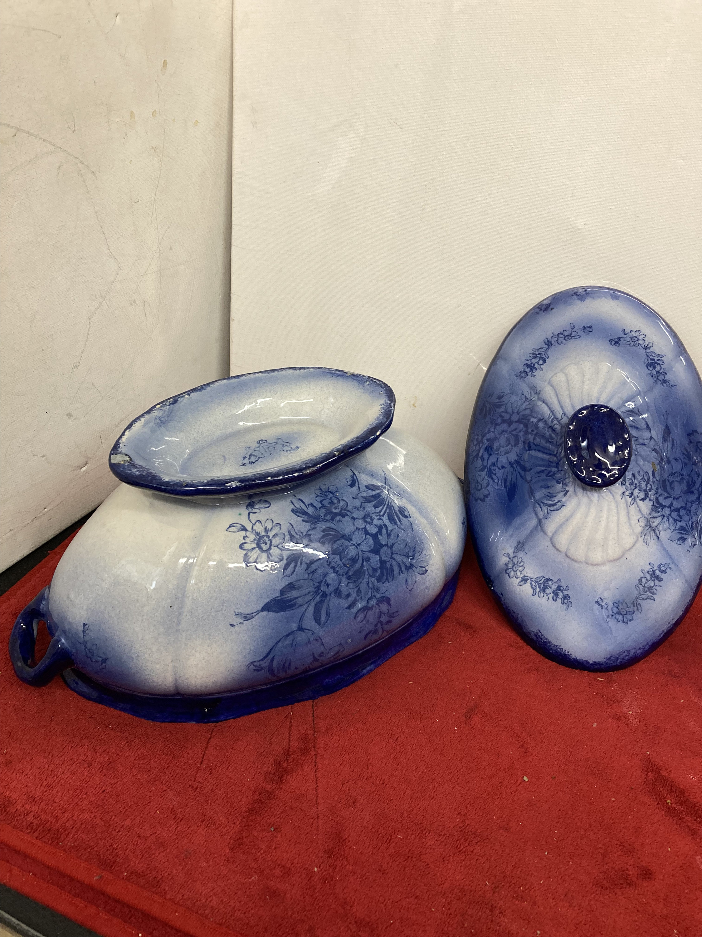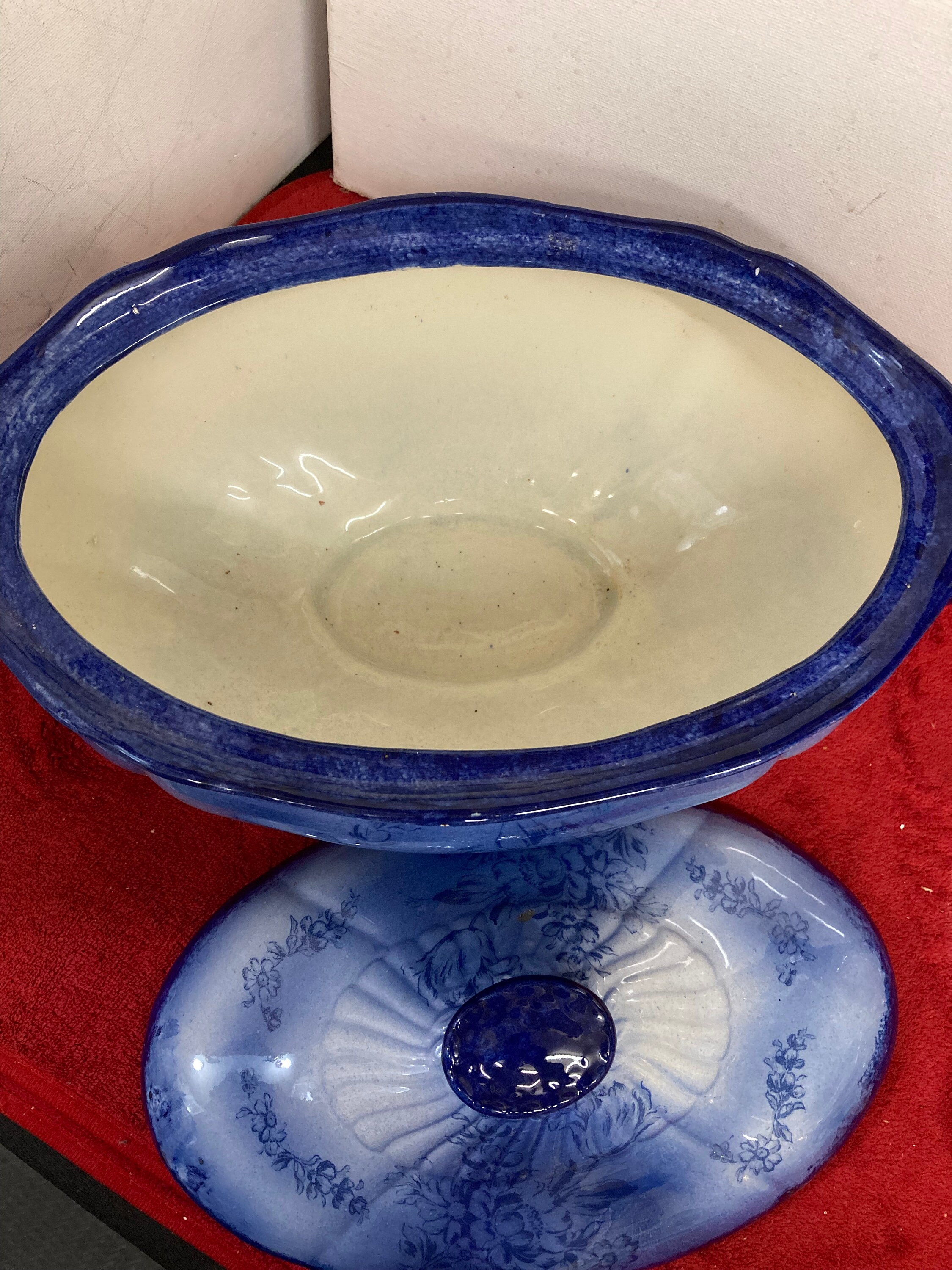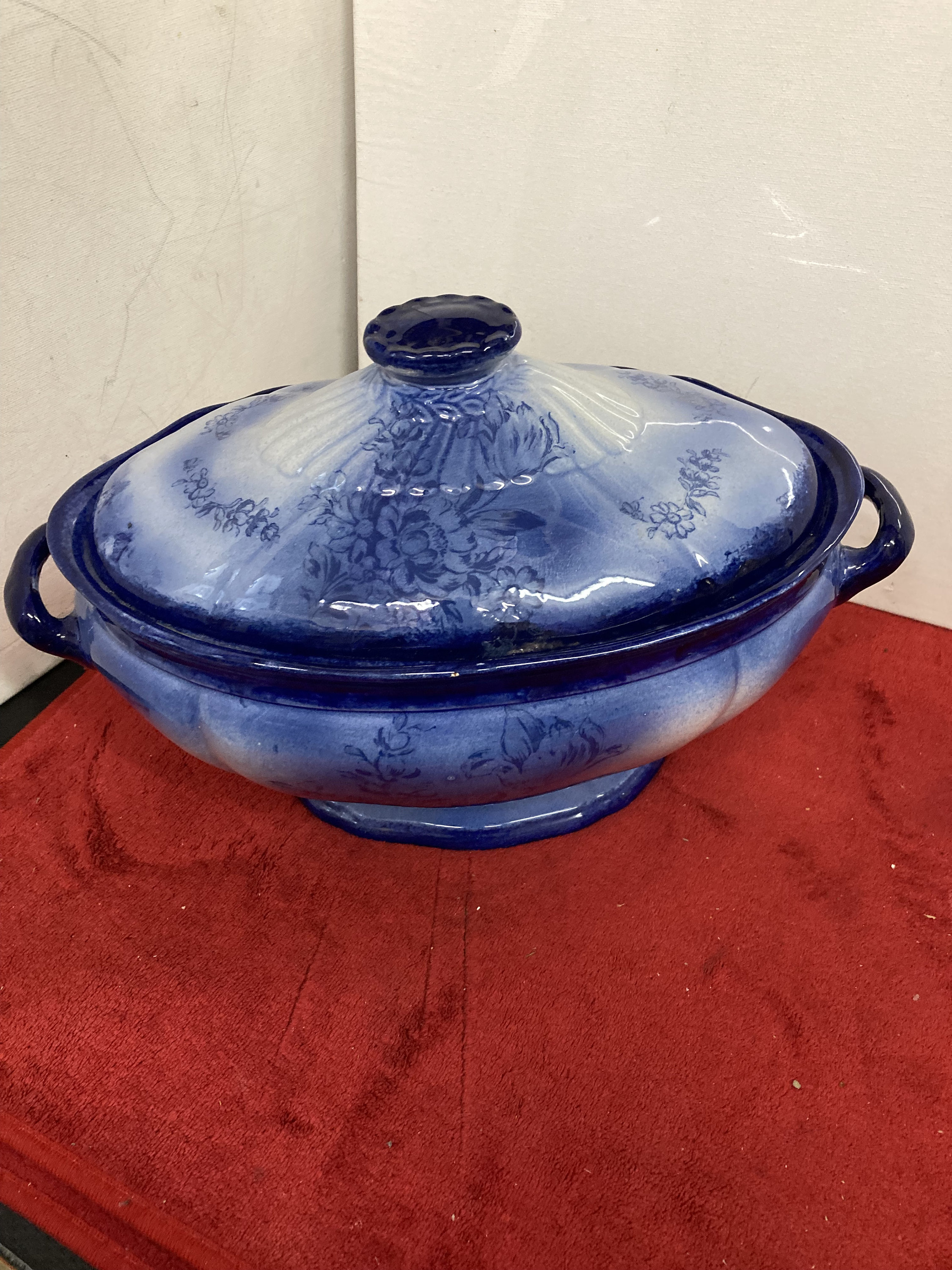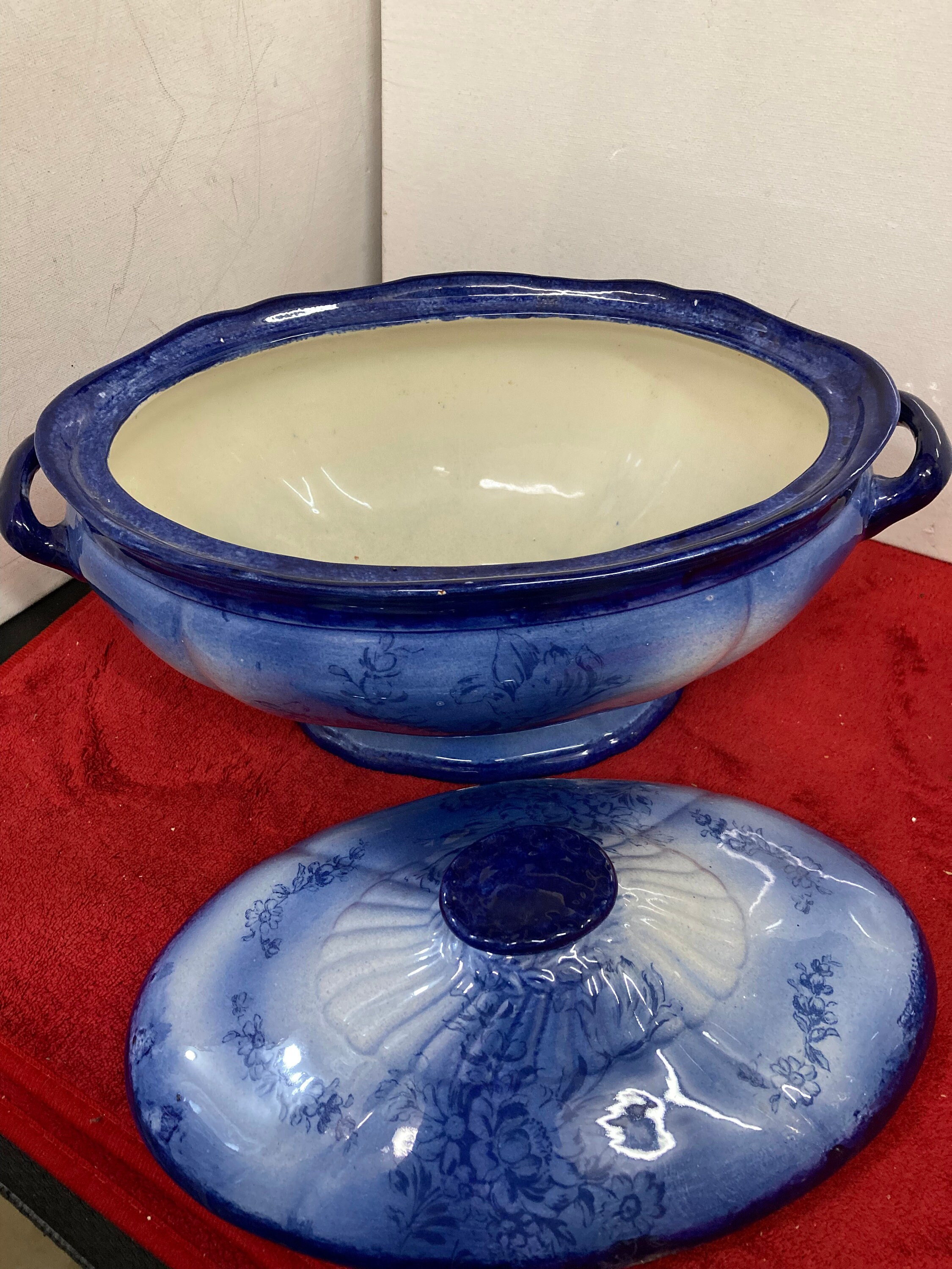 Rare Blue Tureen Soup Bowl with Cover13" x 7 " d x 8" tExcellent Vintage ConditionBeautiful Color Combination of Cobalt Blue to Light Blue with Floral design
