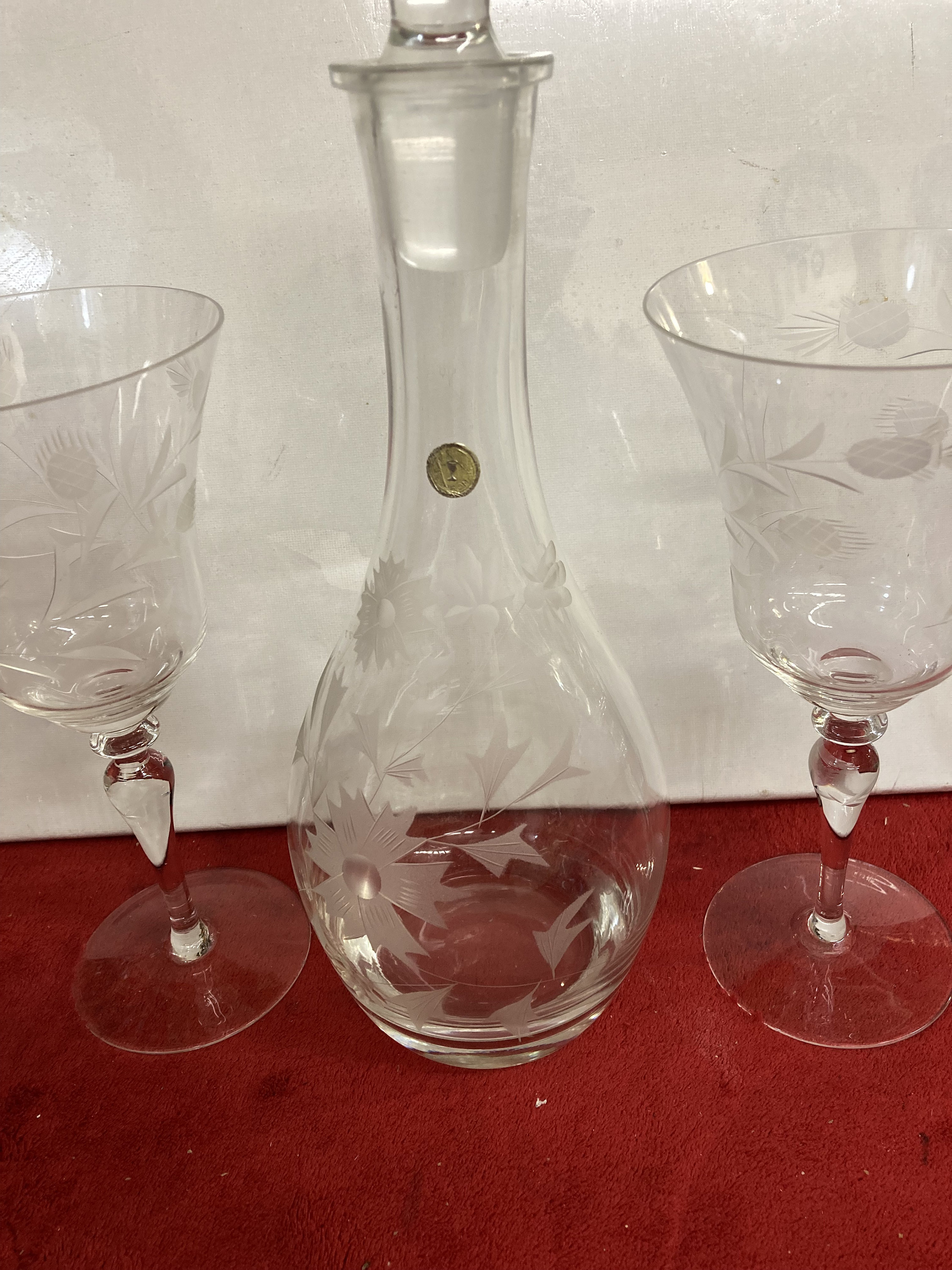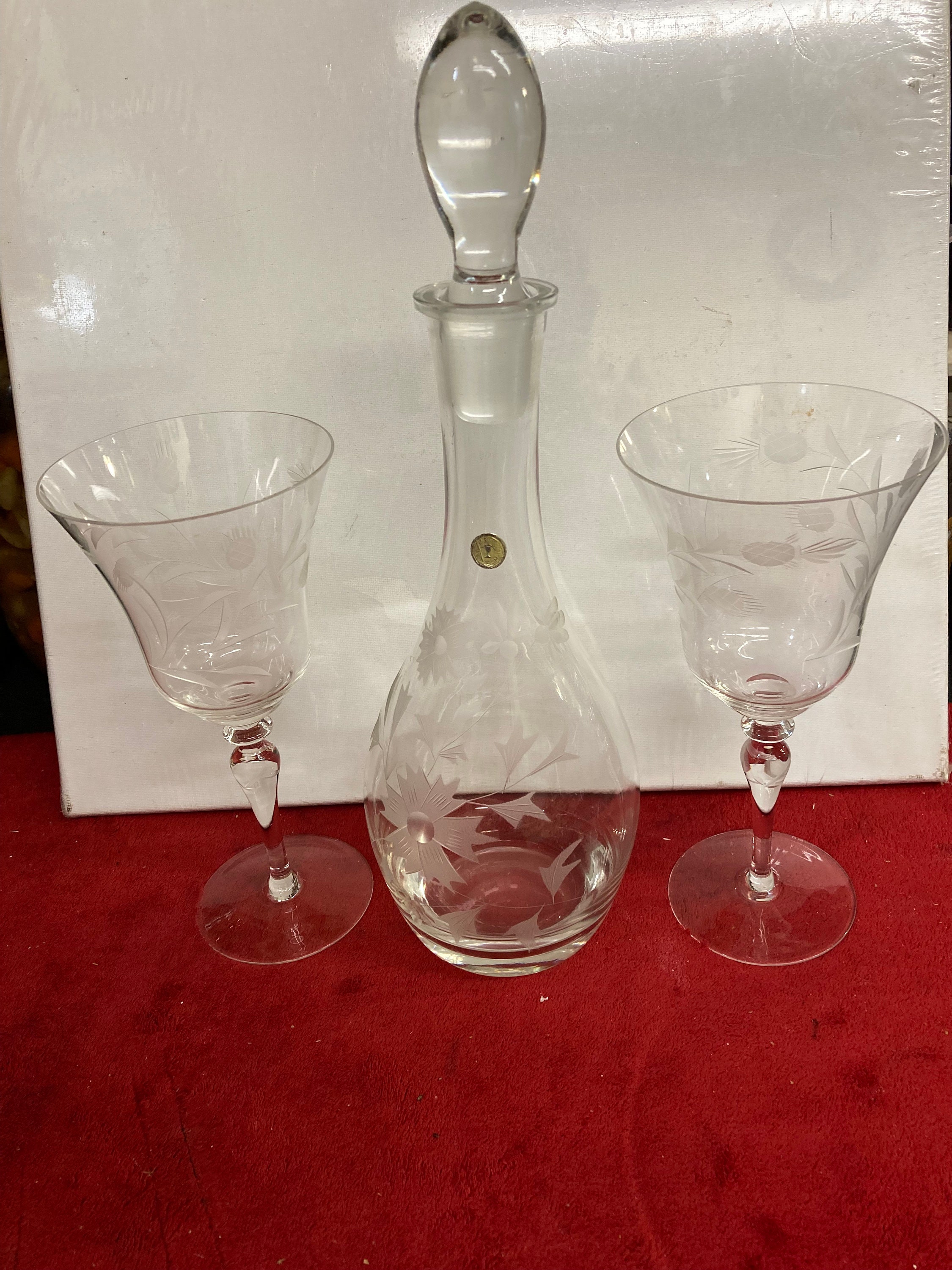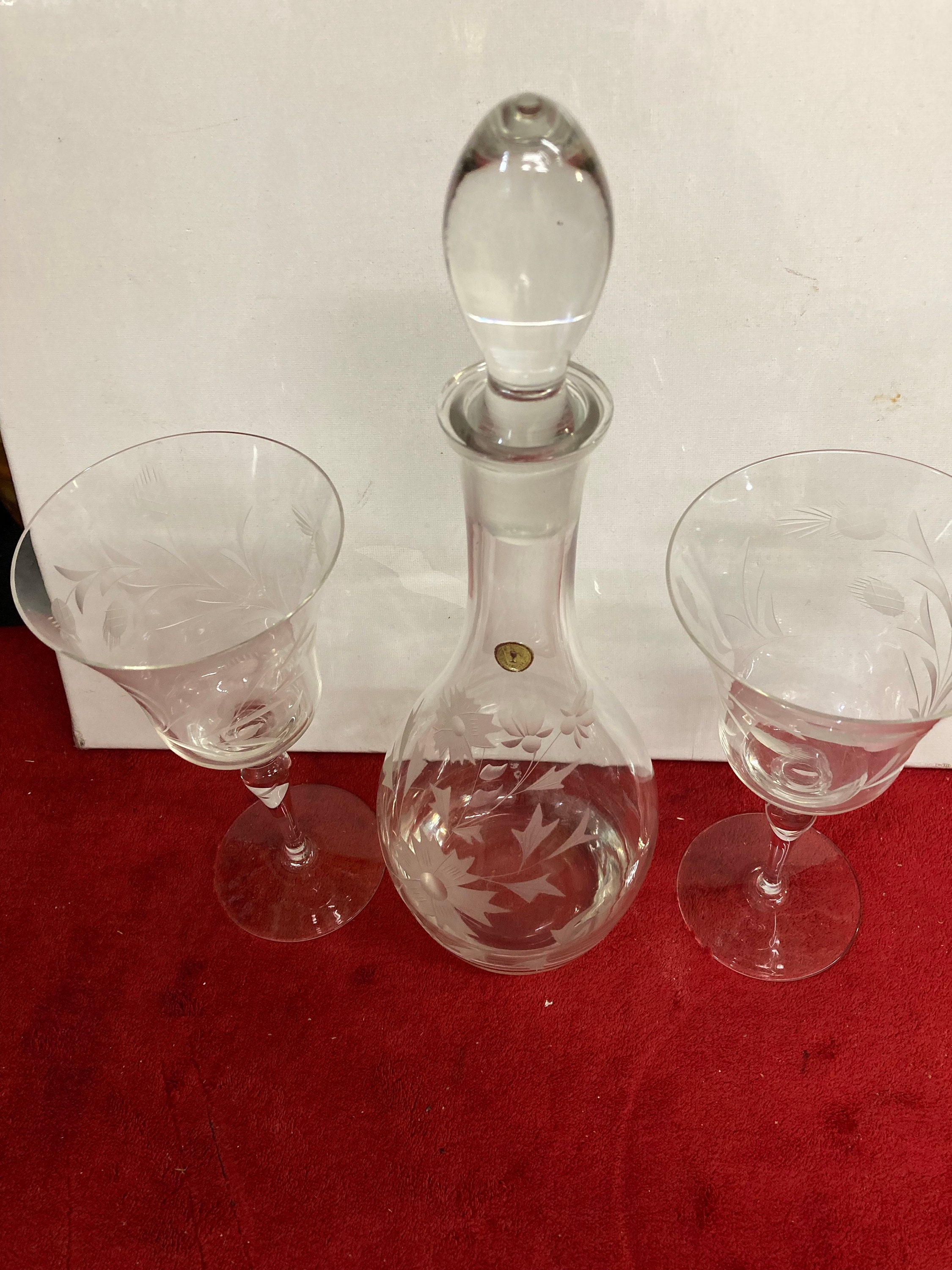 Decanter and 2 Wine glasses are in Excellent vintage condition