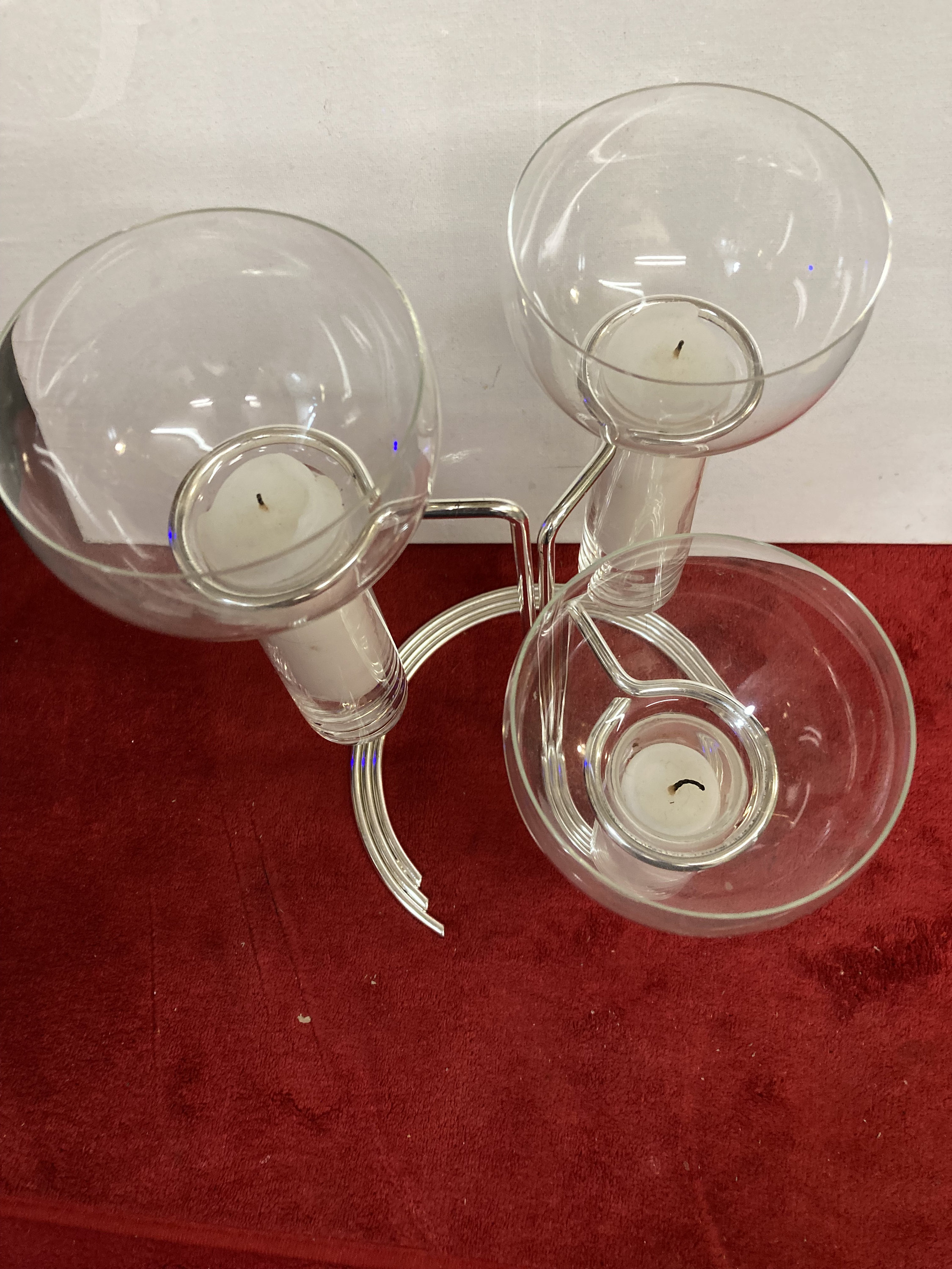 1960s Rosenthal Triple Glass Globe Vase set with Silvertone metal holder.