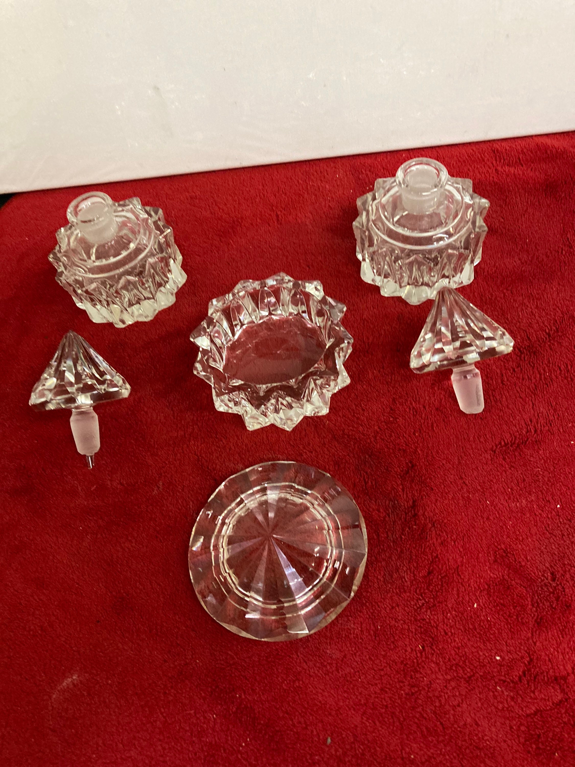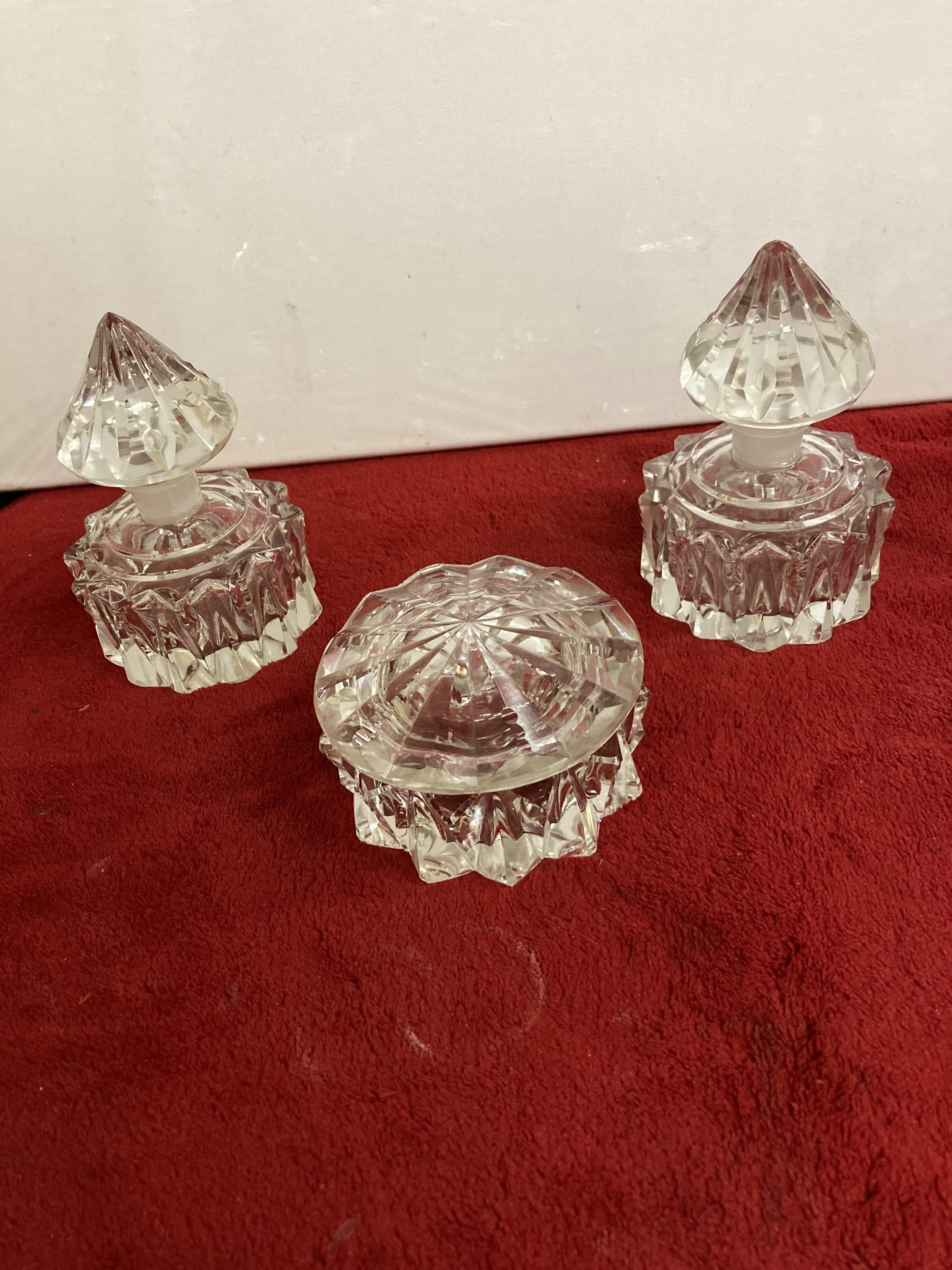 Vintage Vanity Set Cut Crystal Glass Powder Jar