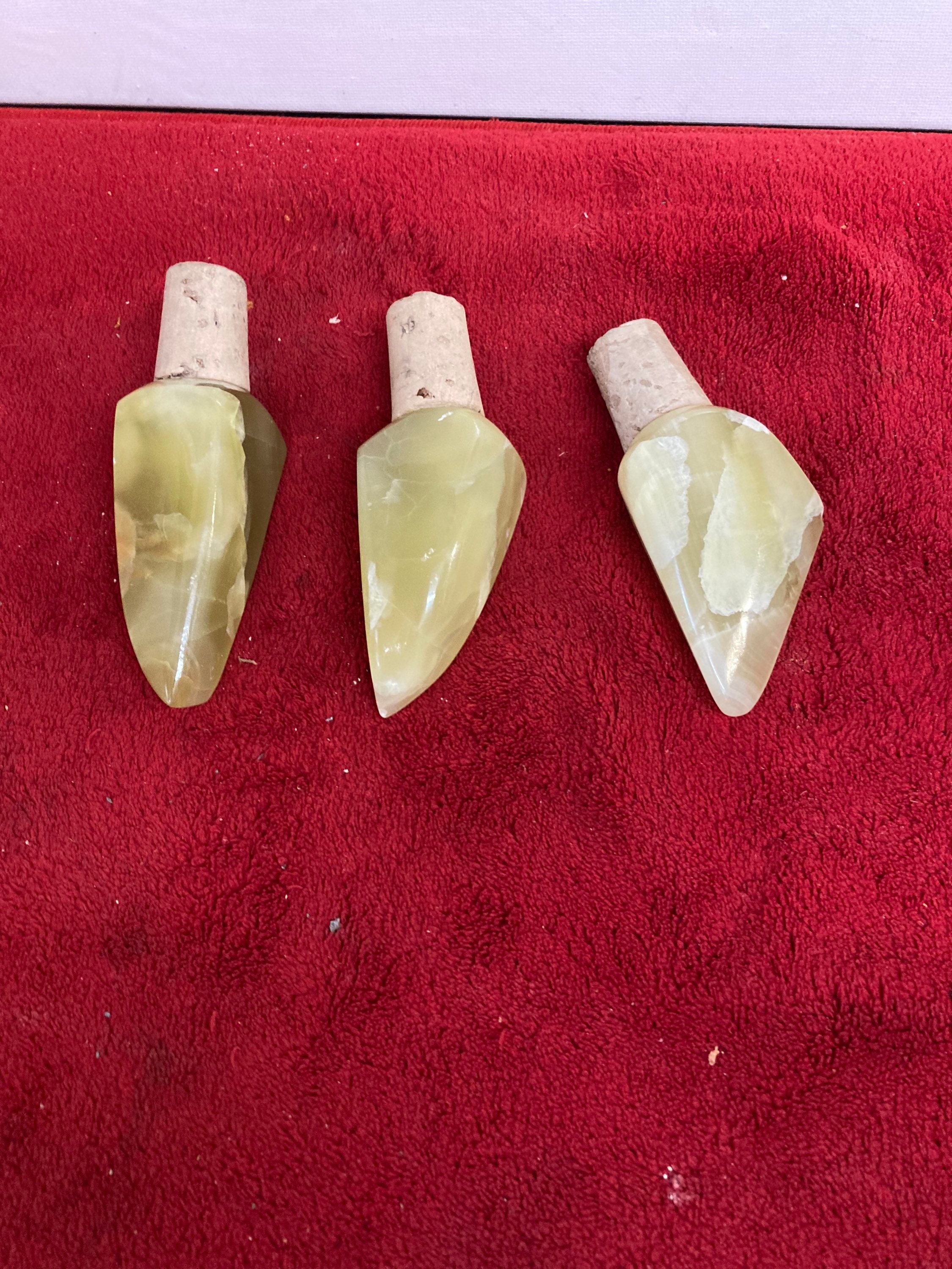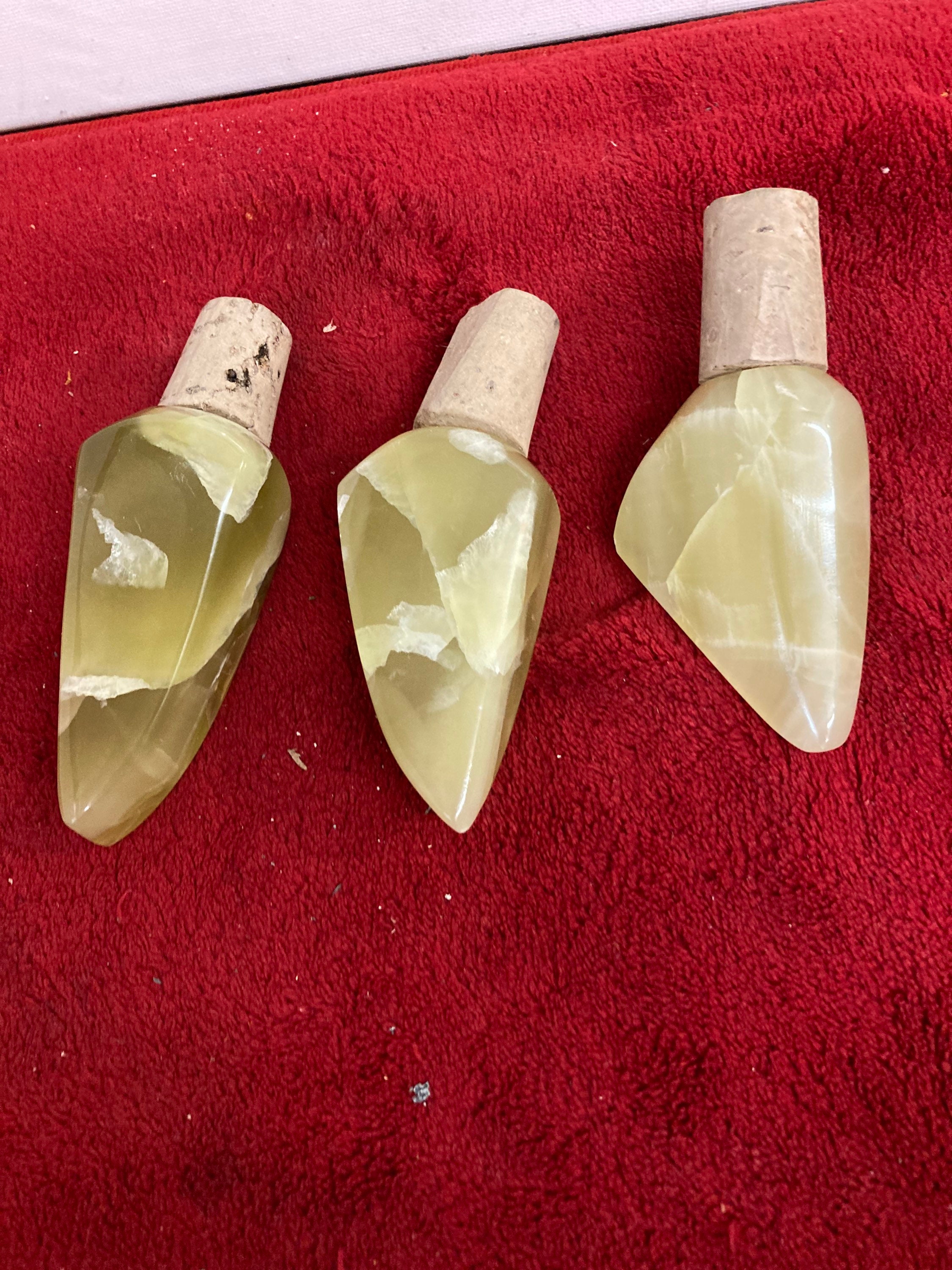 3 Polished Calsite Freeform Bottle Stopper - Polished Gemstone on Top.Average size is 4 " tall with attached cork and 2 " wideVery Unique and creative art workNo Damages, Chips Or Cracks