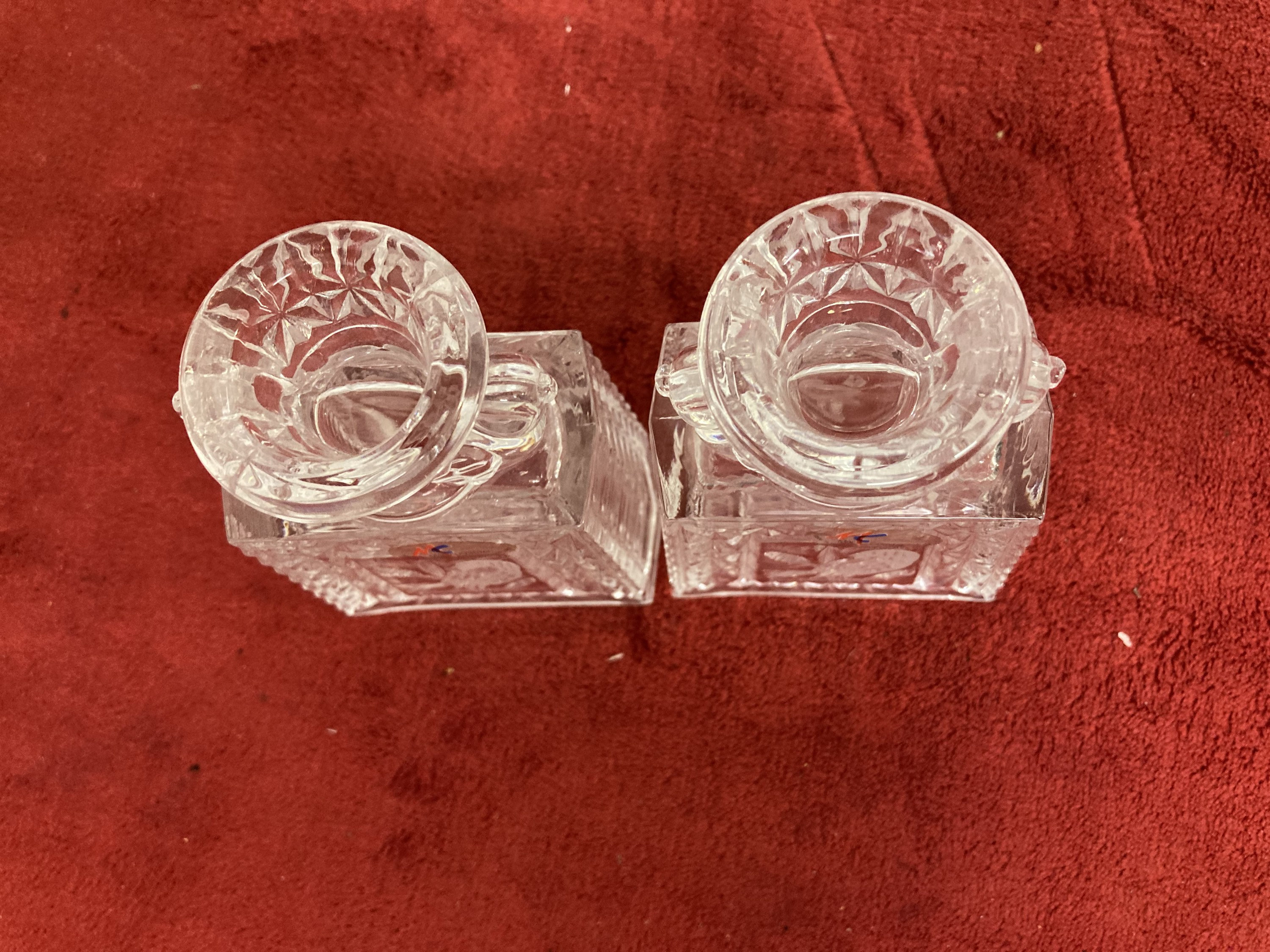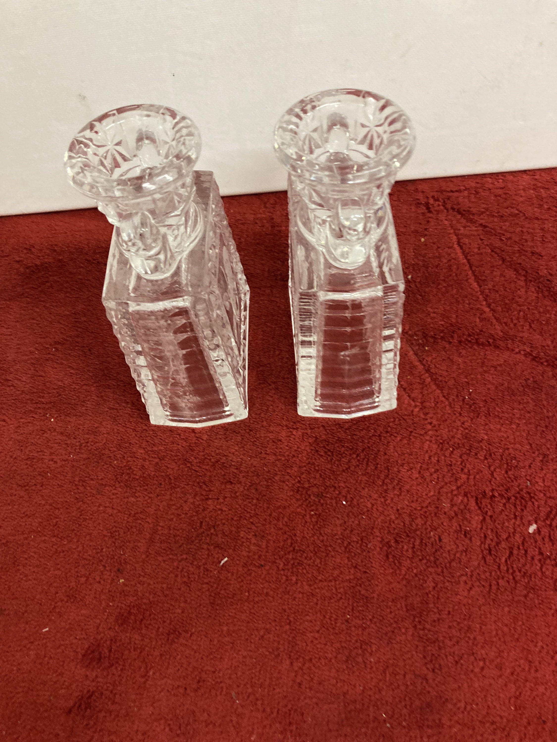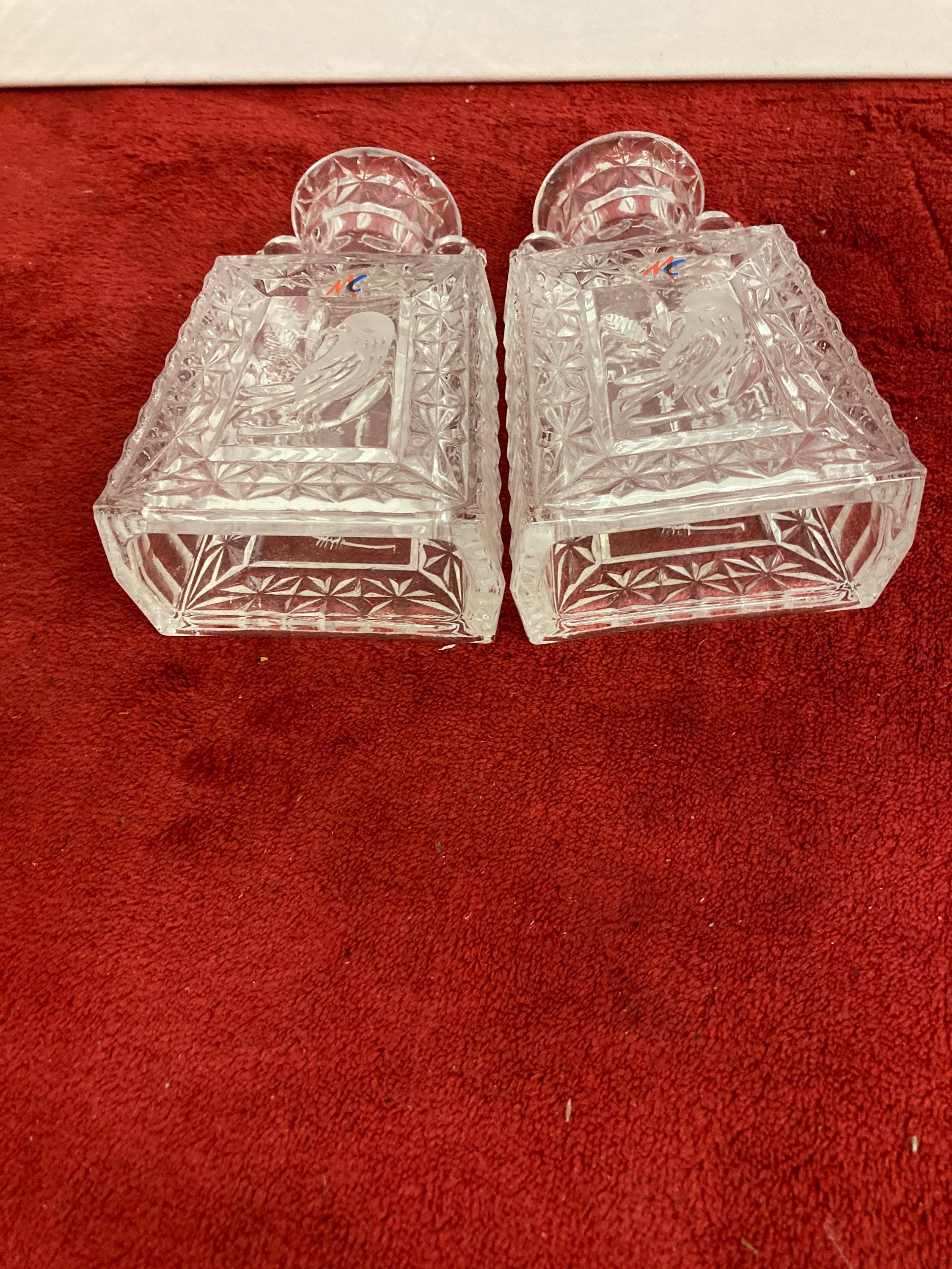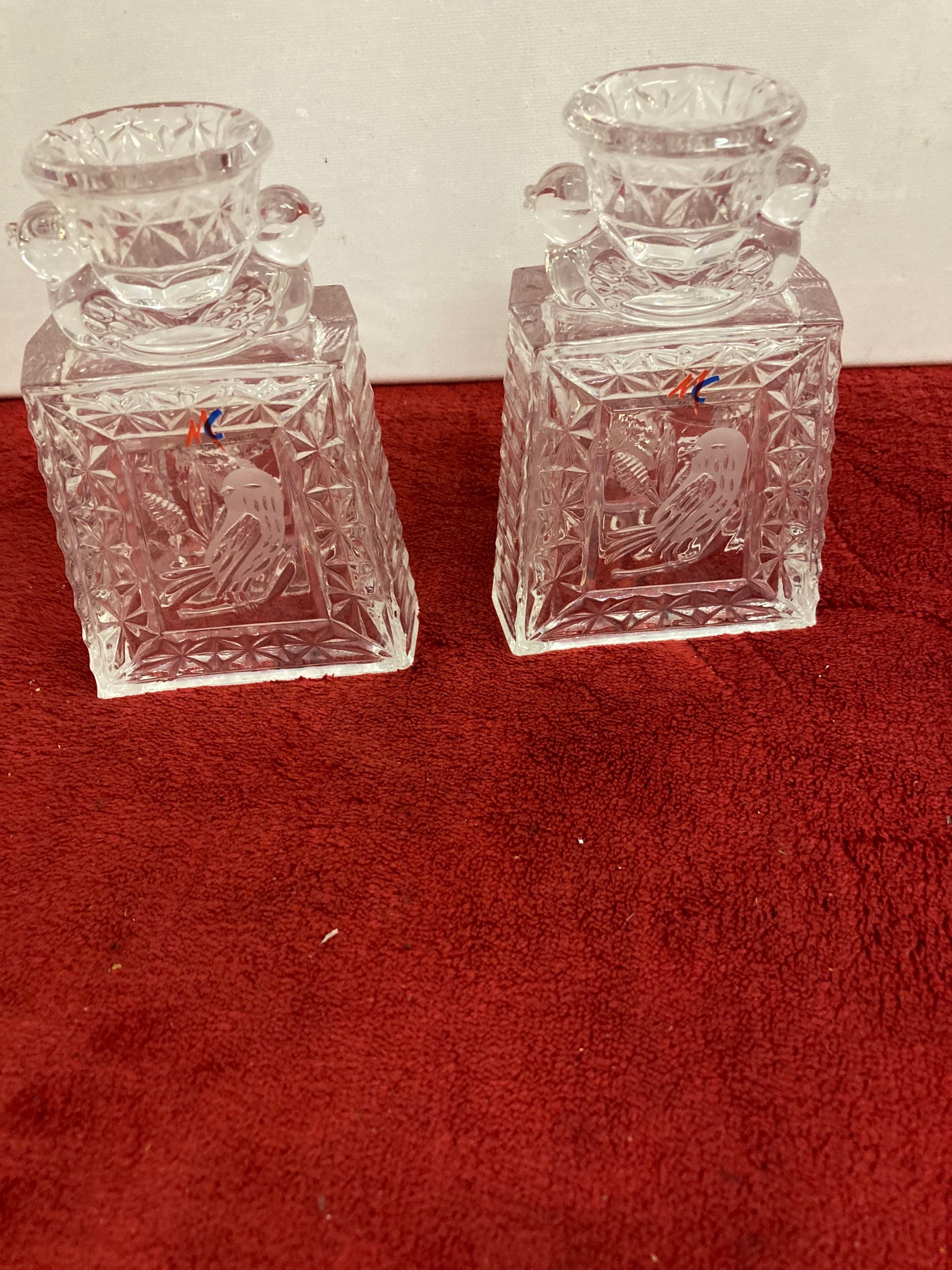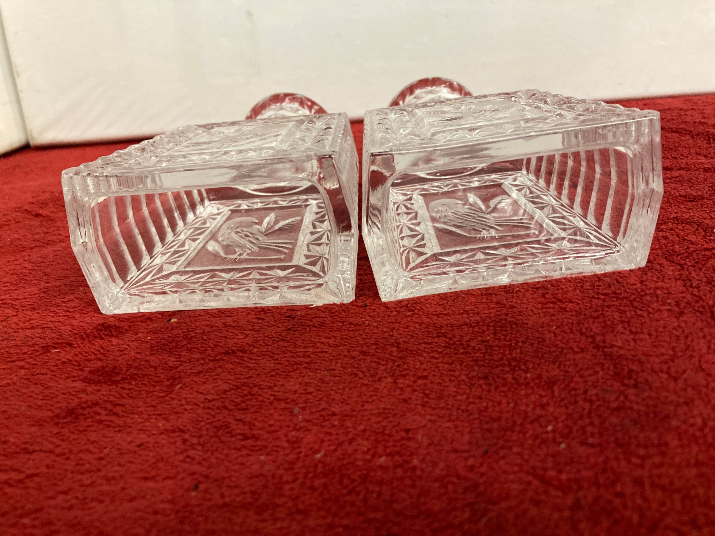 German Pressed Cut Glass Bird Candlesticks