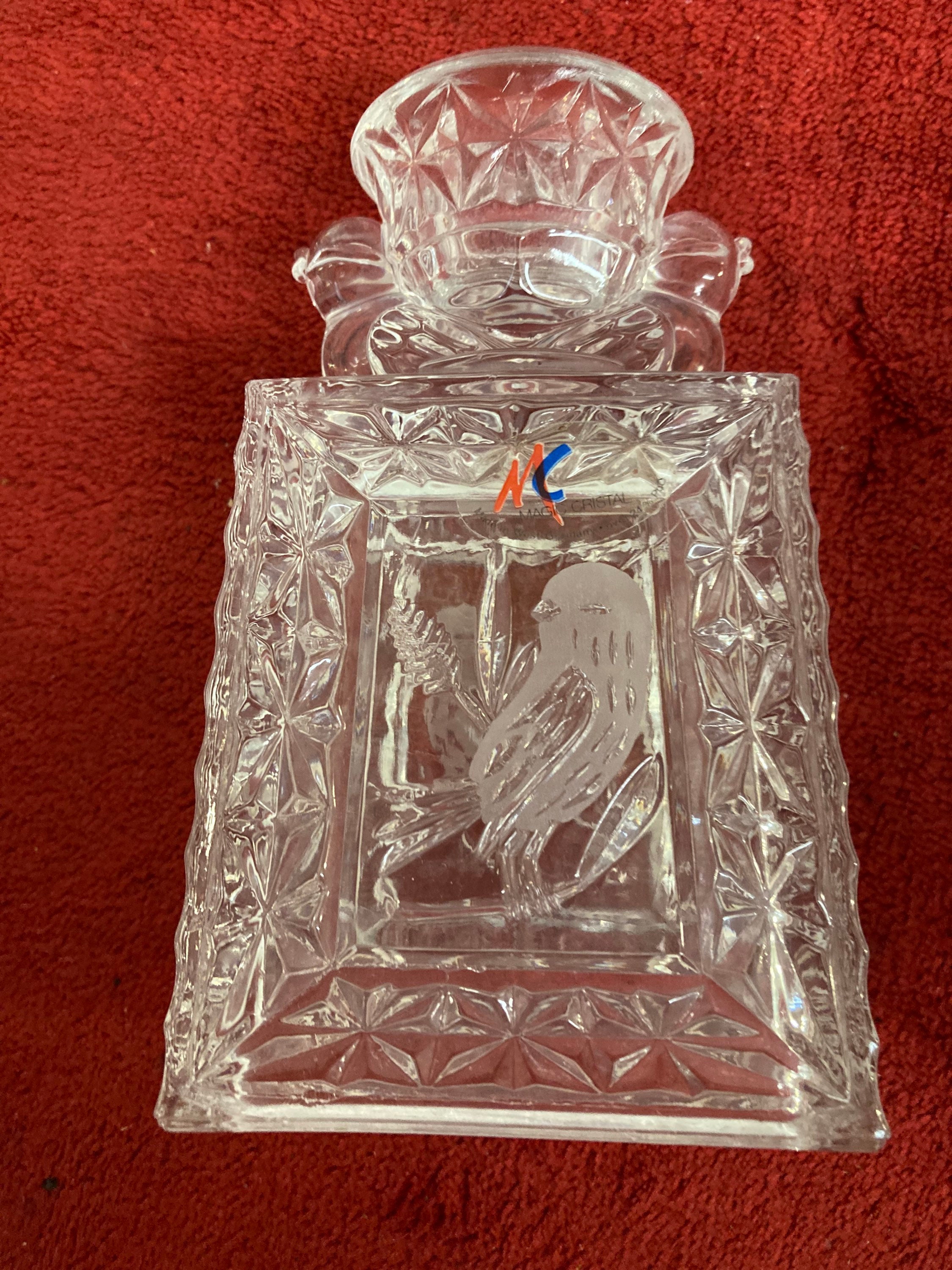 German pressed cut glass bird candlesticks,