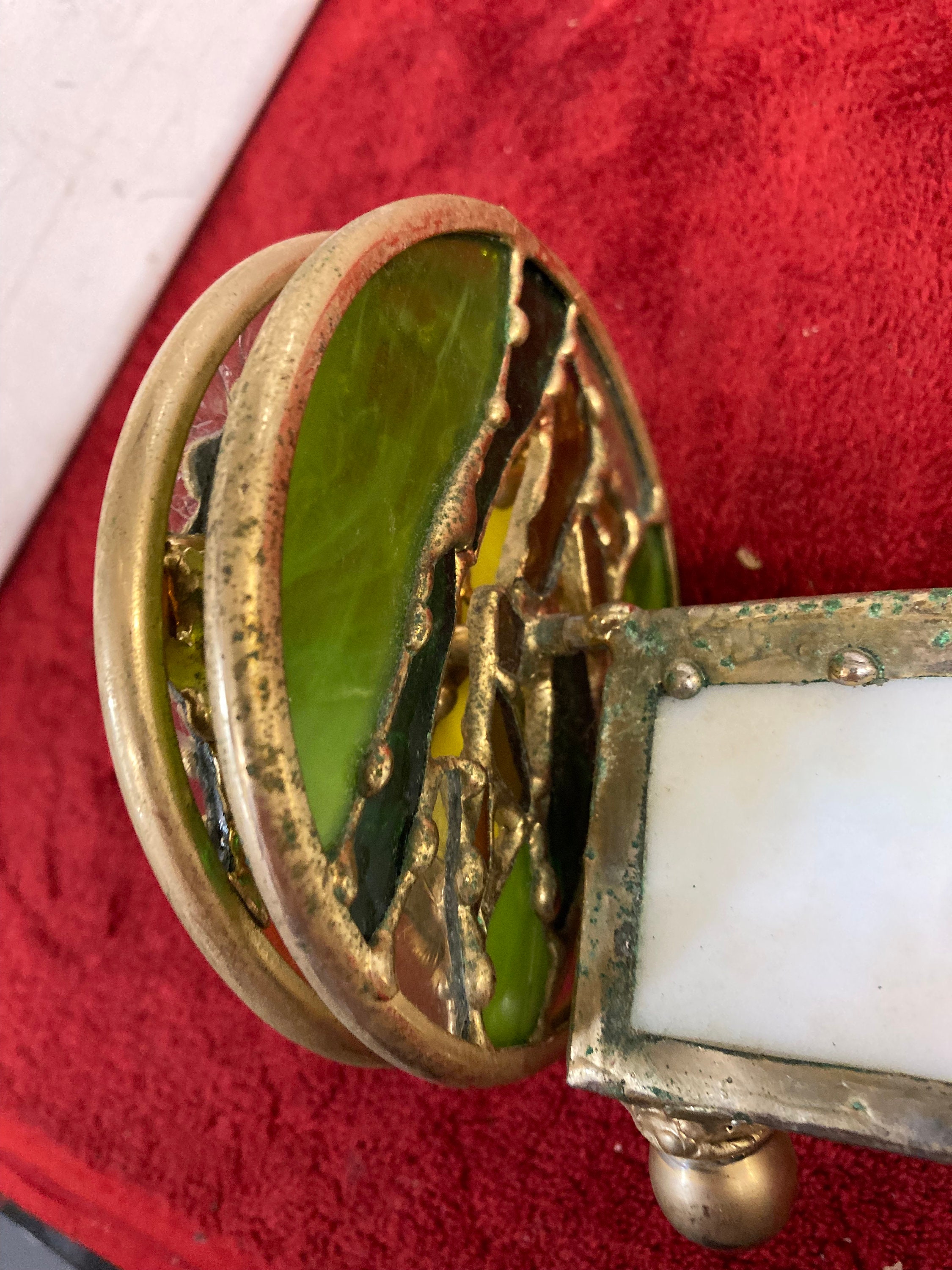 Vintage hand blown art studio stained leaded glass kaleidoscope toy