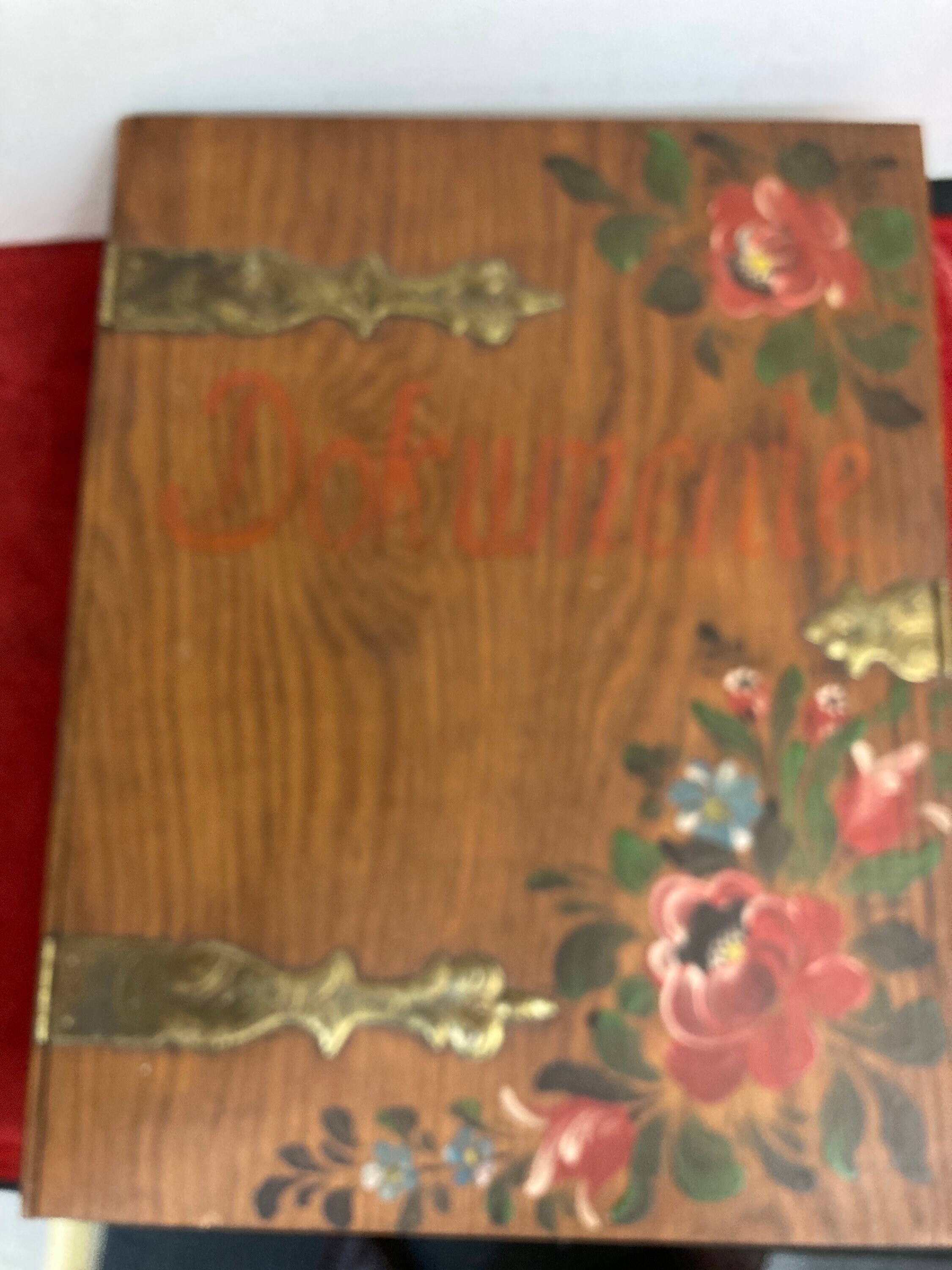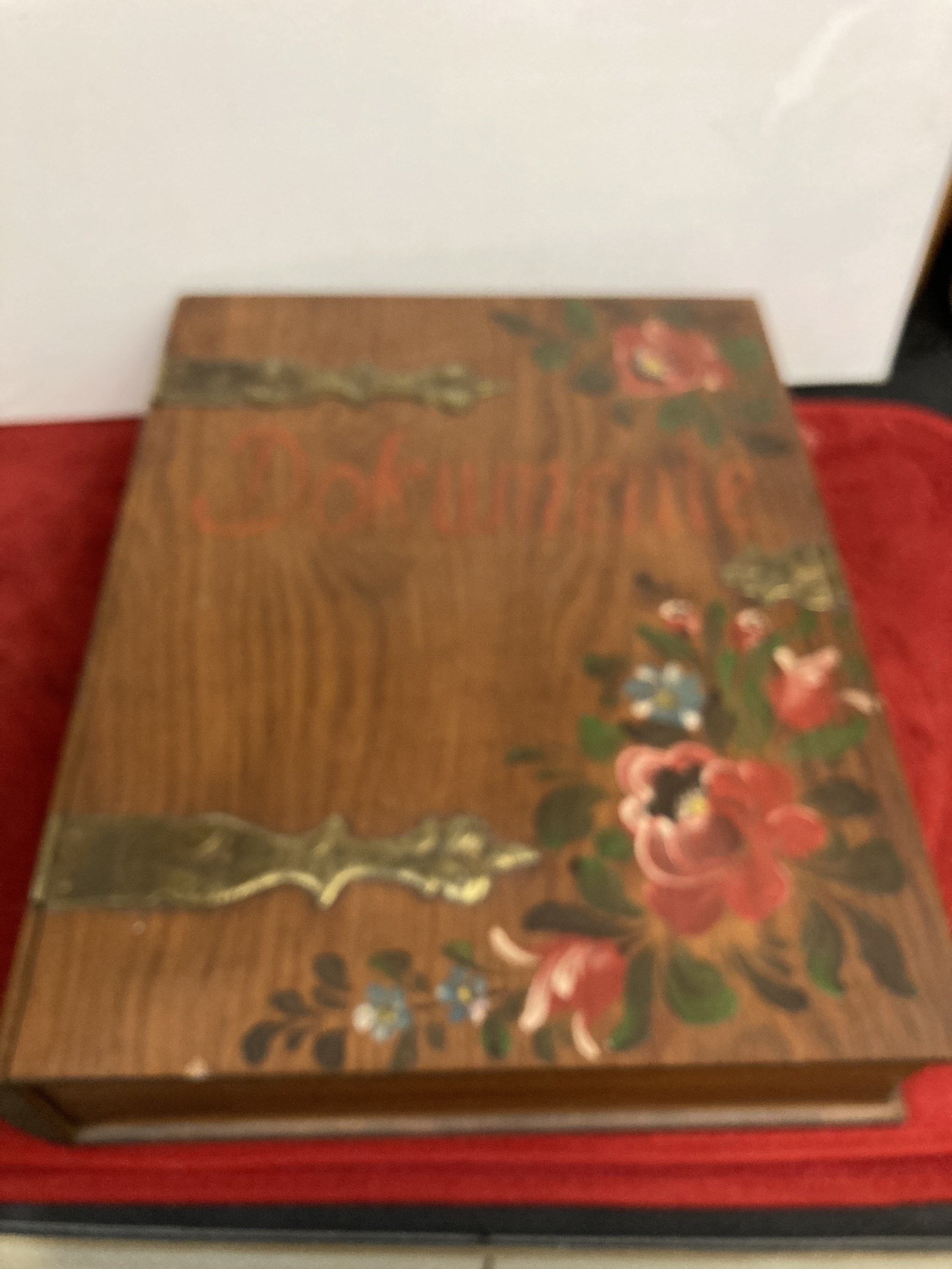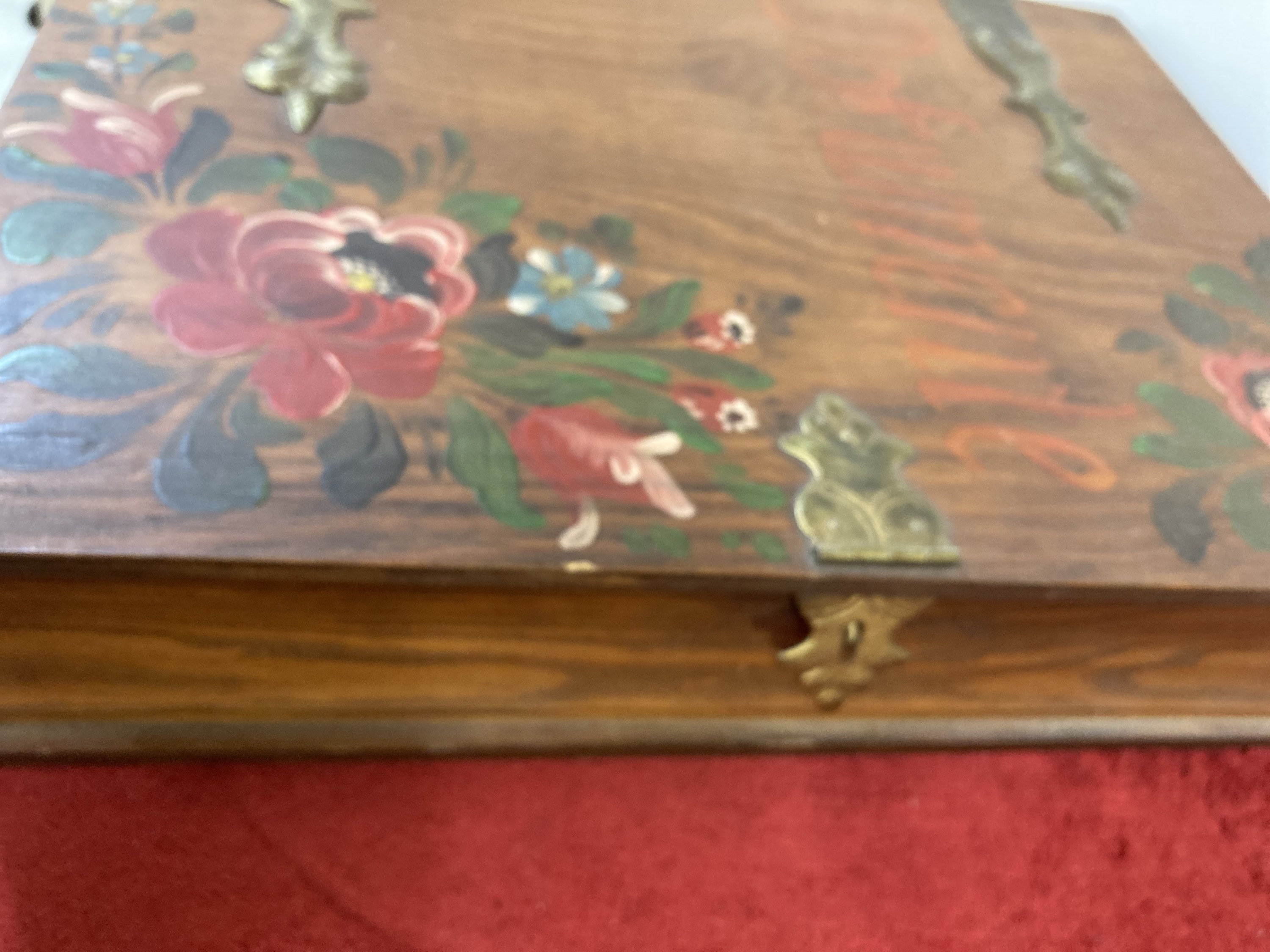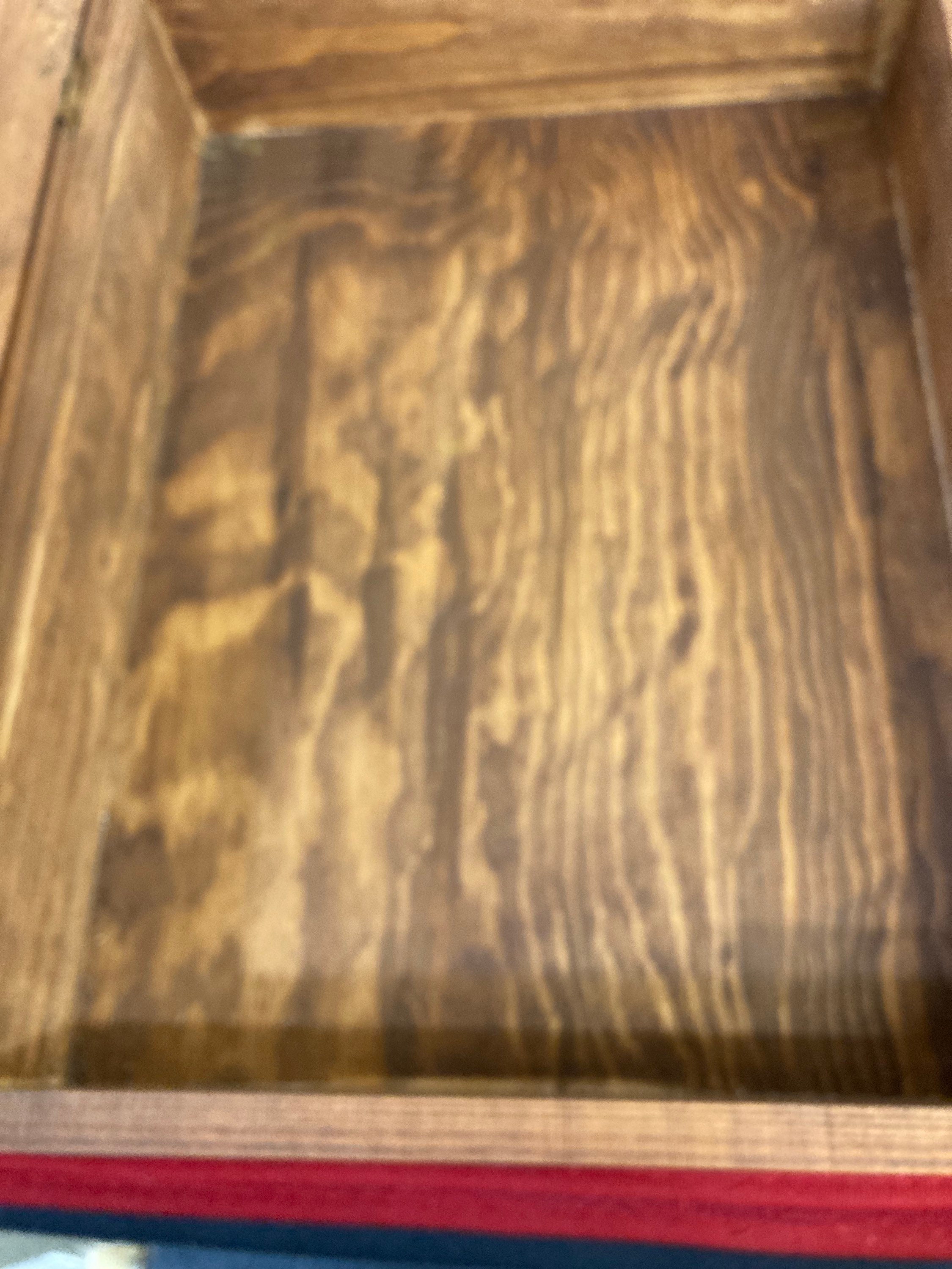 Brass hinge and accents. Original finish. Solid.