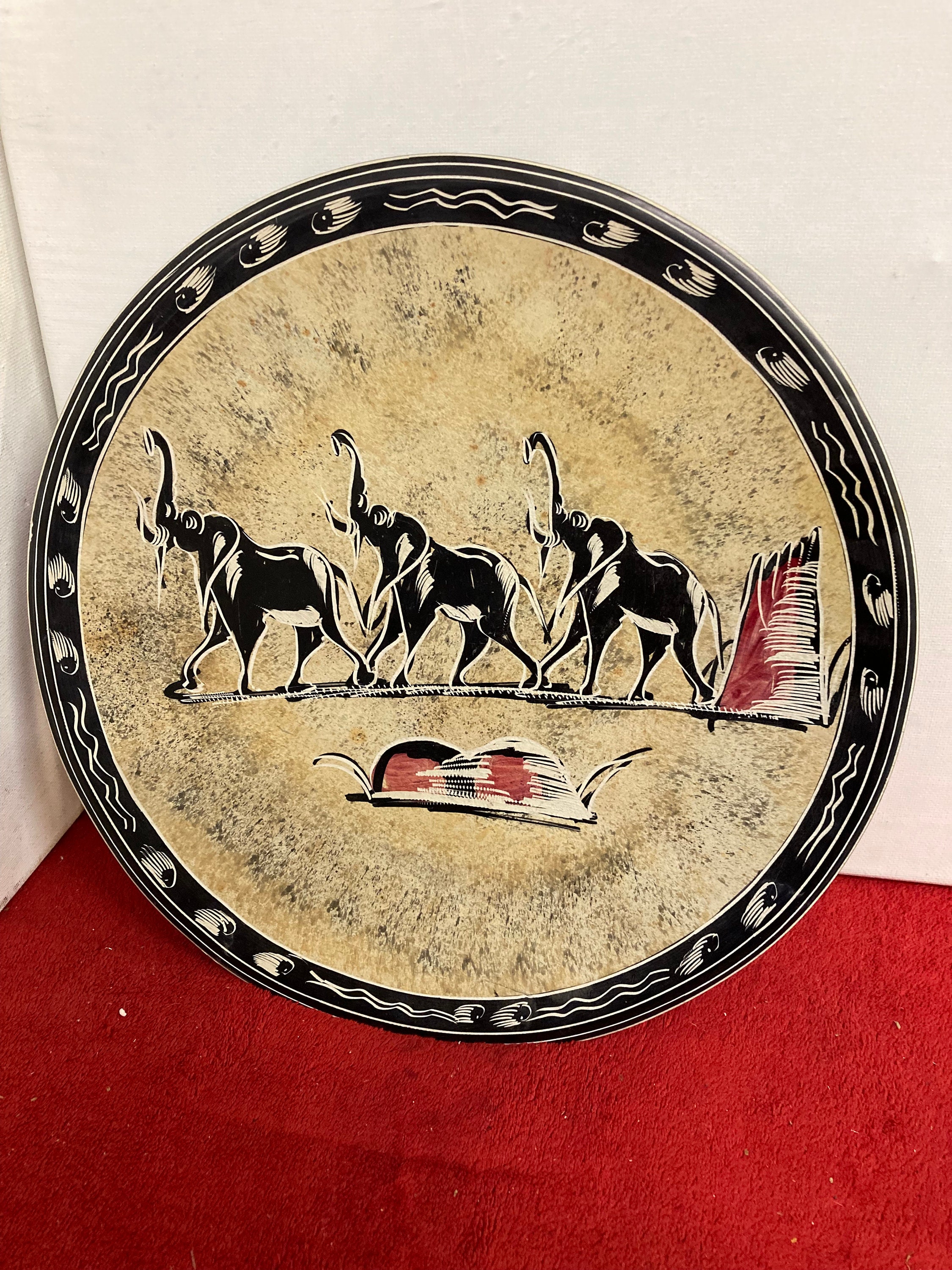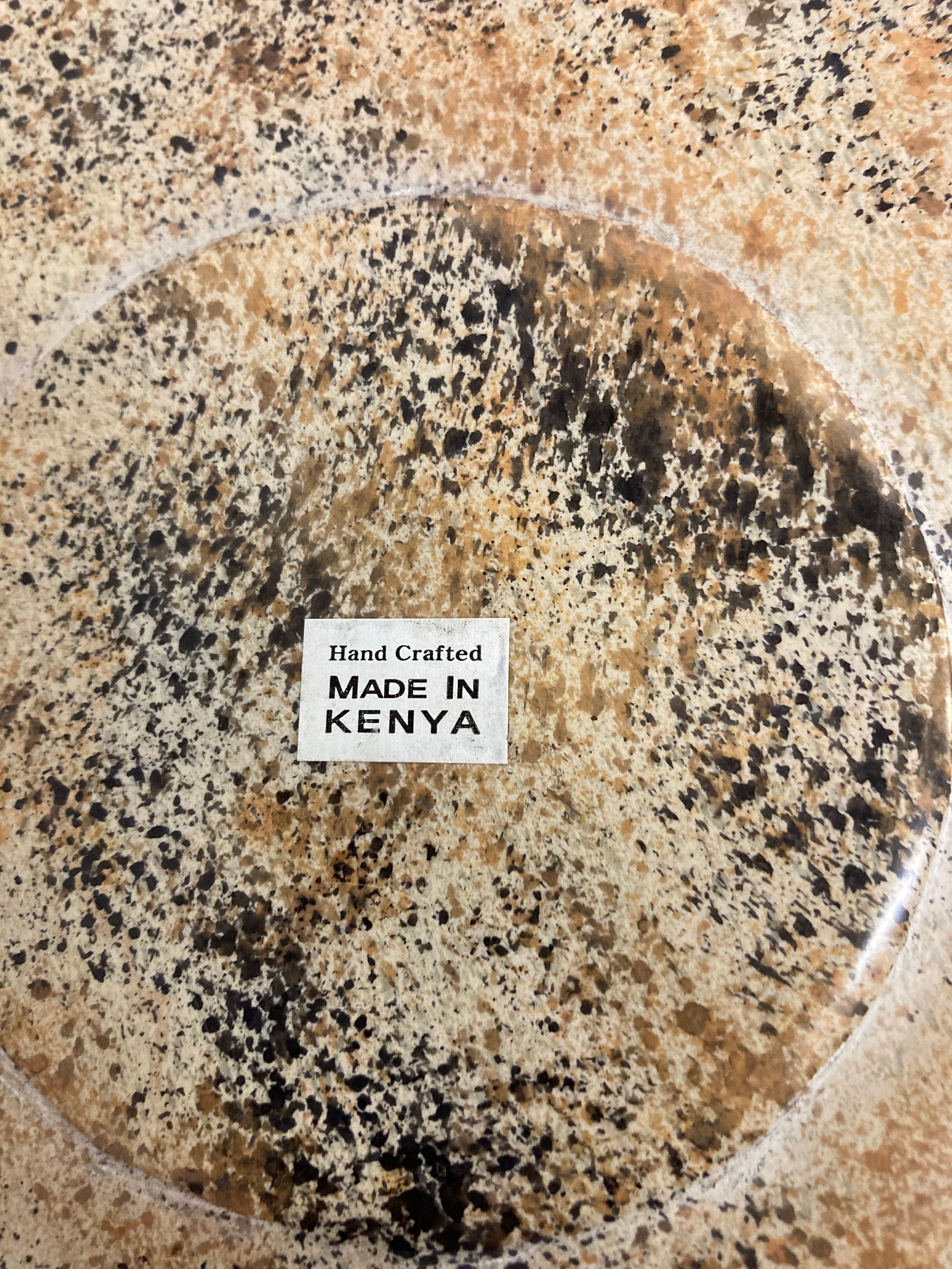 Soapstone Elephants African Wild Animals Stone Pinch PlateAfrica Kenya Soapstone Handmade Art Pottery Plate 10" Decorative OnlyFeatrures 3 Elephants 10" in diameter Hand CraftedMade In Kenya
