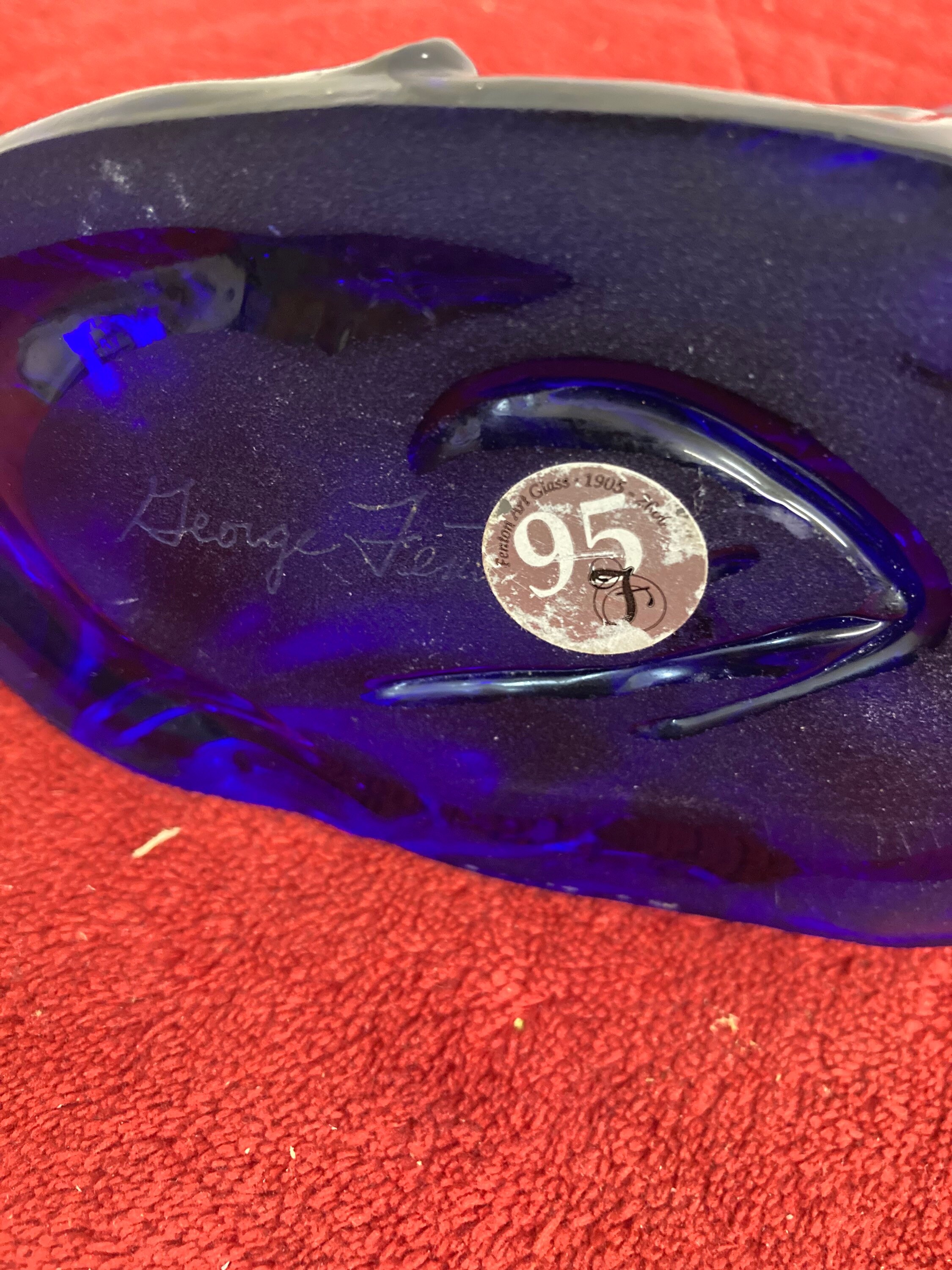 The base bears the Fenton logo ,Engraved George Fenton , Adhesive label 95th Anniversary 1905-2000