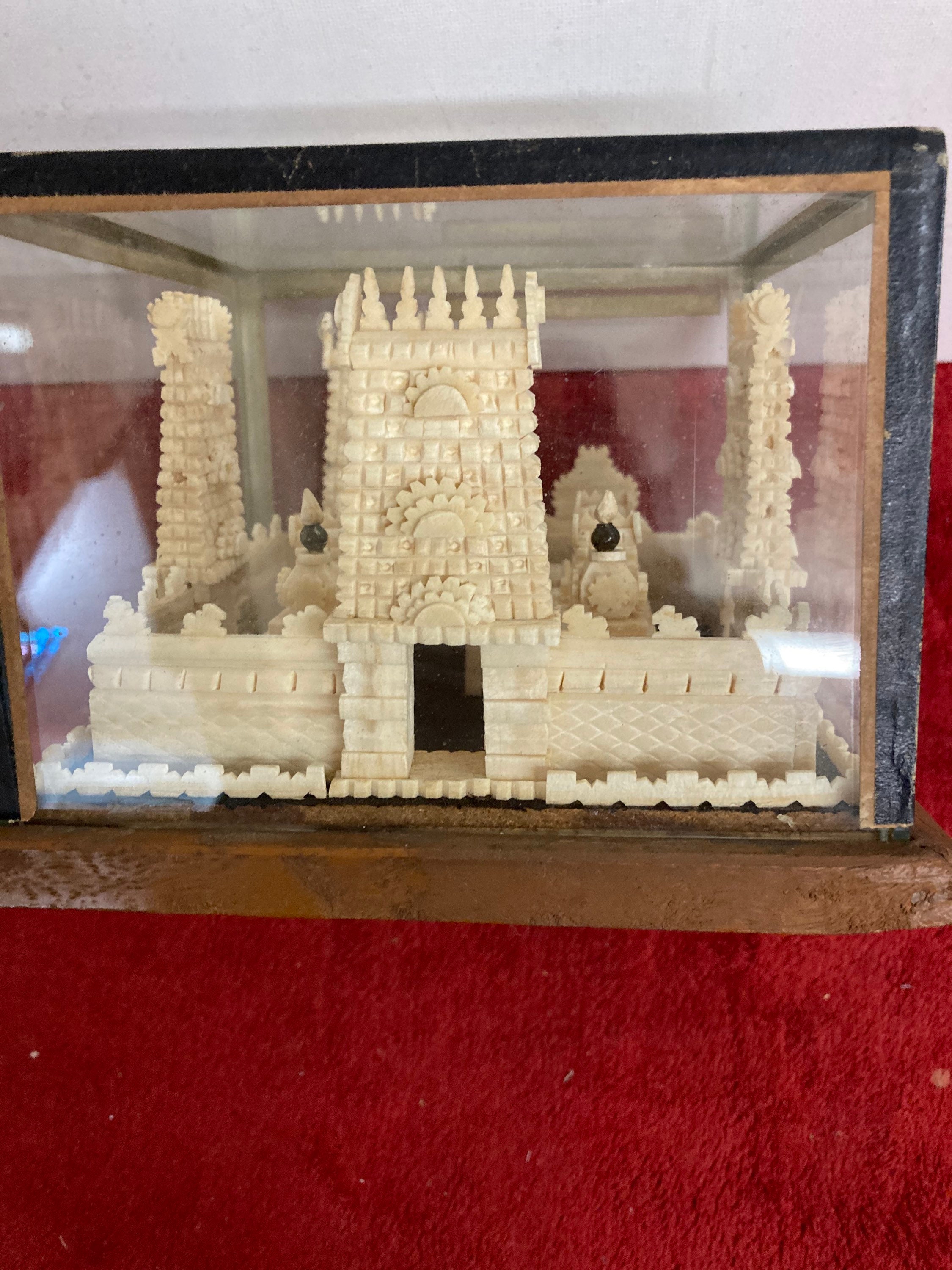 The story of the figure of Meenakshi is also legendary. It describes a Pandya king, Malayadhvaja, who hoped for a son and heir. He carefully performed a fire ceremony requesting that the gods fulfill this wish. Instead, he was granted a daughter, Meenakshi, who was born with three breasts. The gods told the king not to worry, but to raise Meenakshi as a brave warrior, just as he would a son, and that when she grew up and met her true love, her third breast would disappear. Meenakshi proved herself gifted in battle, conquering armies in all directions. When she sought to attack the north, however, she was confronted by the god Shiva, who dwells on Mount Kailasha, deep in the Himalayas. Upon seeing him, one of her breasts fell off and the prophecy was realized.