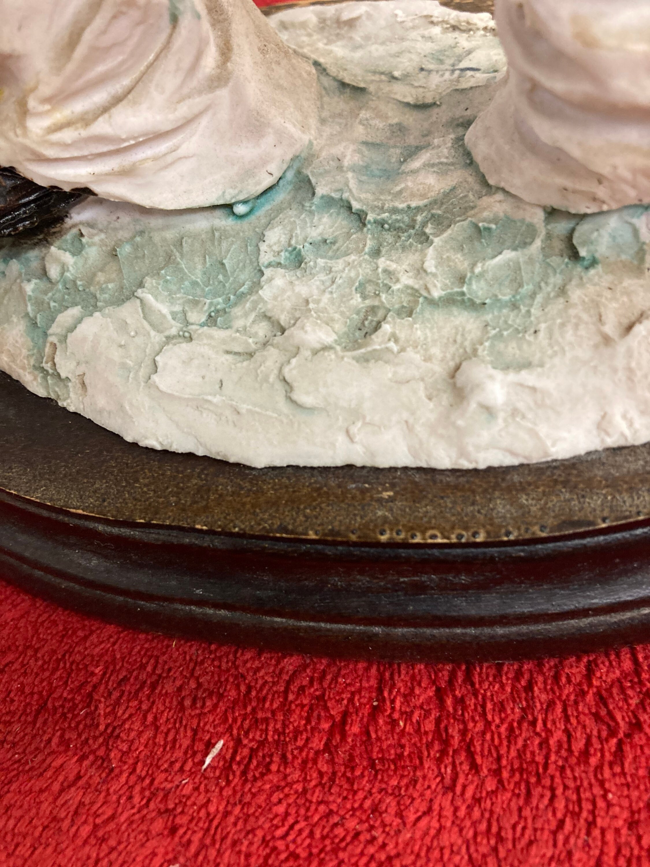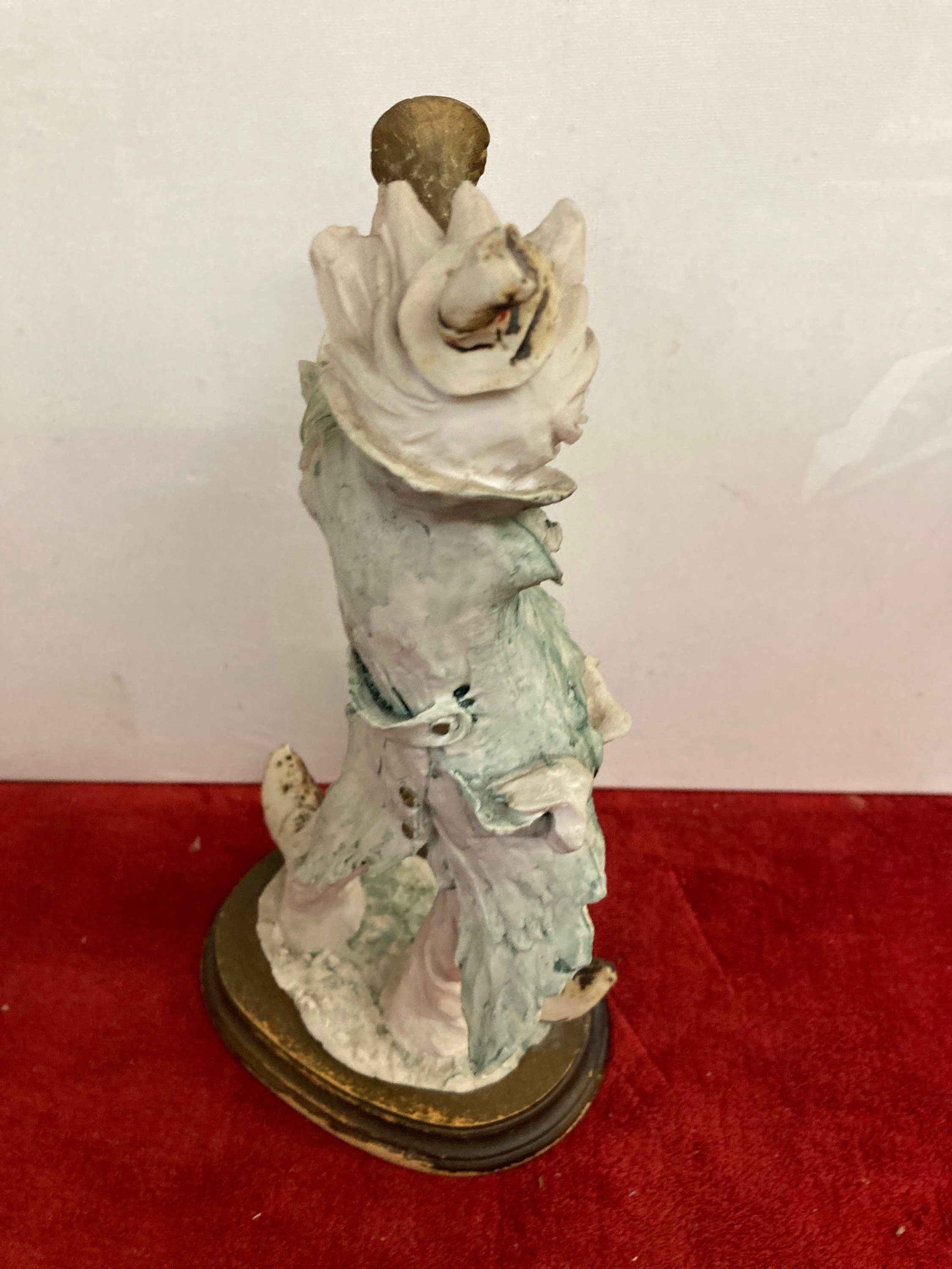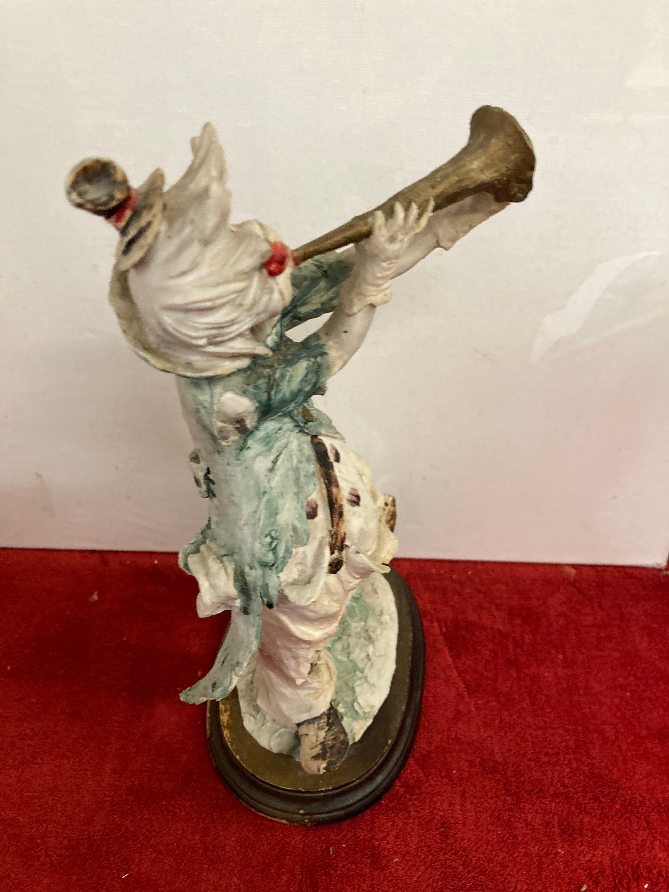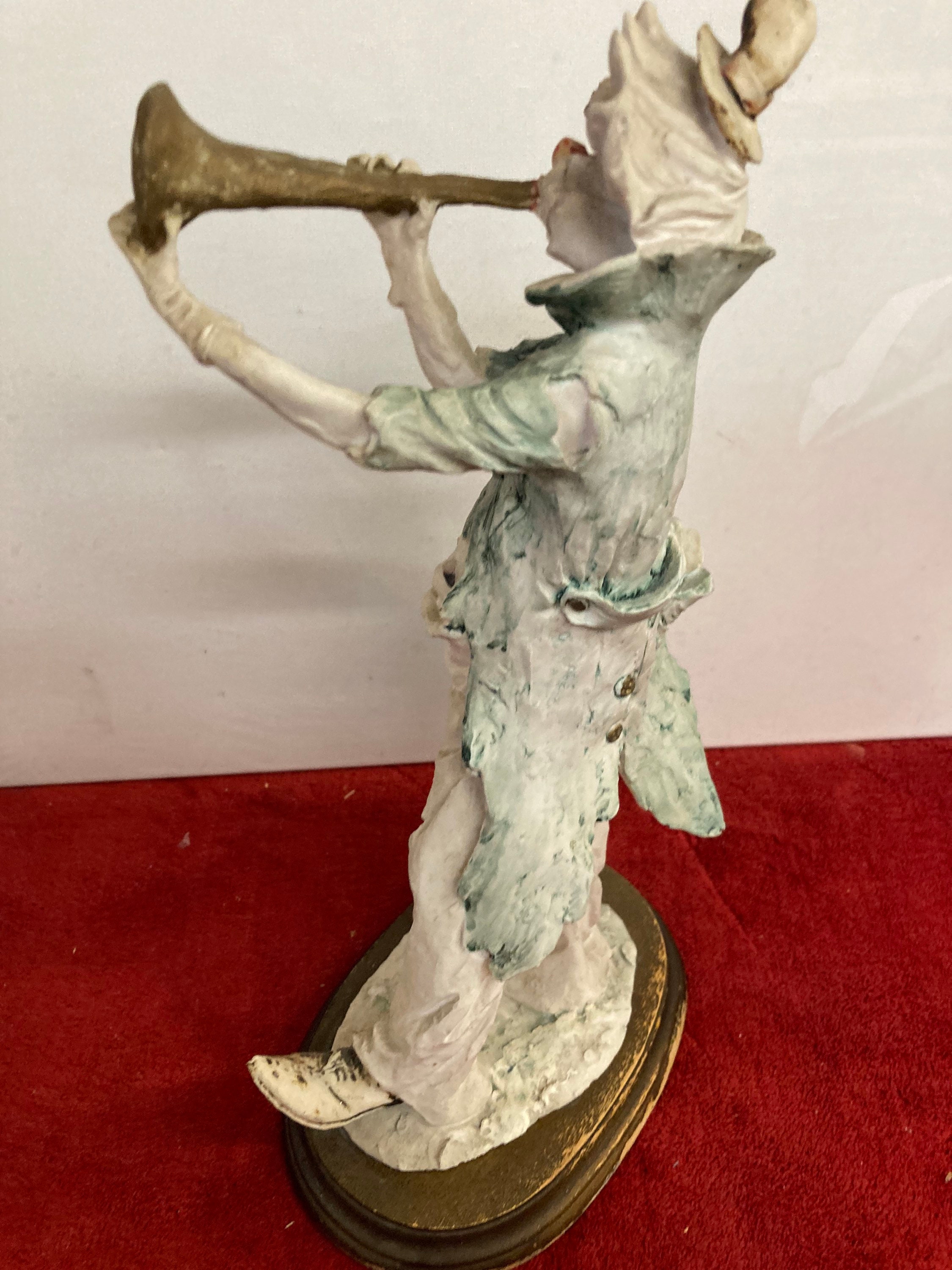 Vintage Duncan Designs Hobo Clown Playing Horn Resin Figurine on Wooden Base