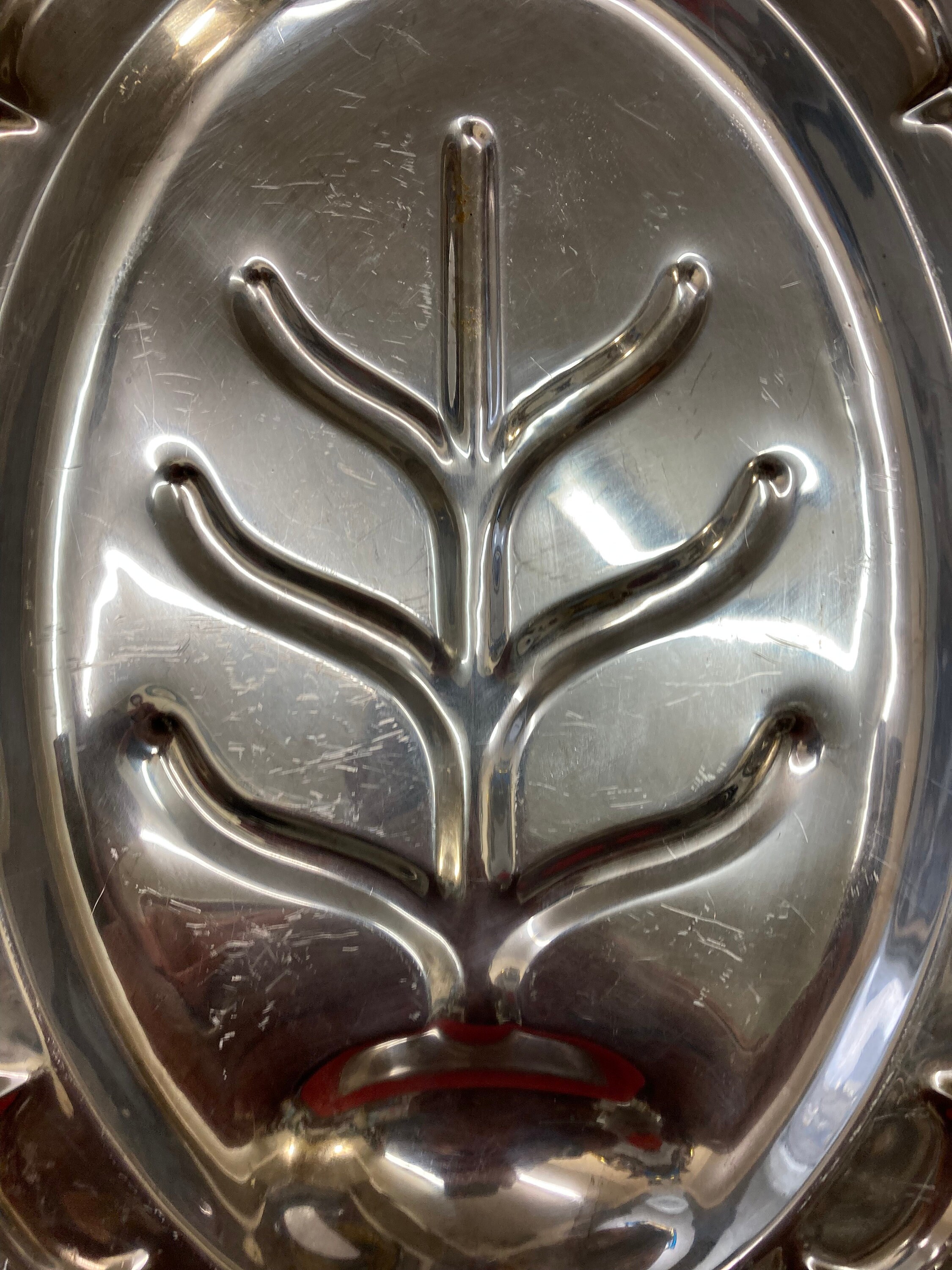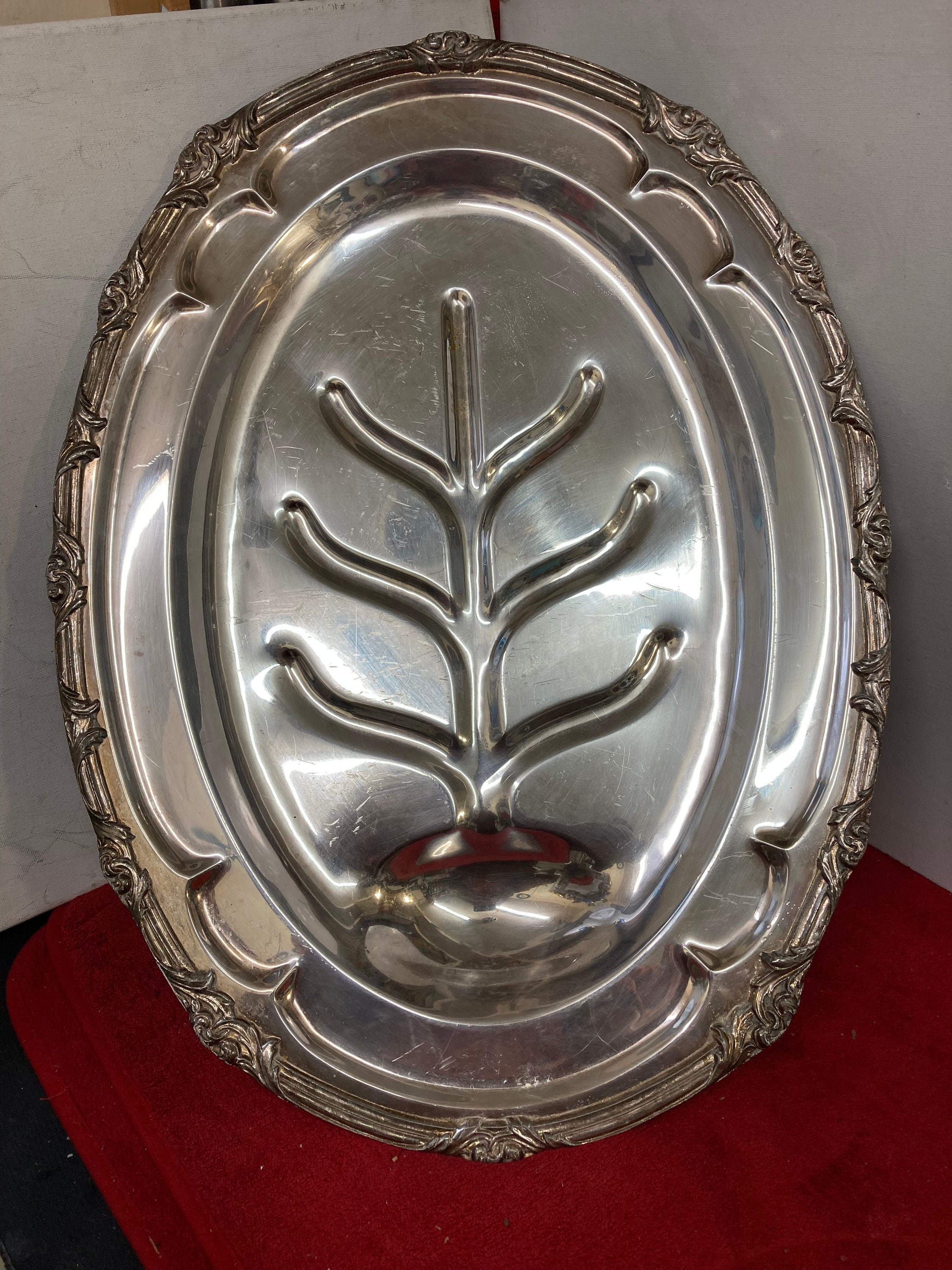 Antique silver on copper ornate serving dish by the Hartford Sterling Co.