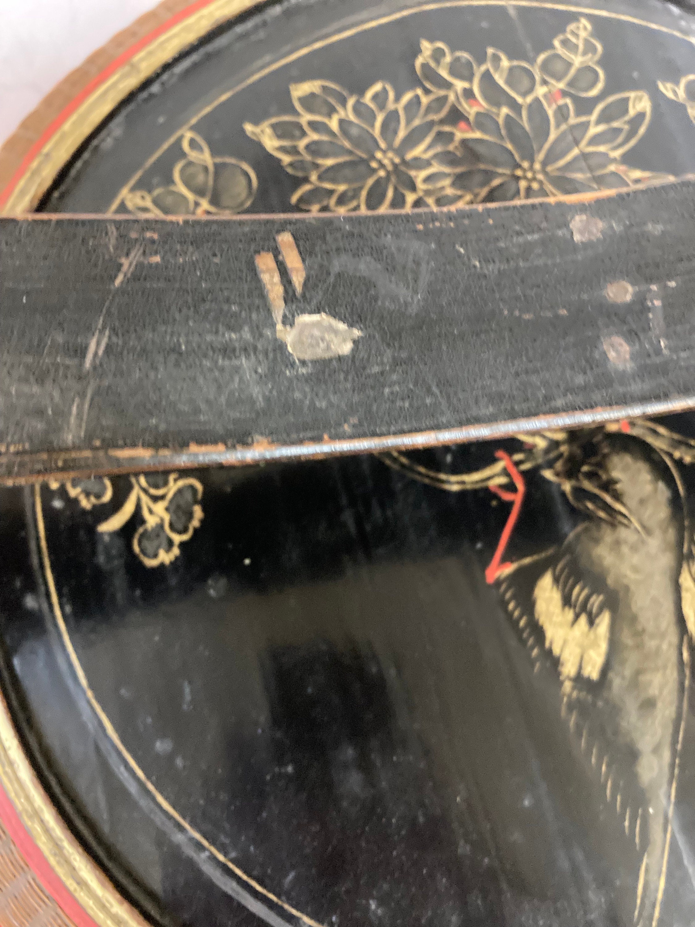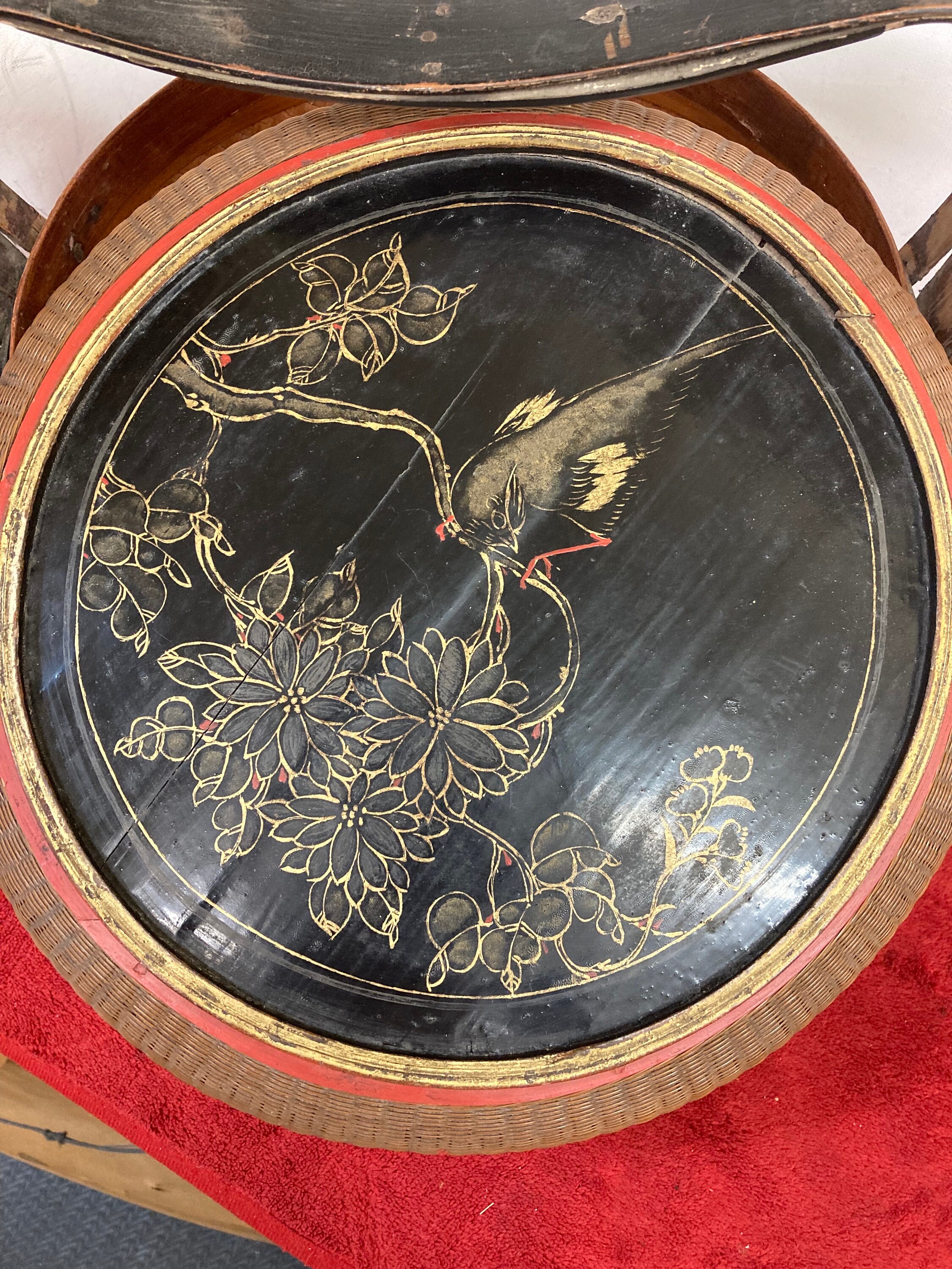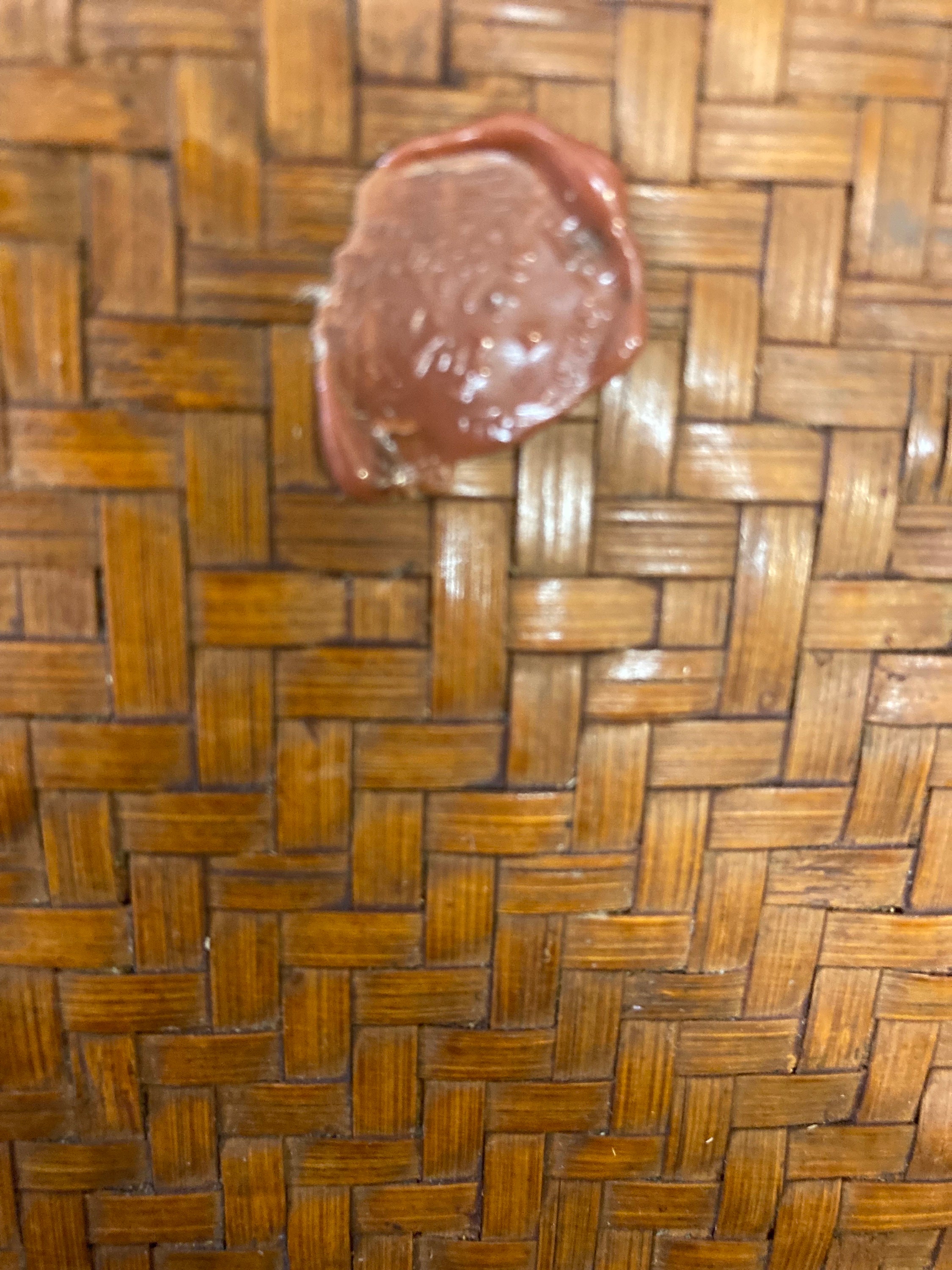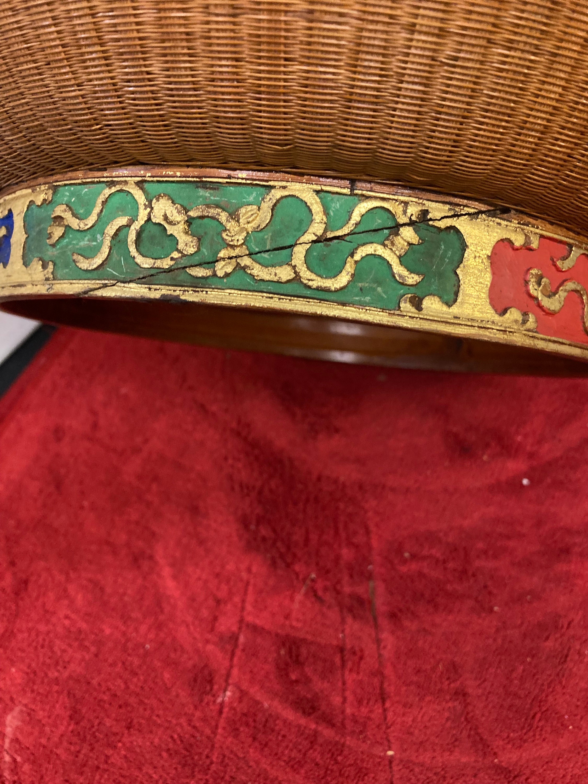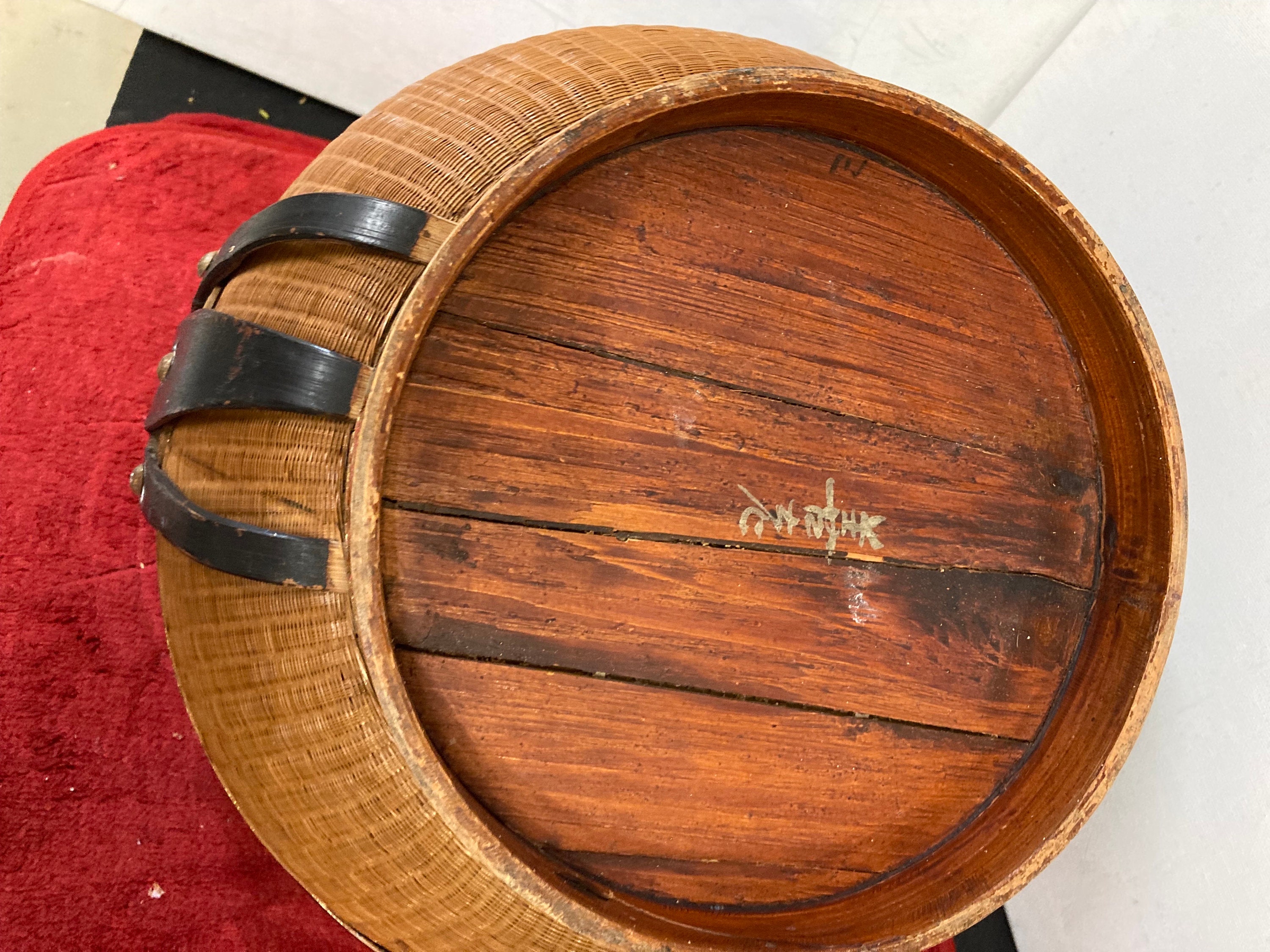 Antique Chinese wedding basket of woven rattan and bamboo.
