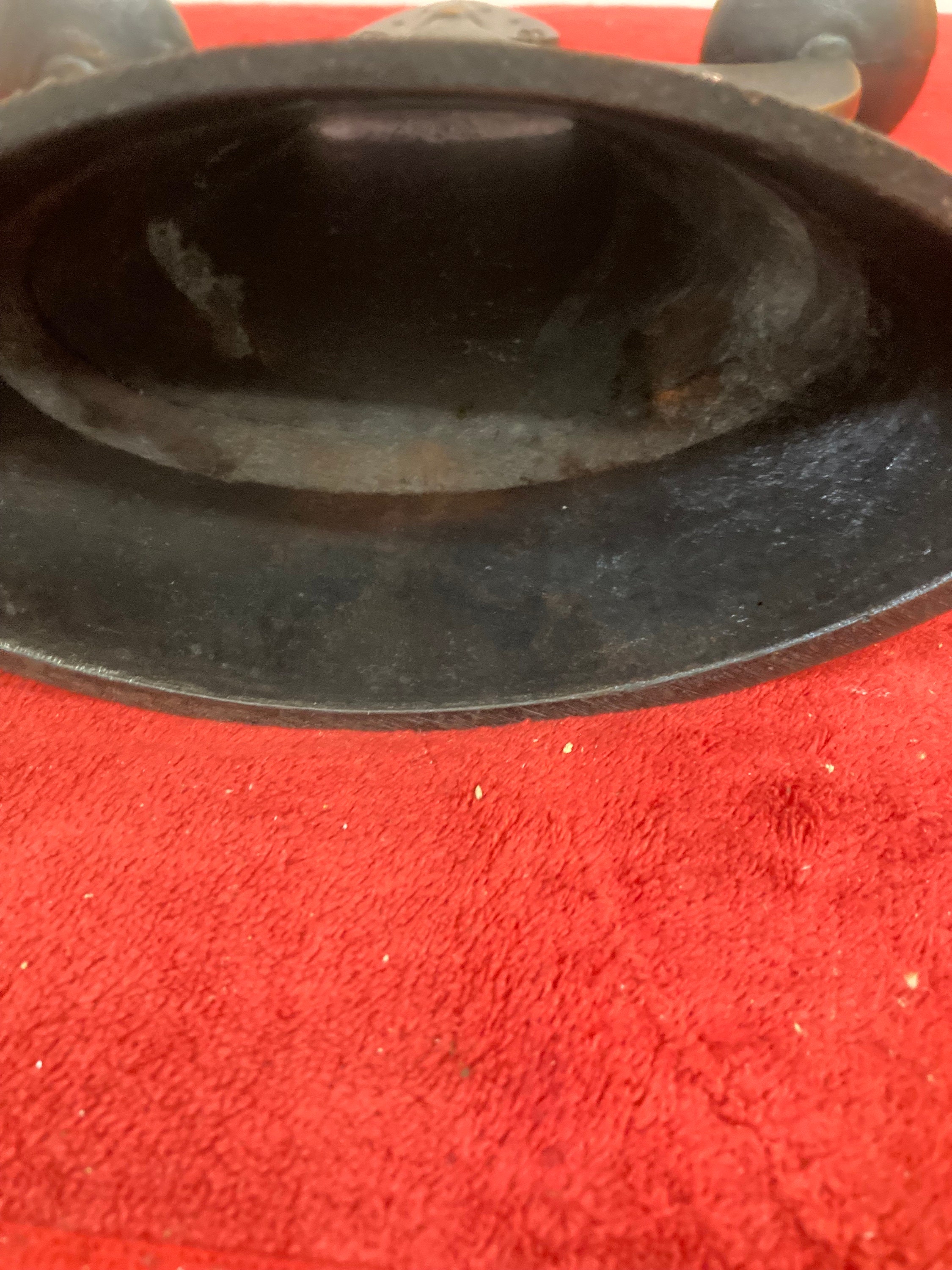 The inside has areas of tarnish.
