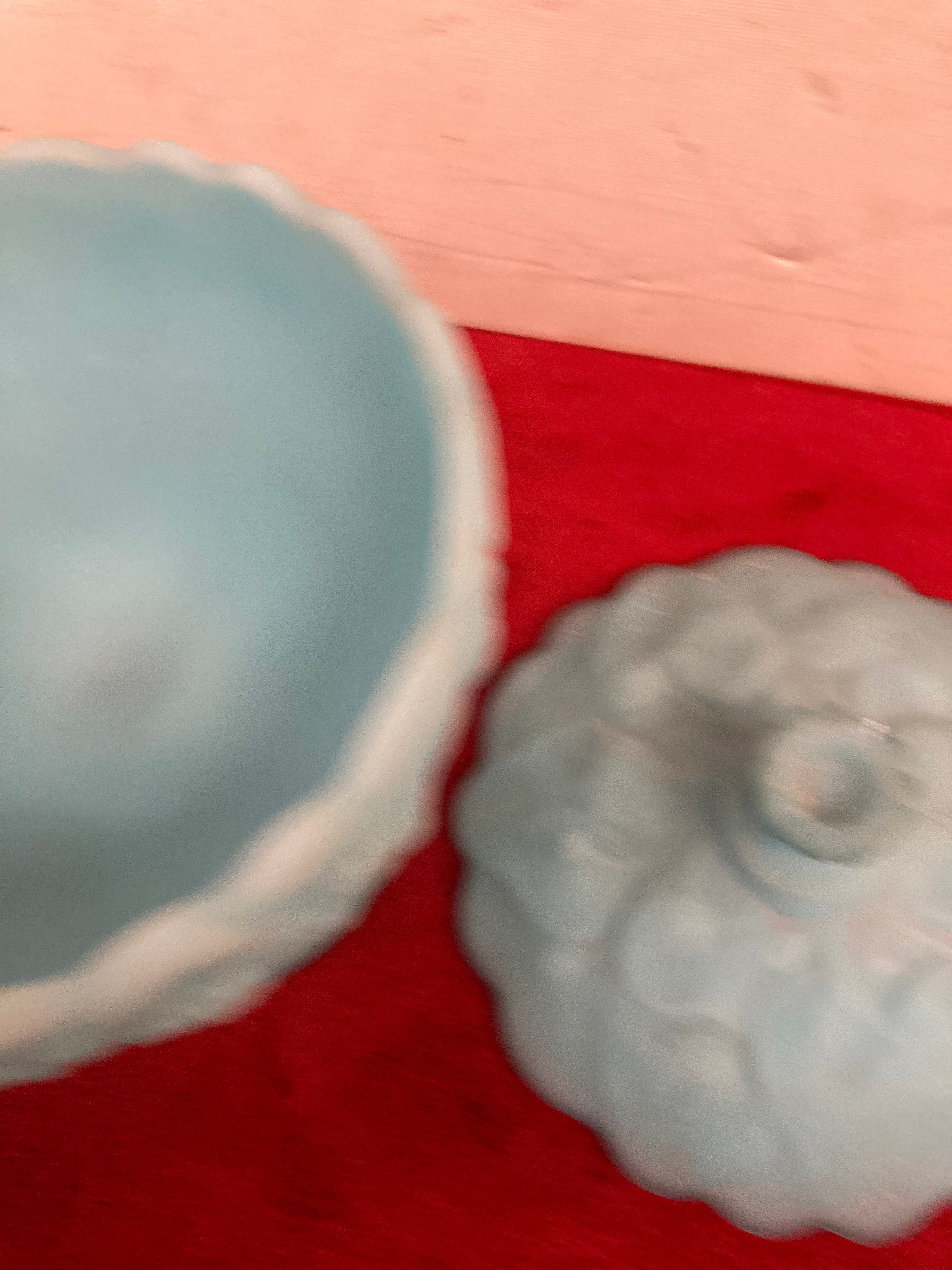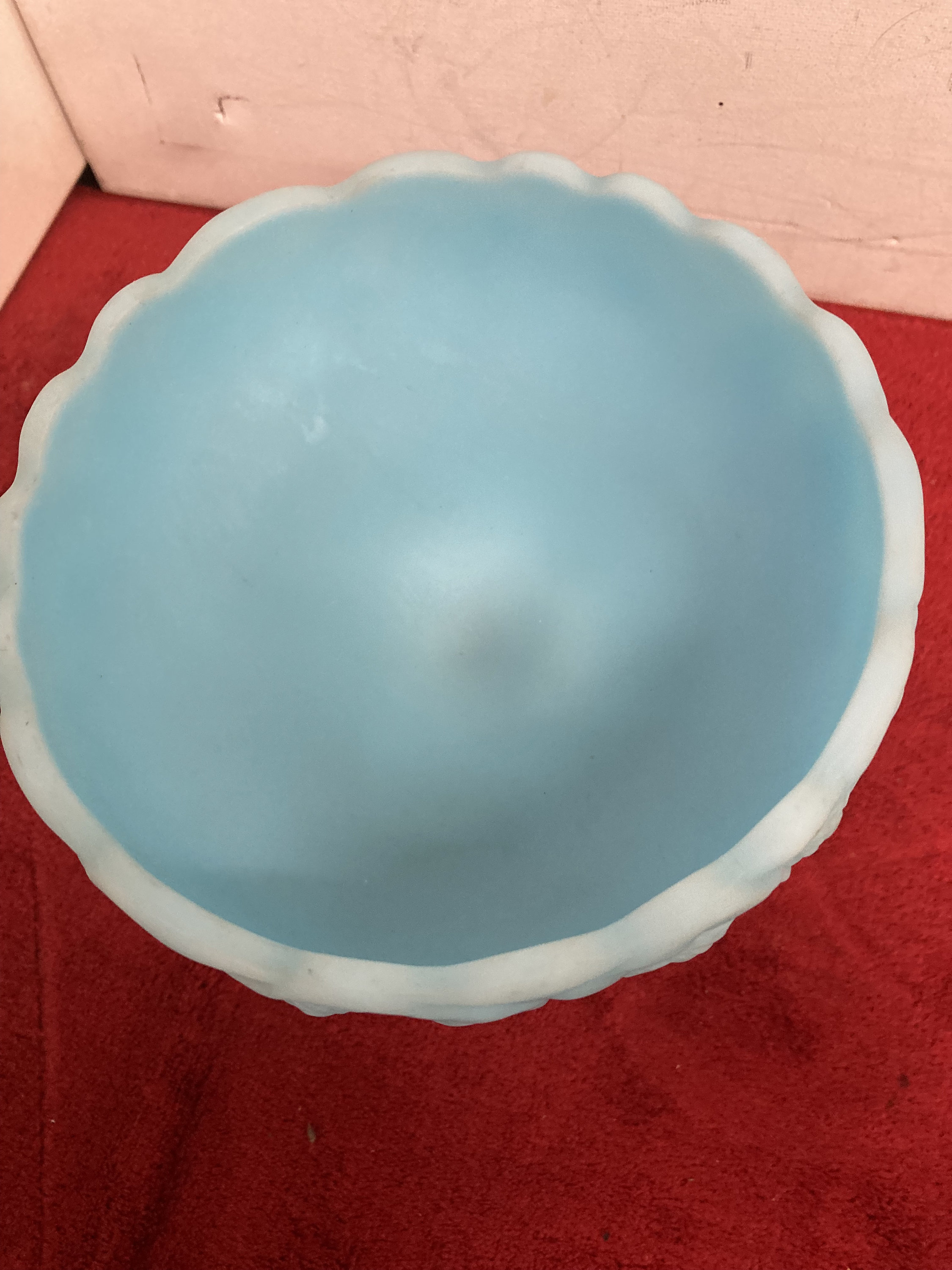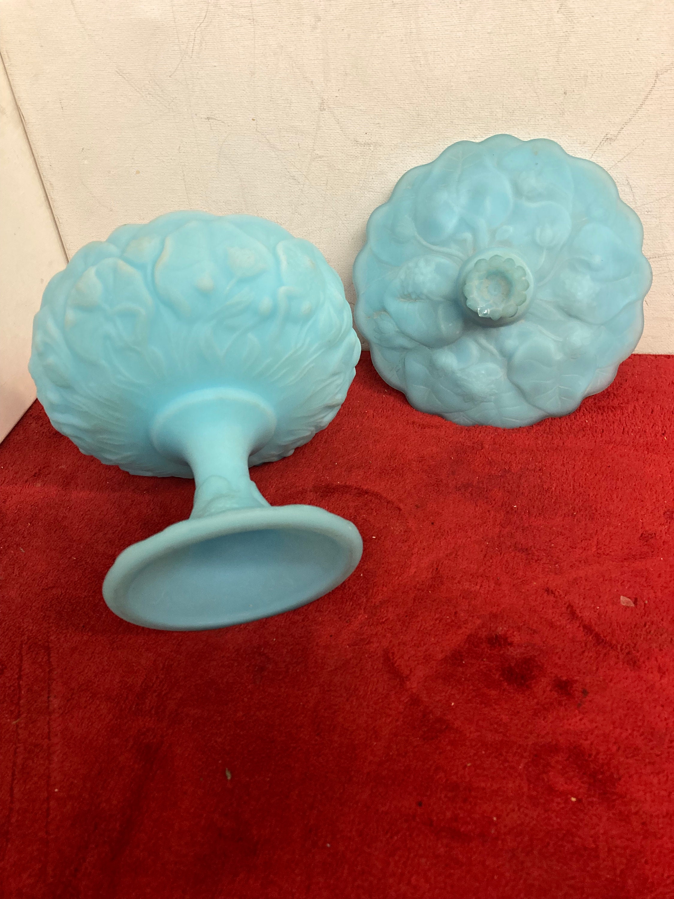 Vintage Fenton Water Lily Pedestal Covered Candy Dish Blue Rare