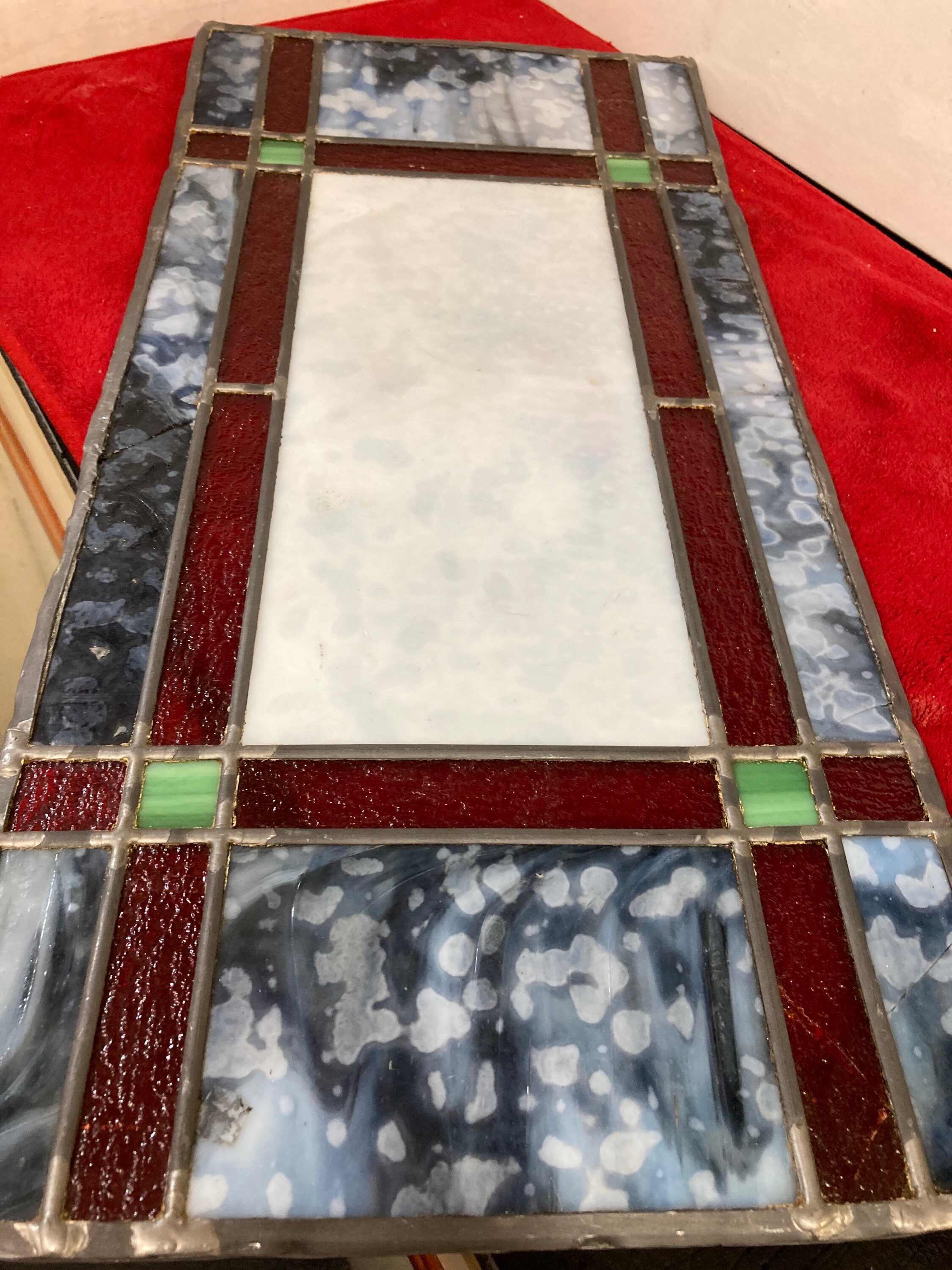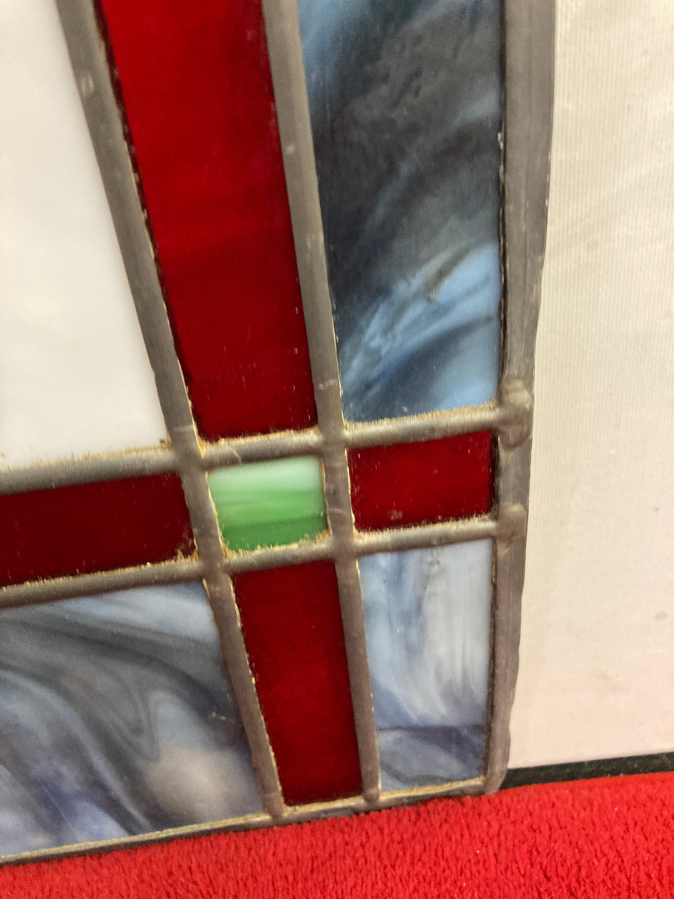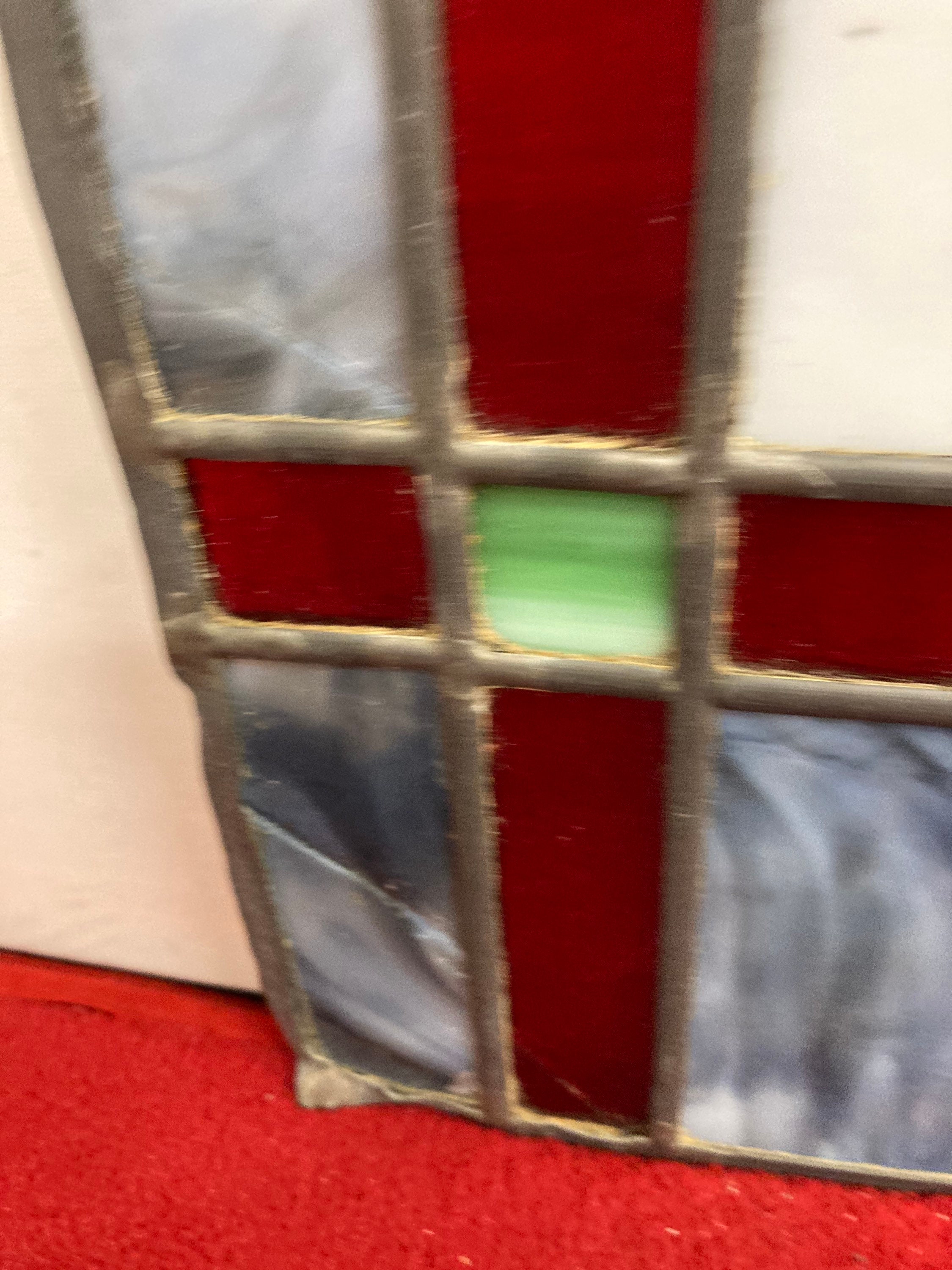 Shades of Blue and red stained glasses fitted by metal frames ,