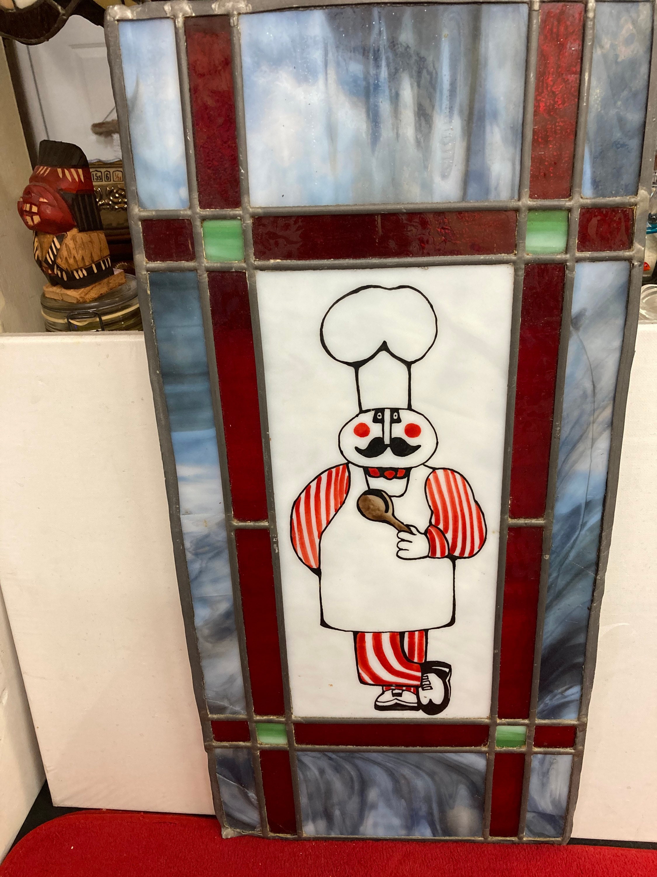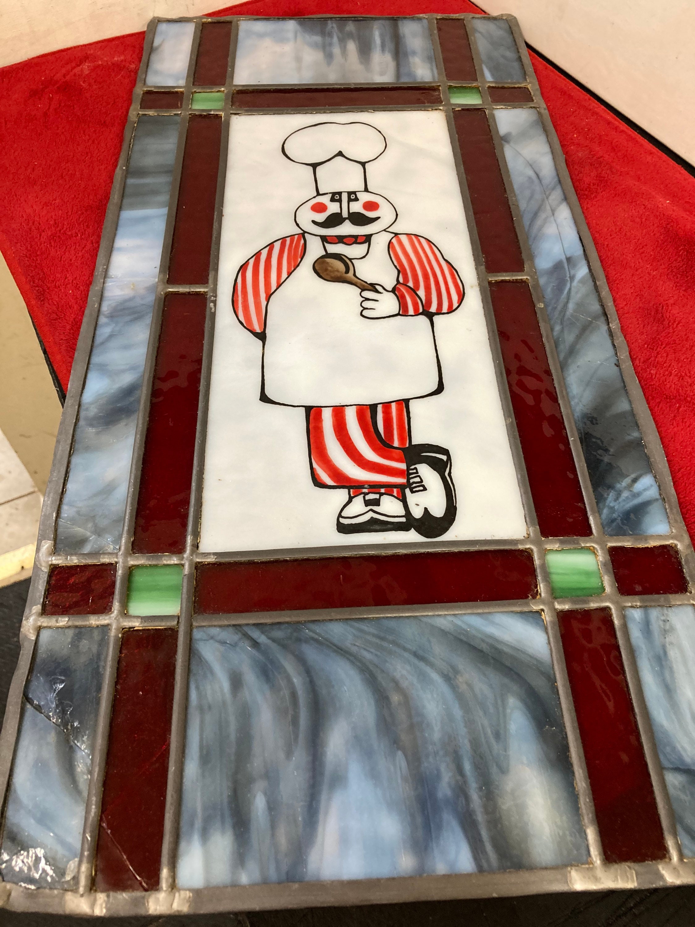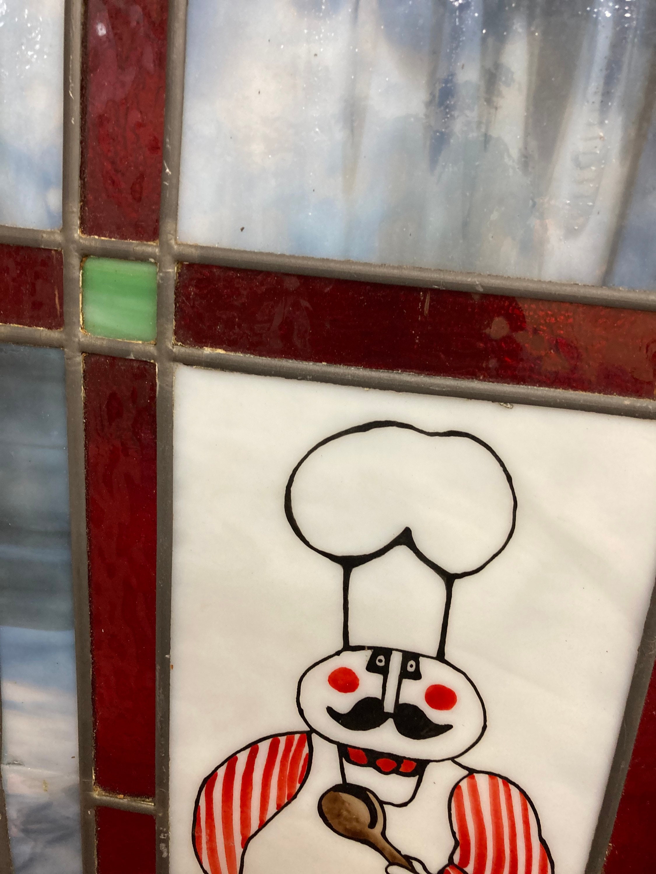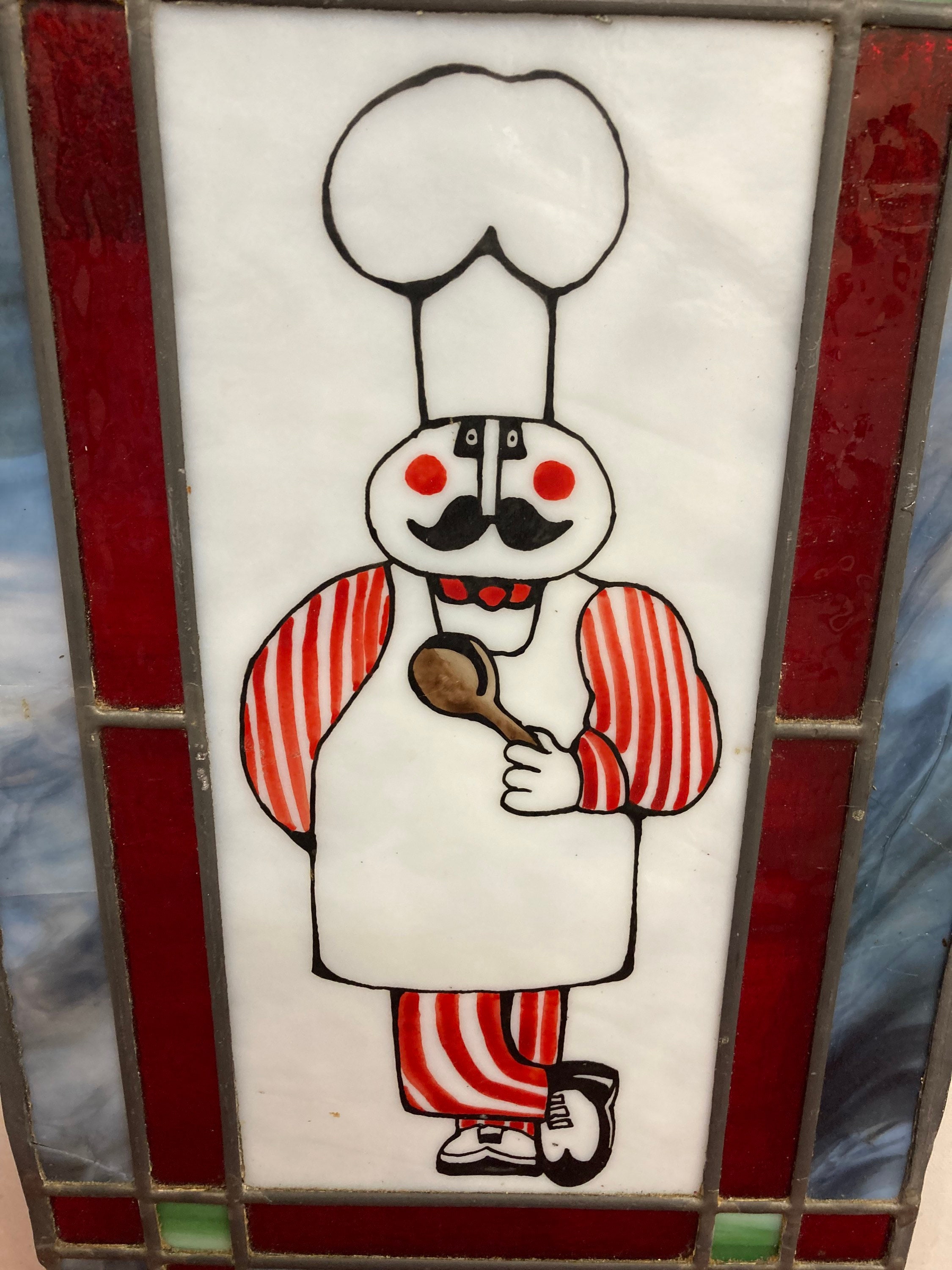Handmade and Hand Painted Multicolor Stained Glass with Painting Of A Chef