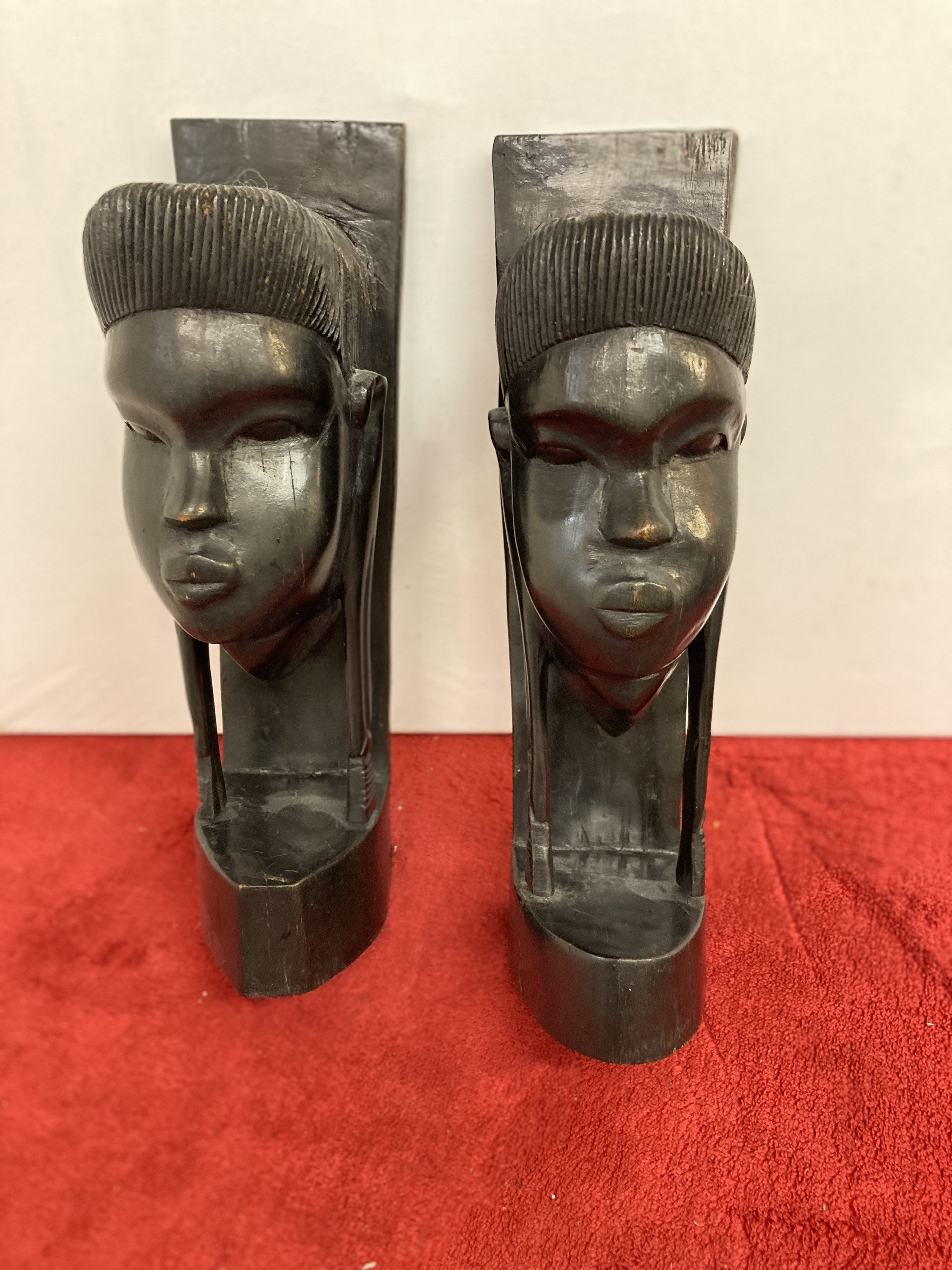 Executive Office Decor, Male Female Bust African Art Bookends,