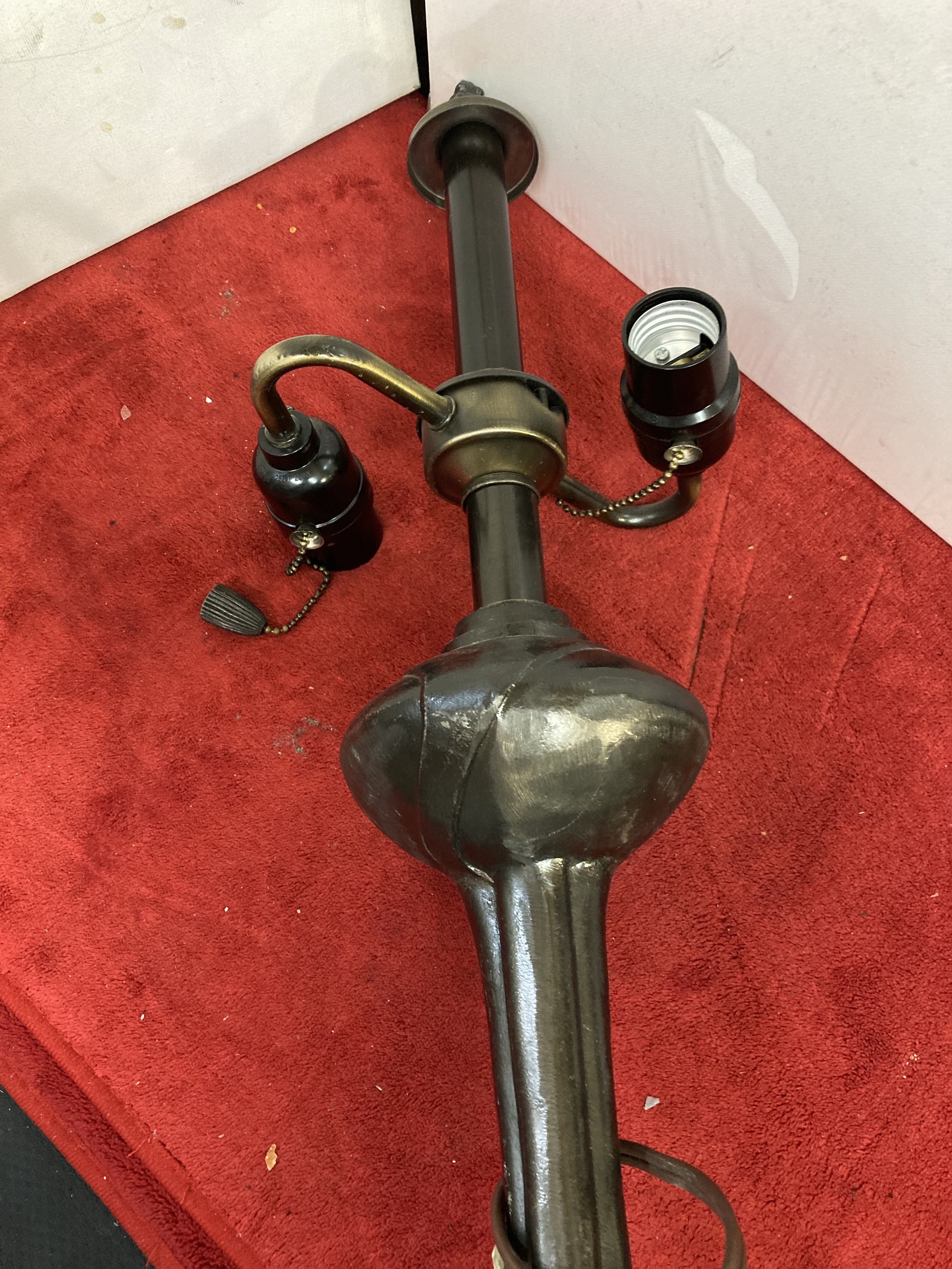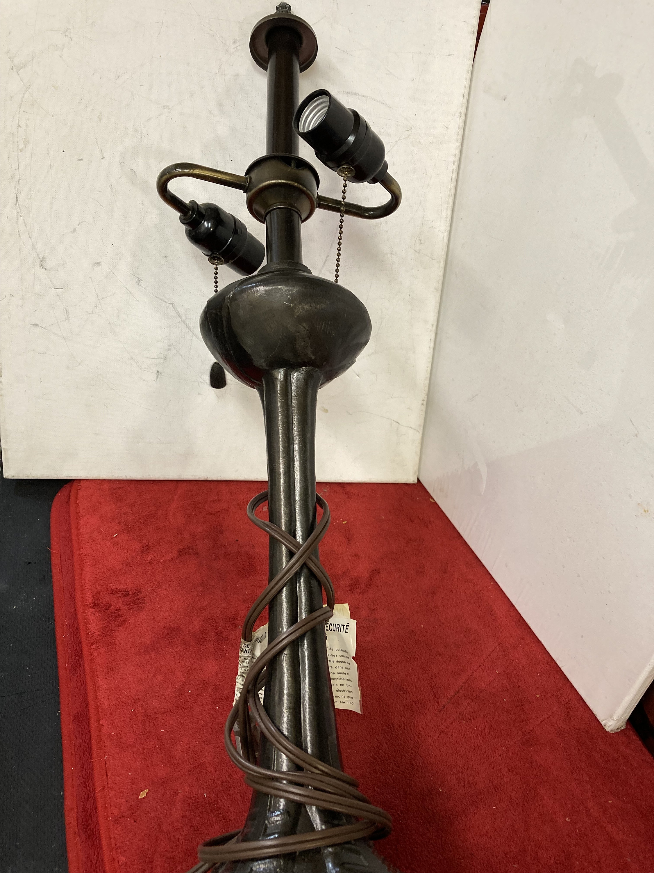 This Tiffany style Victorian design 2-light table lamp features a bronze finish that will add warmth,