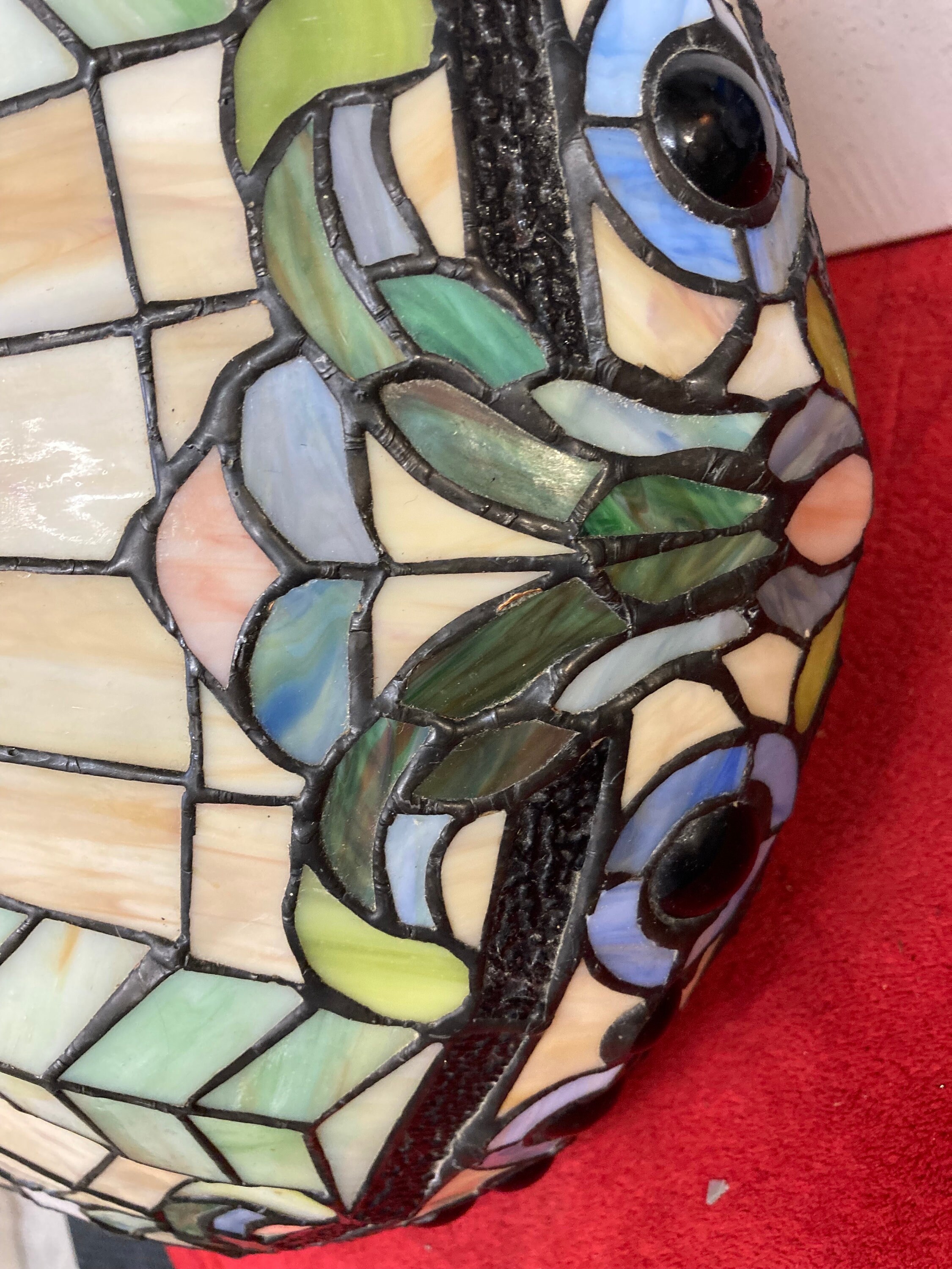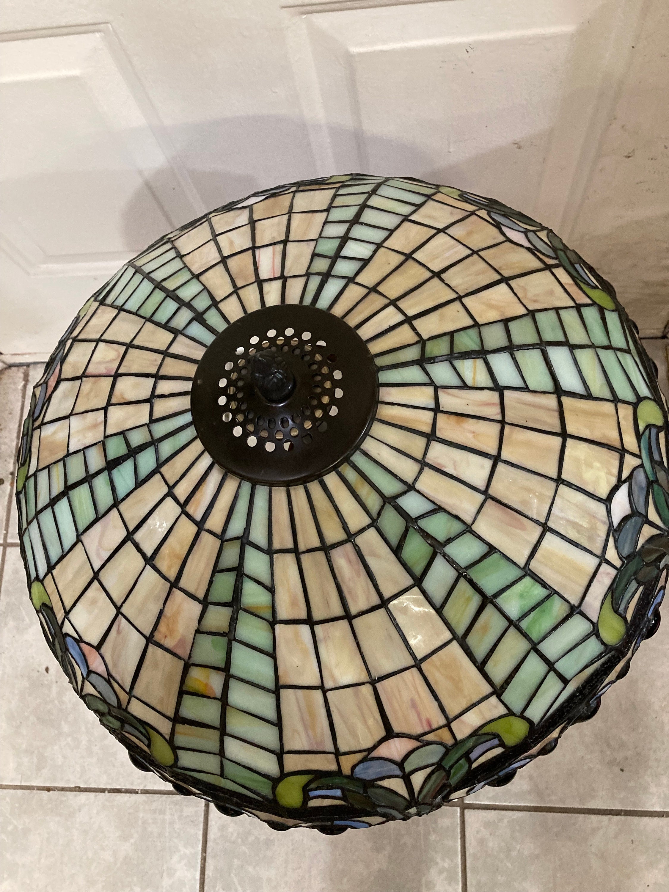 This beautiful Tiffany-style piece contains over 540 hand-cut pieces of bent art glass.
