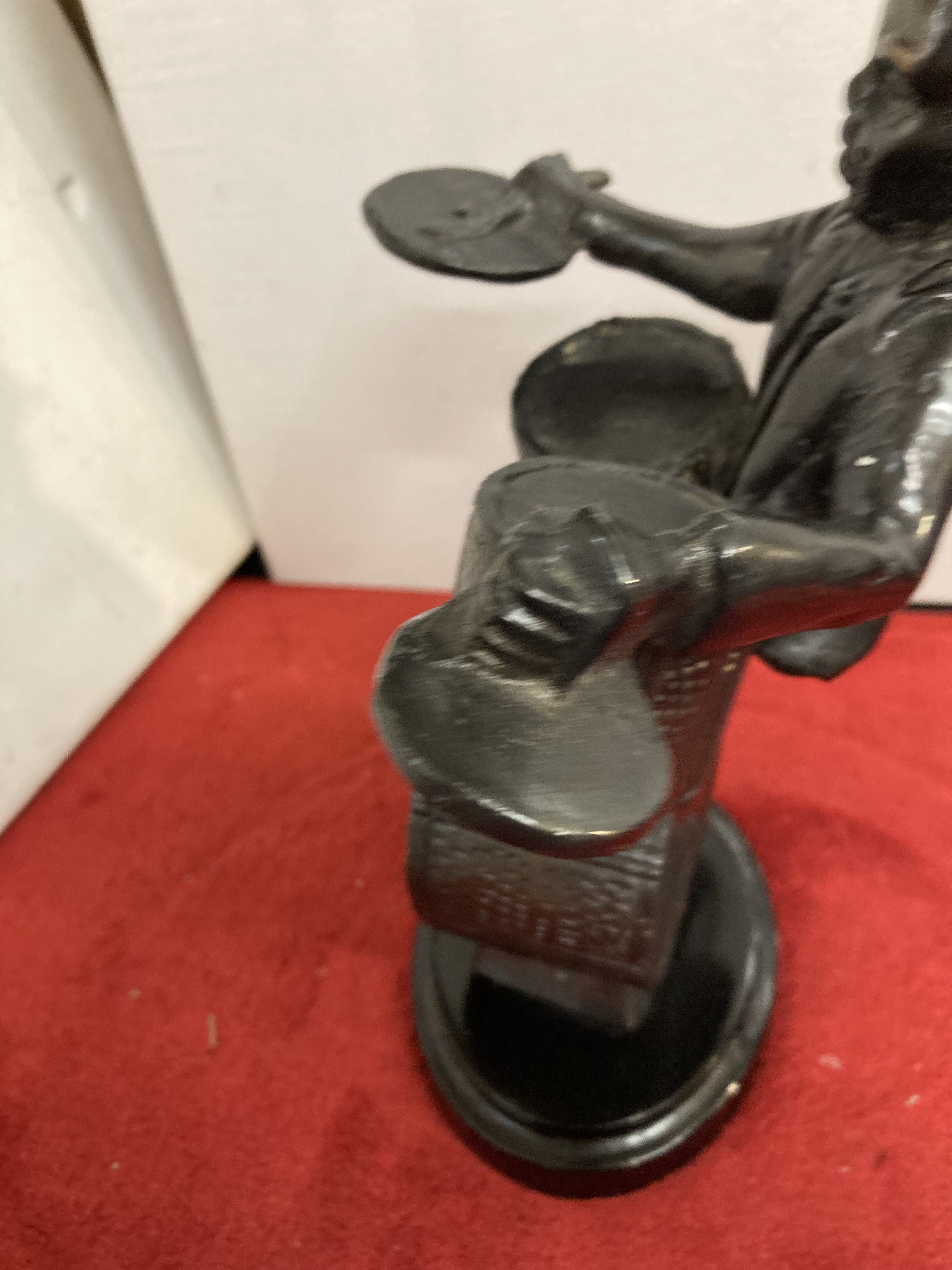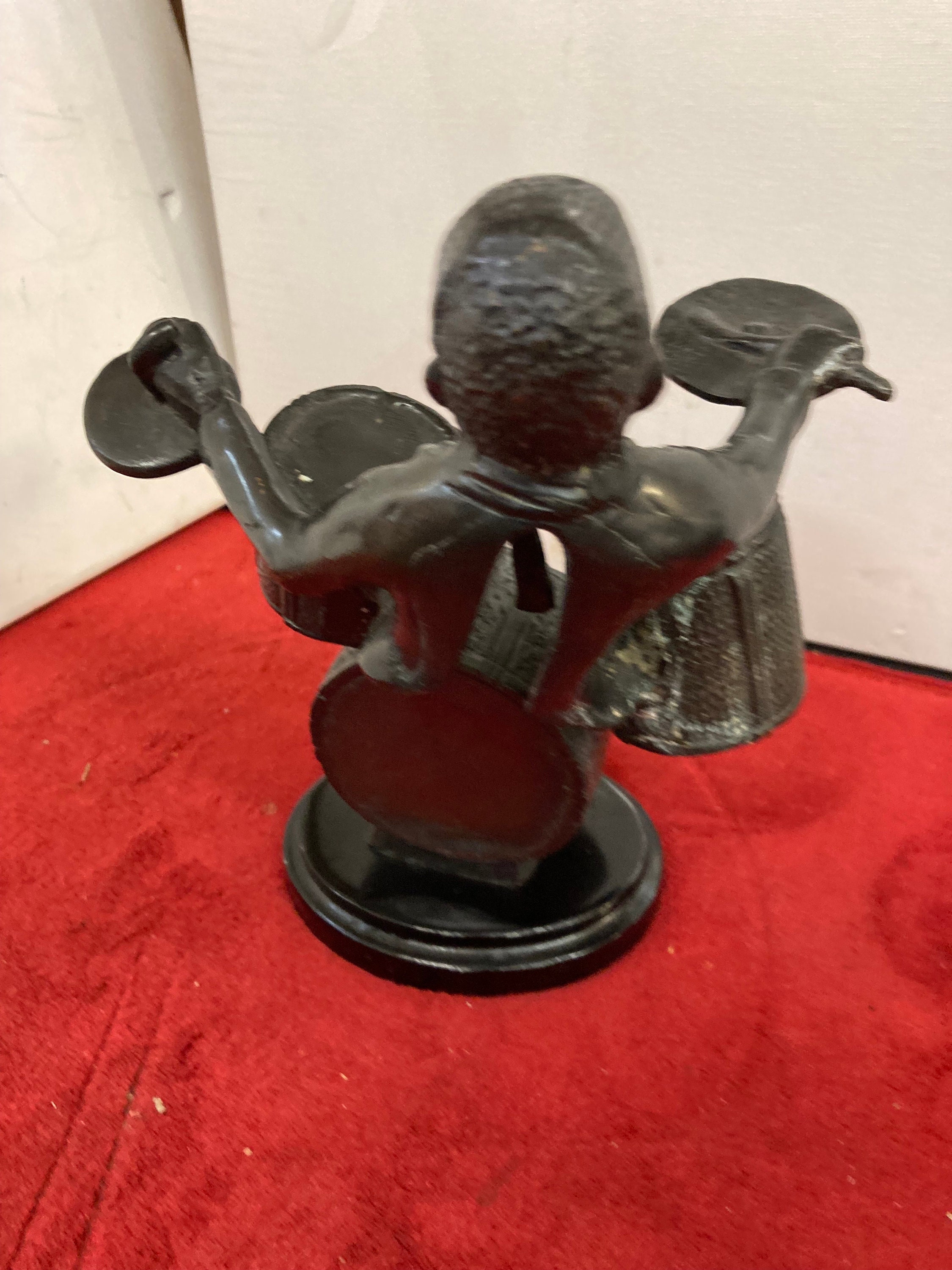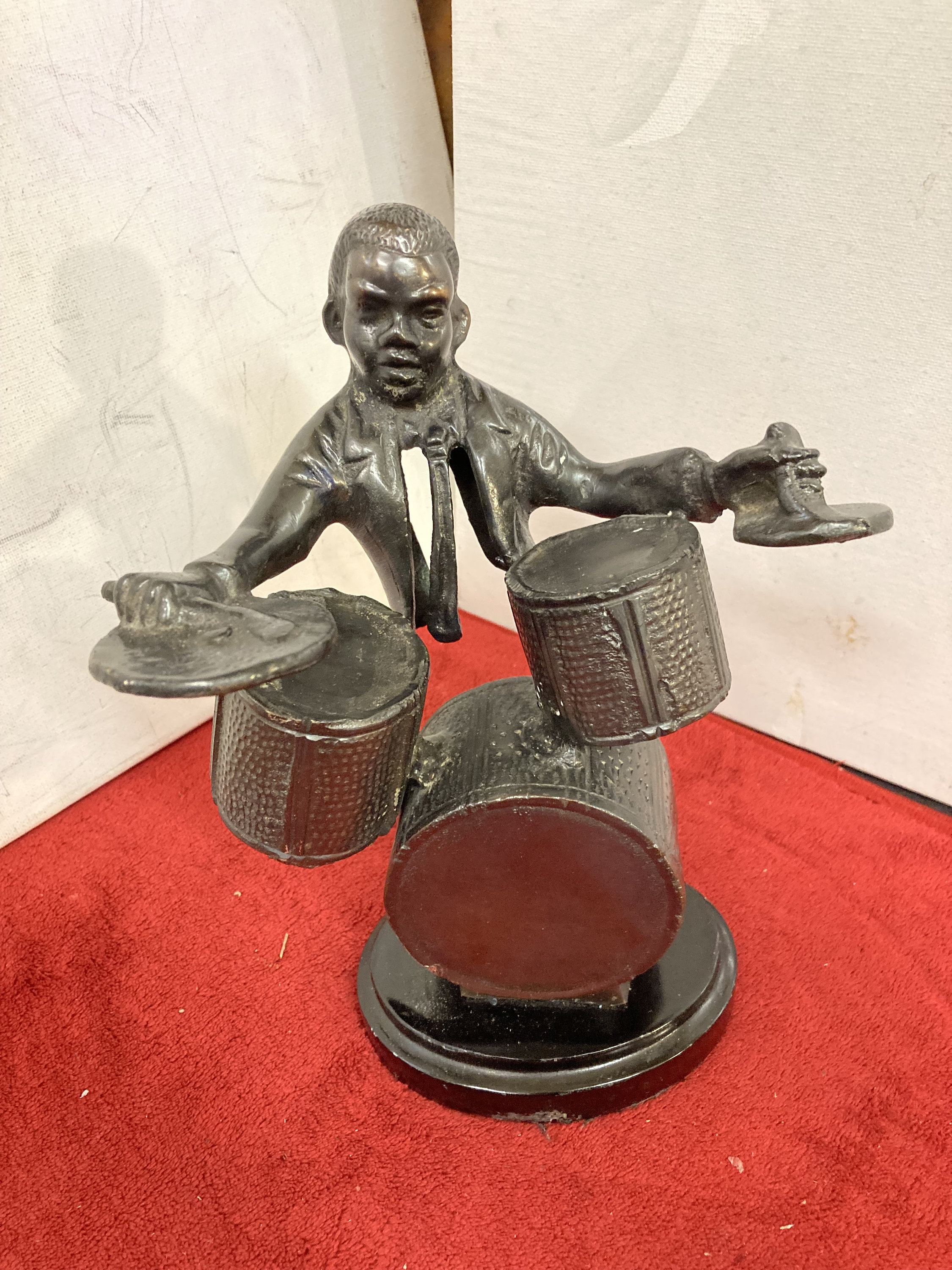 Vintage Bronze Jazz Band Drummer Musician Statue Marble Base