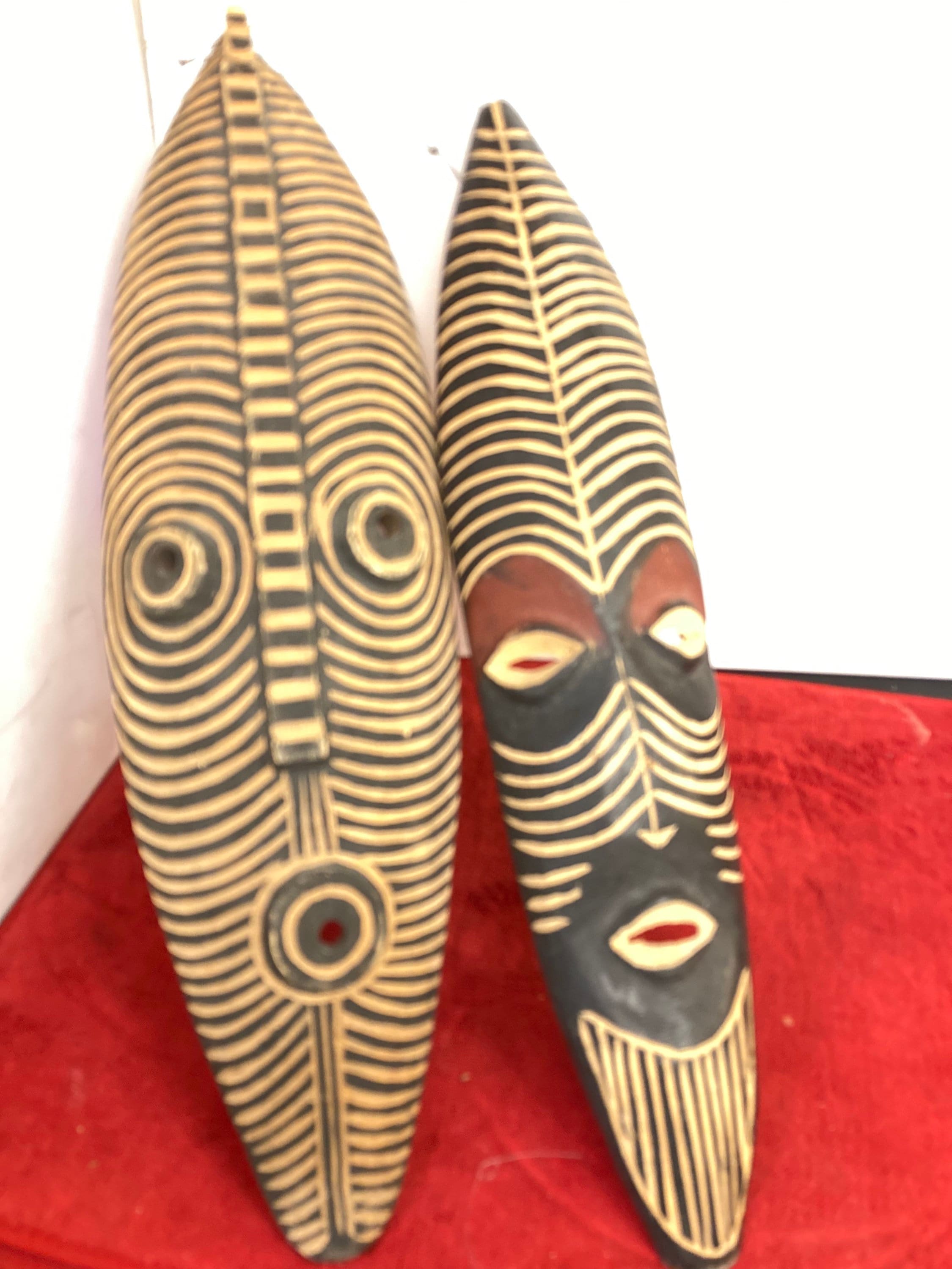 One mask is approximately 21.5 inches high, 6 inches wide at the top, and 2.5 inches deep.