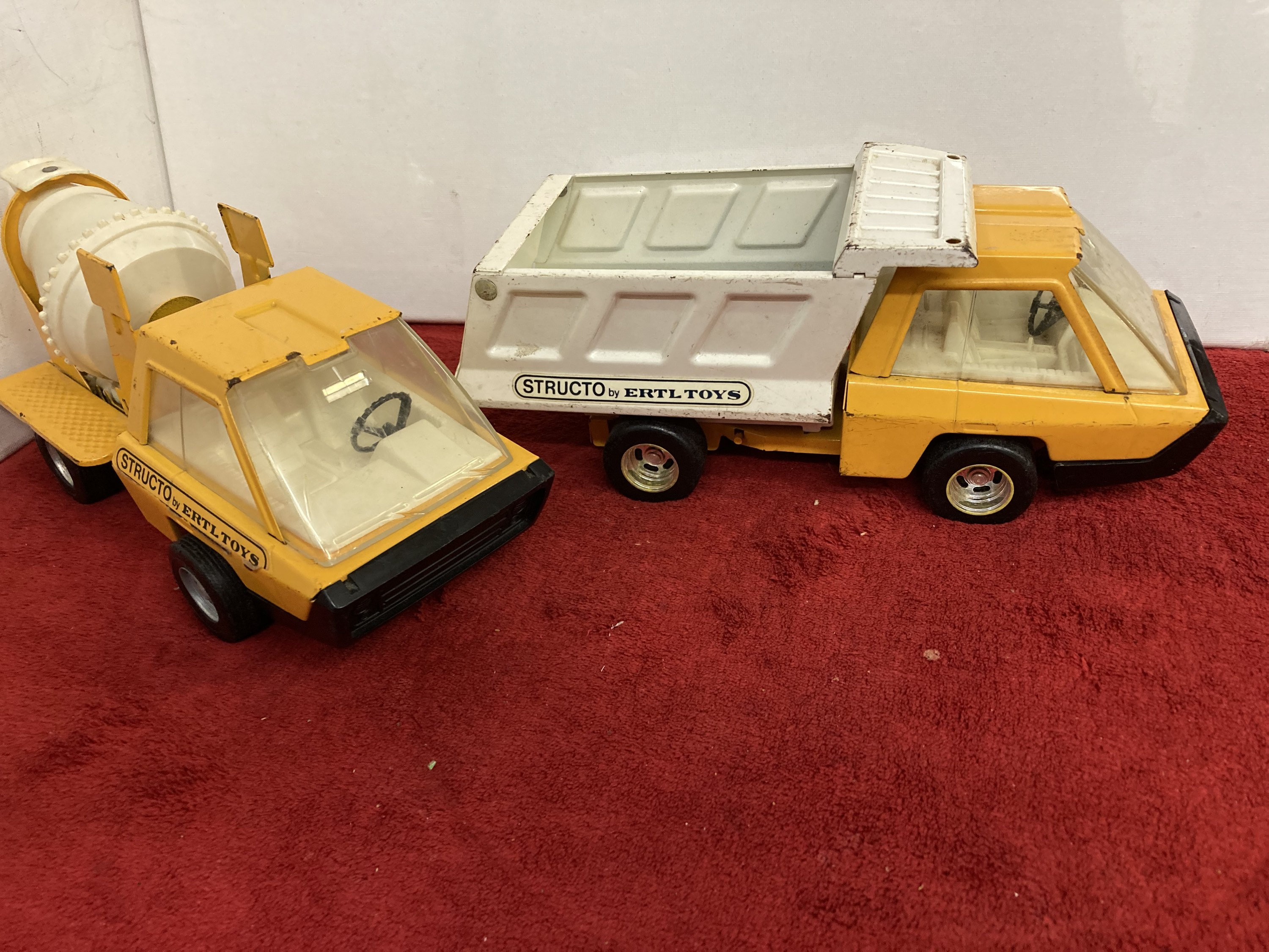 2 Vintage STRUCTO Yellow and White Dump Trucks 1960's by Ertl Toys PRESSED STEEL