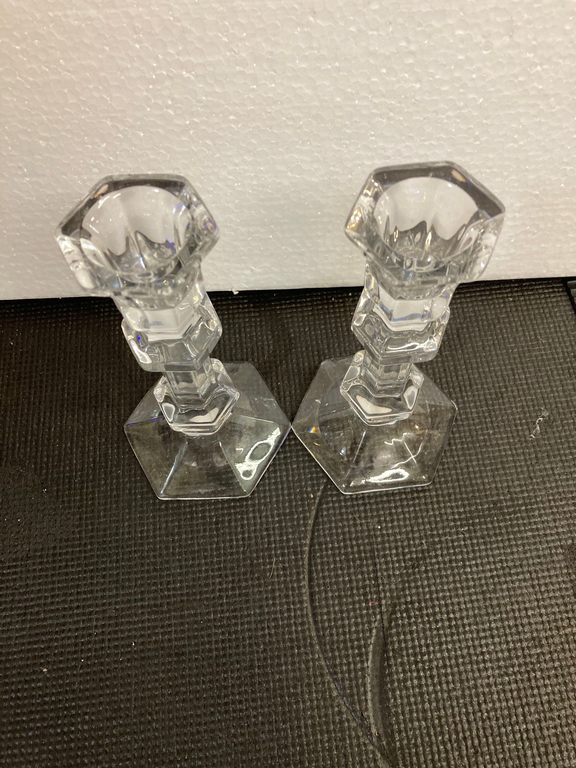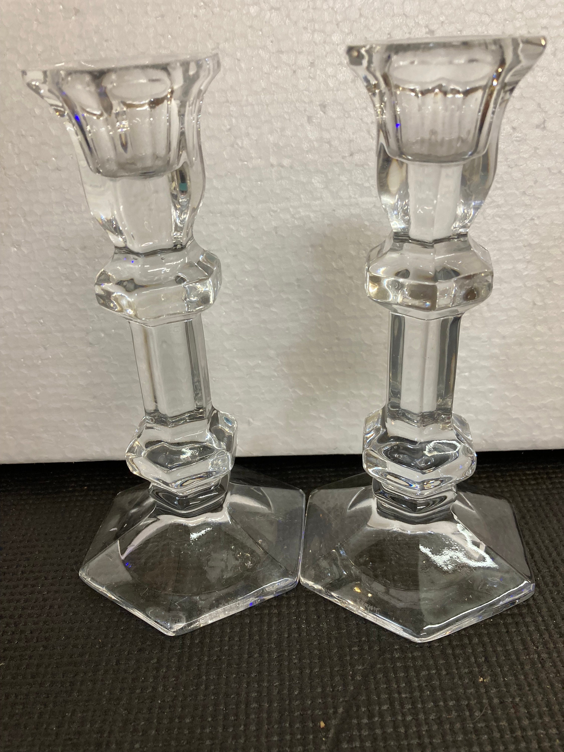 Set of Vintage VAL ST LAMBERT Single Light Candlestick Gardenia