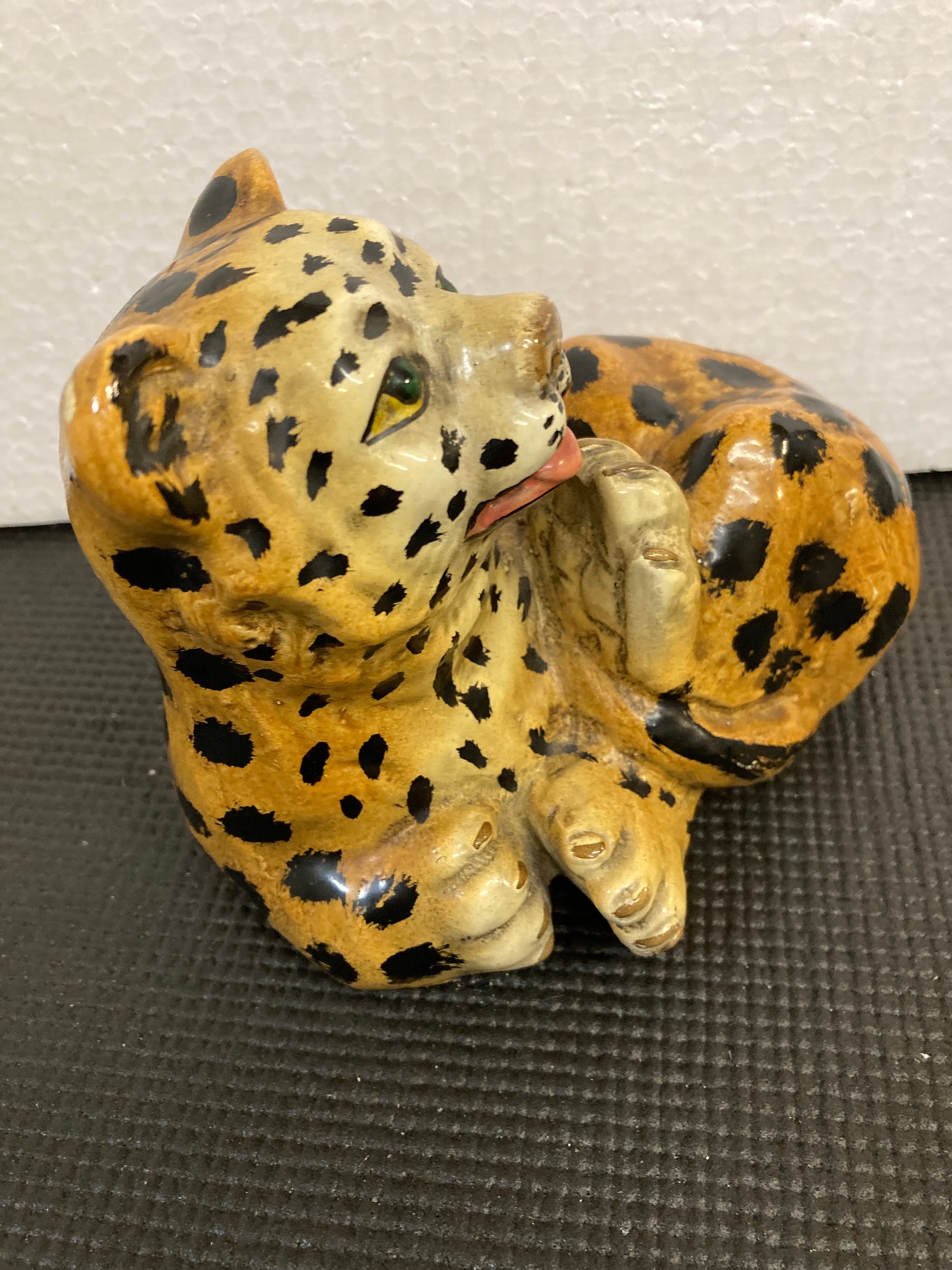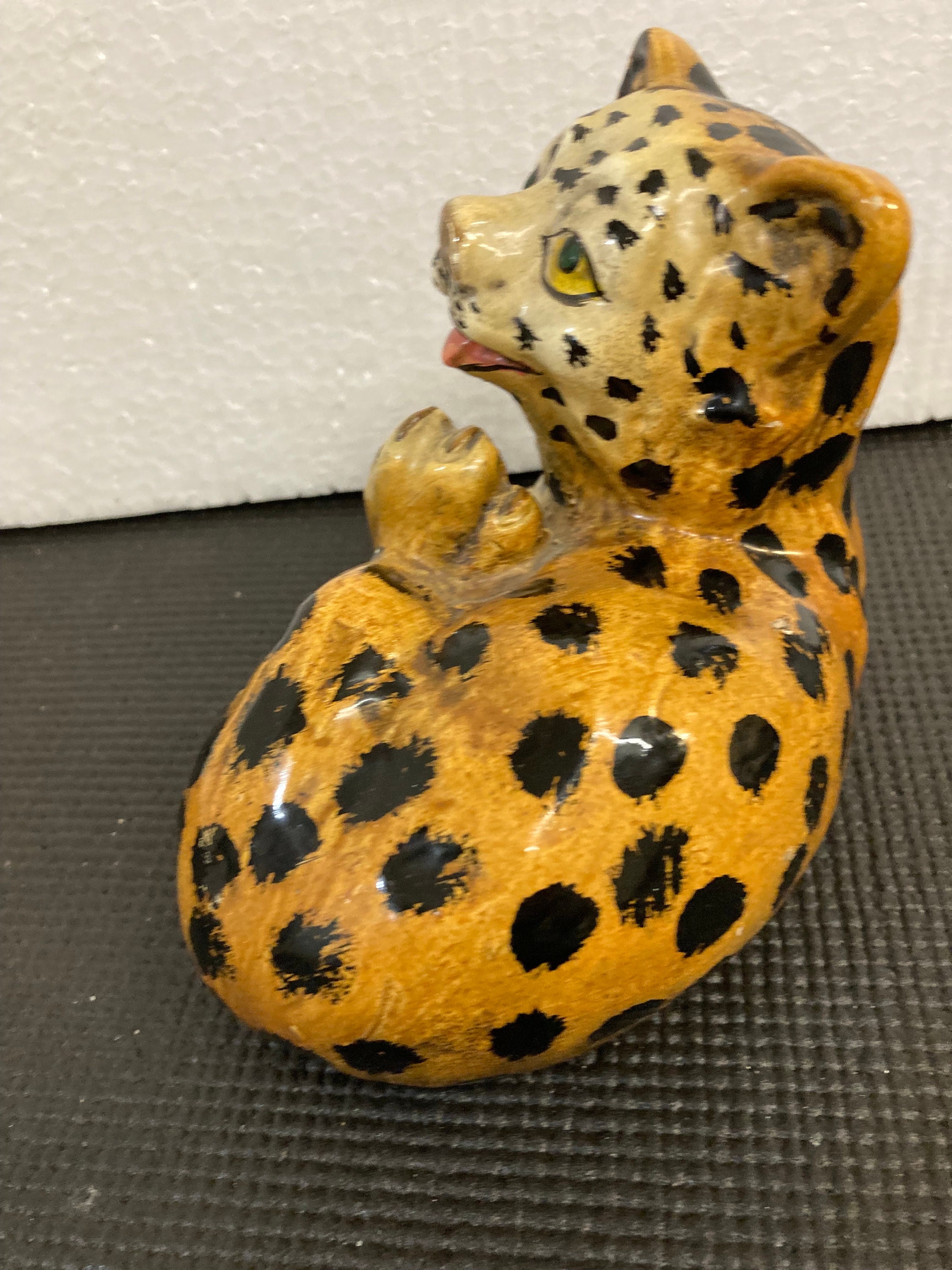 Vintage Ceramic Clay Leopard Jaguar Statue Figurine Sculpture Italy Or Portugal