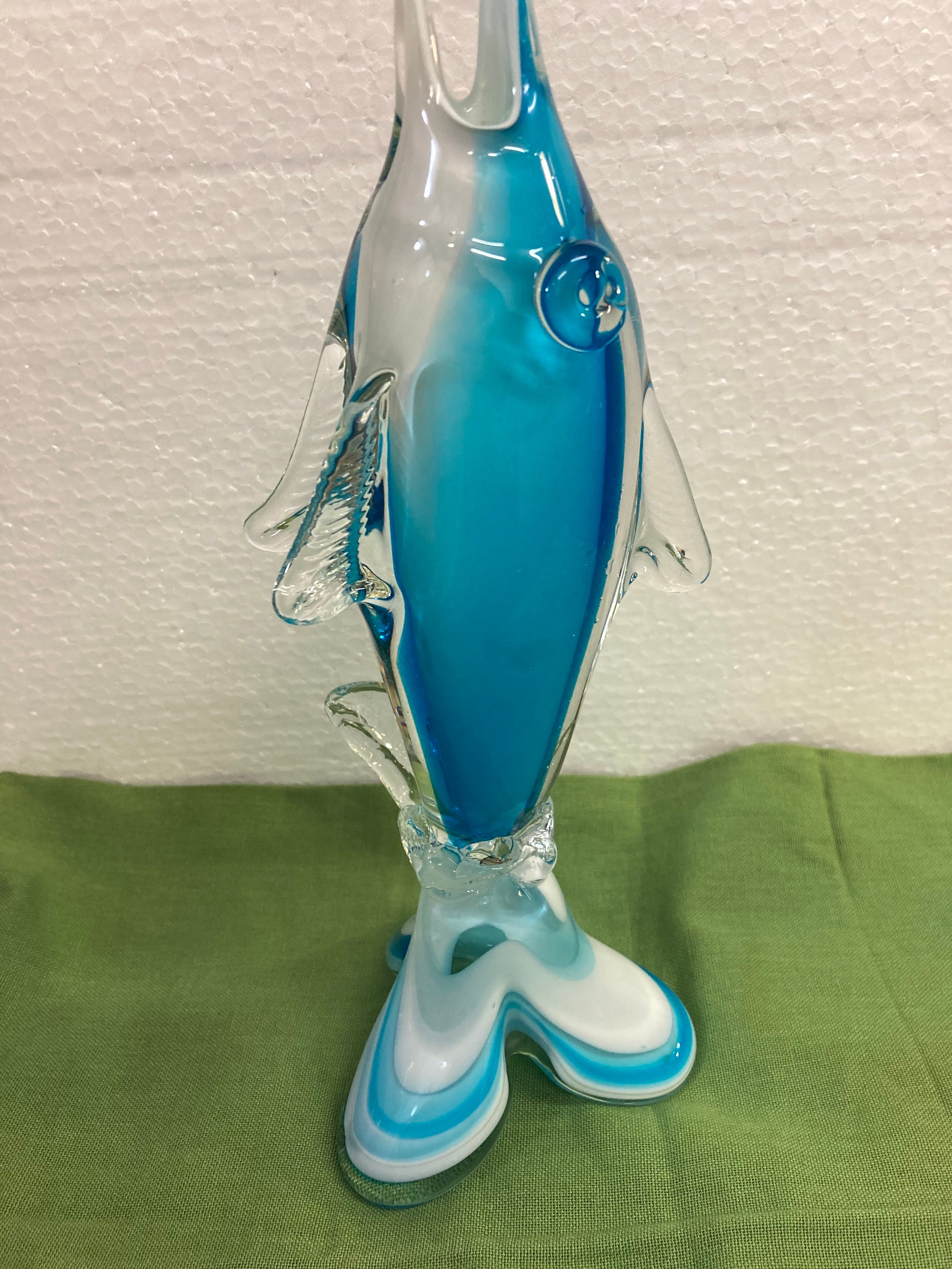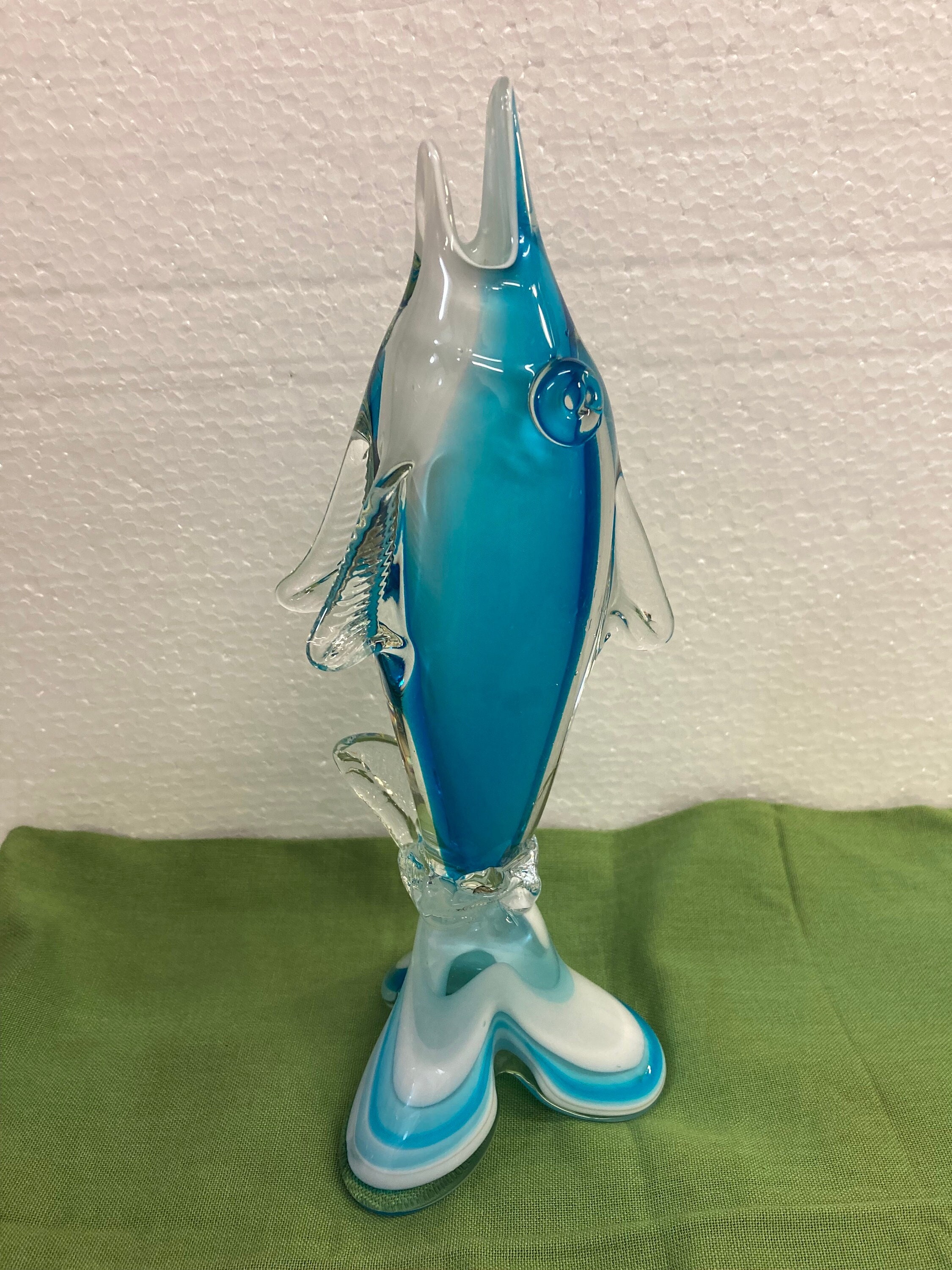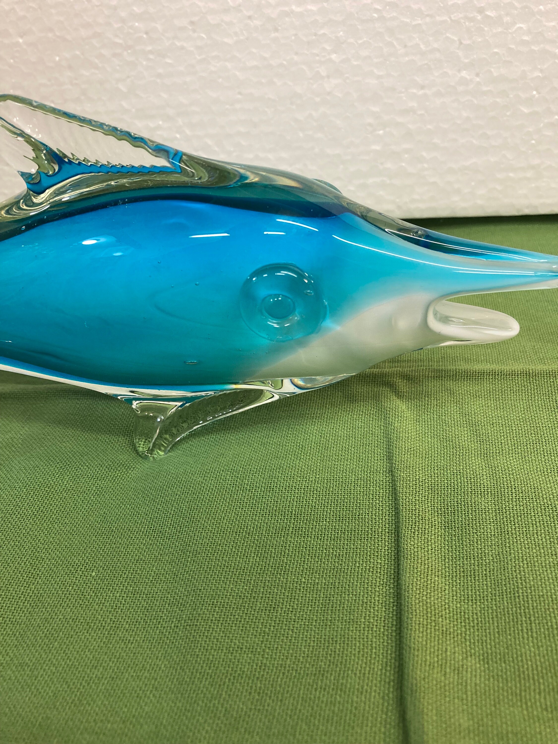 Blue,White & Clear Art Glass Dolphin / Swordfish,Unmarked In very good condition with no chips or cracks.Weight 2 .25 lbsSailfish is 11 inches tall by 4 inches wide by 3.5 inches deep.No identifying marks.