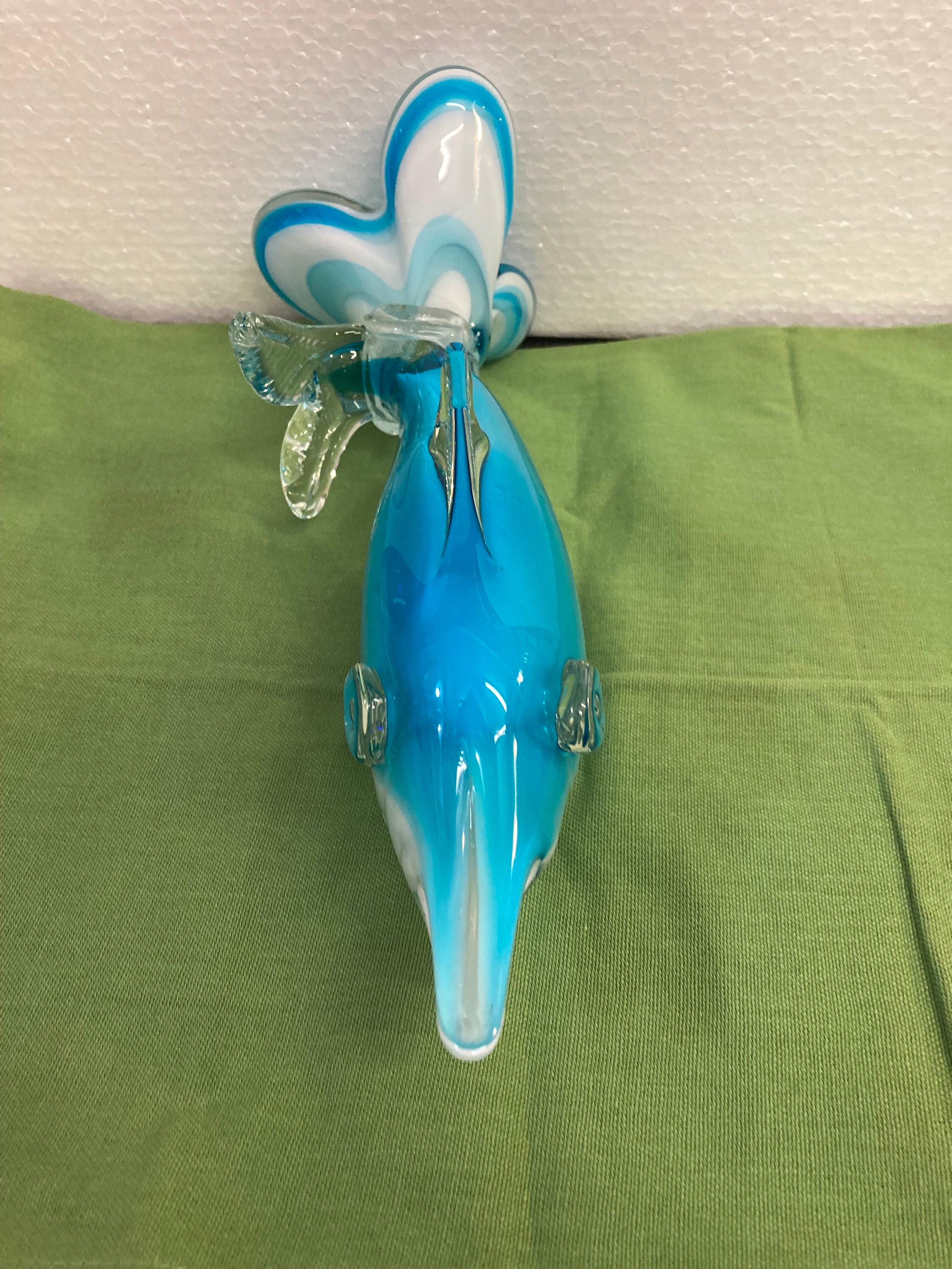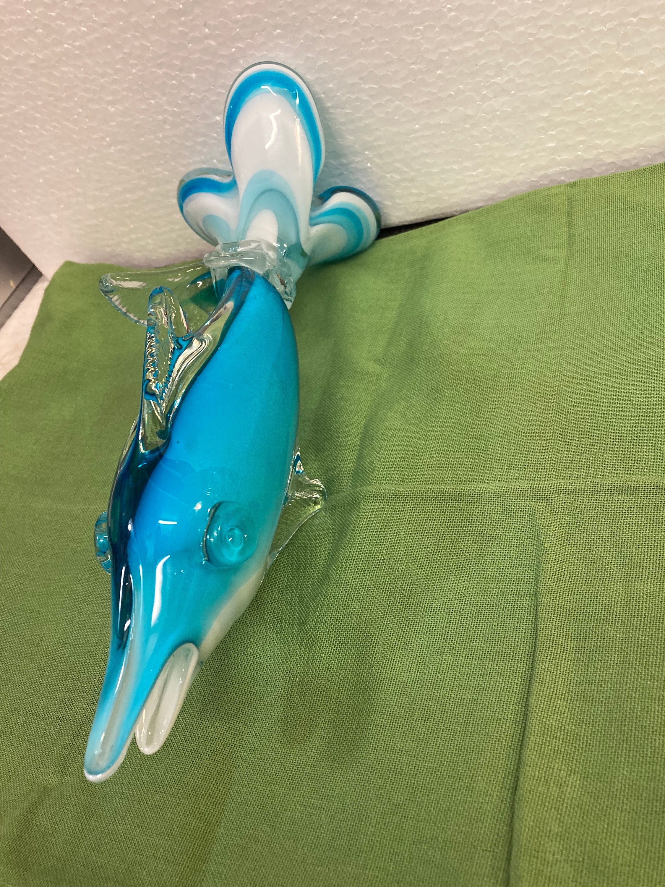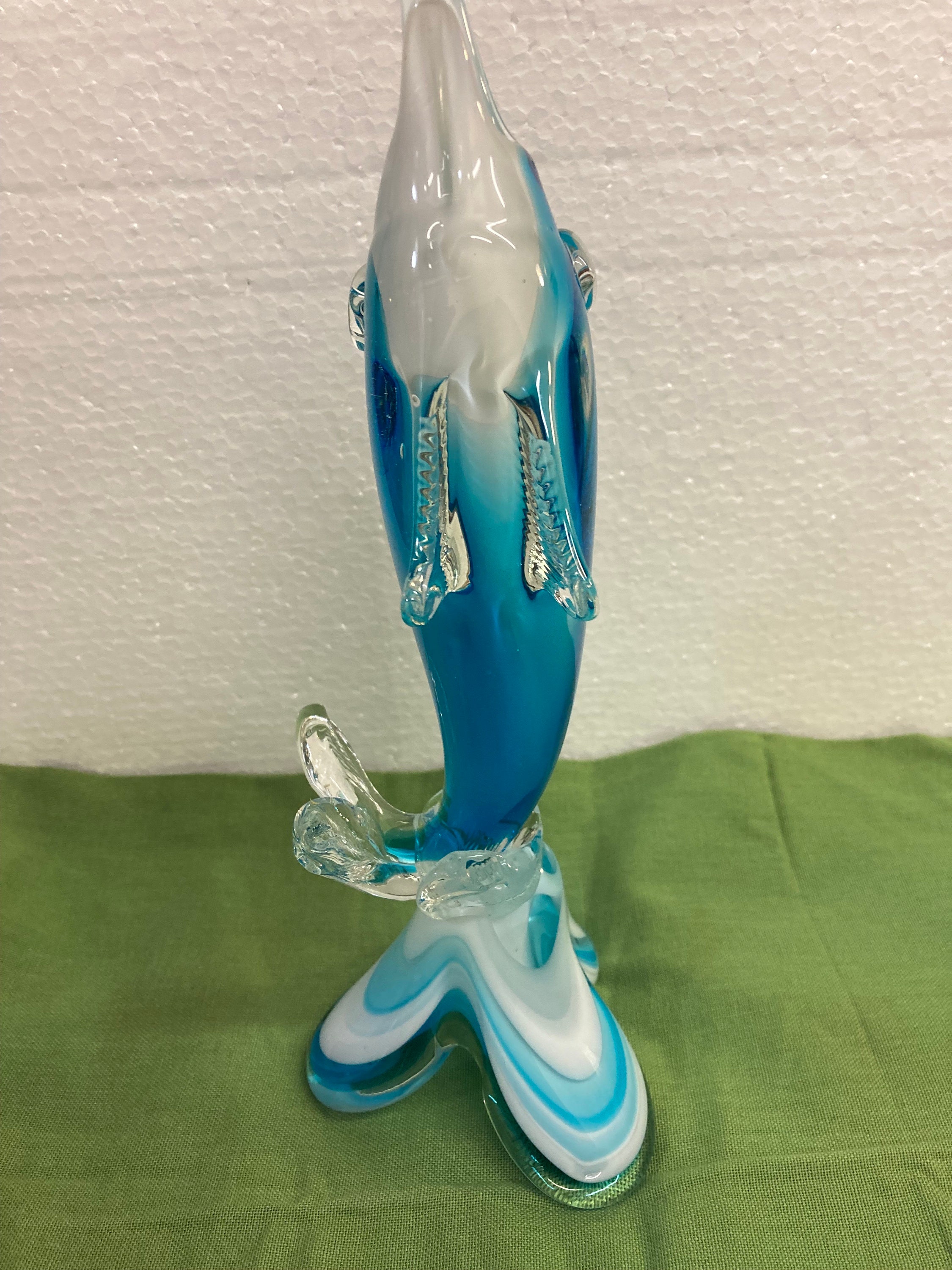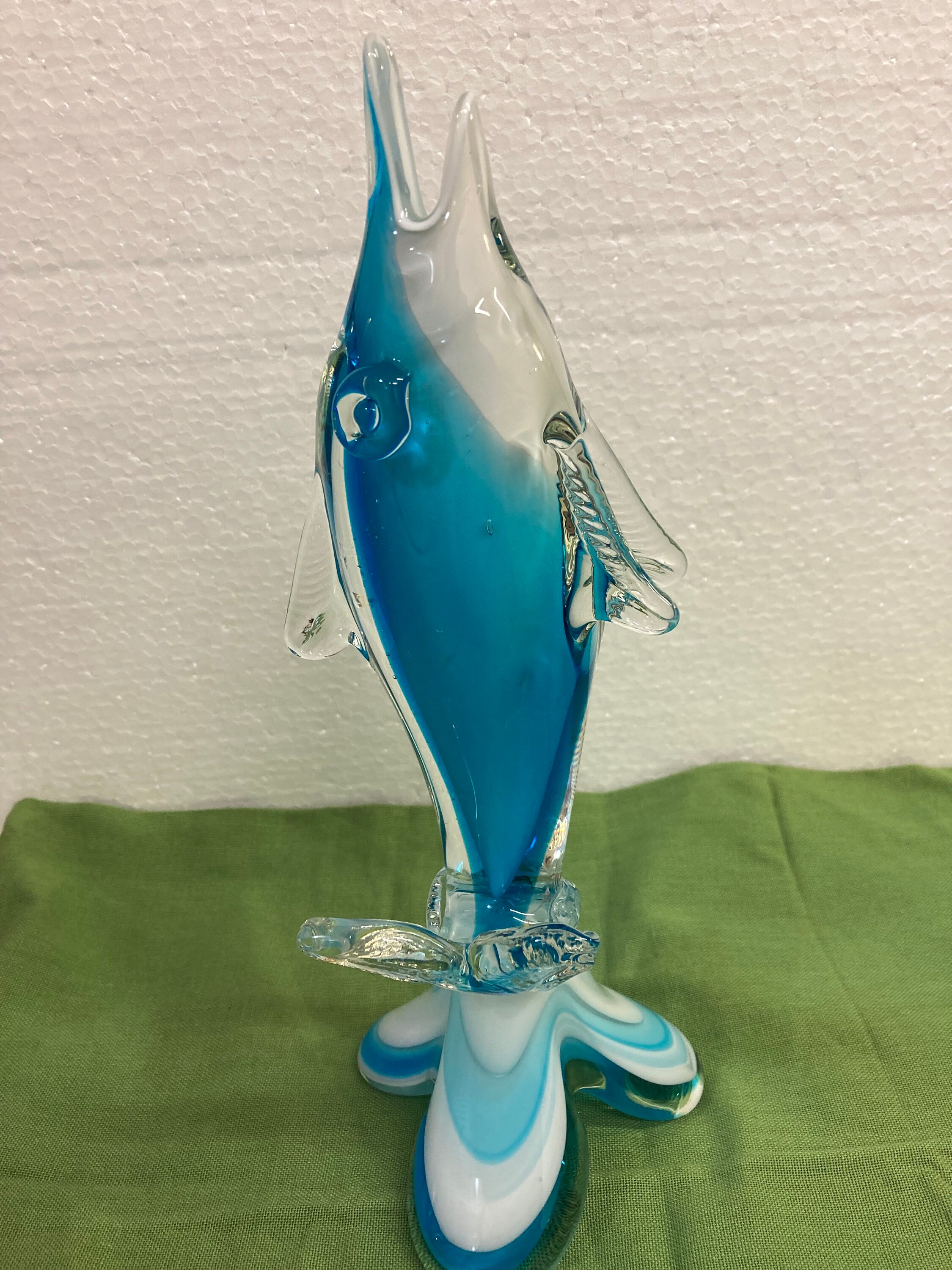Blue,White & Clear Art Glass Dolphin / Swordfish,Unmarked In very good condition with no chips or cracks.Weight 2 .25 lbsSailfish is 11 inches tall by 4 inches wide by 3.5 inches deep.No identifying marks.