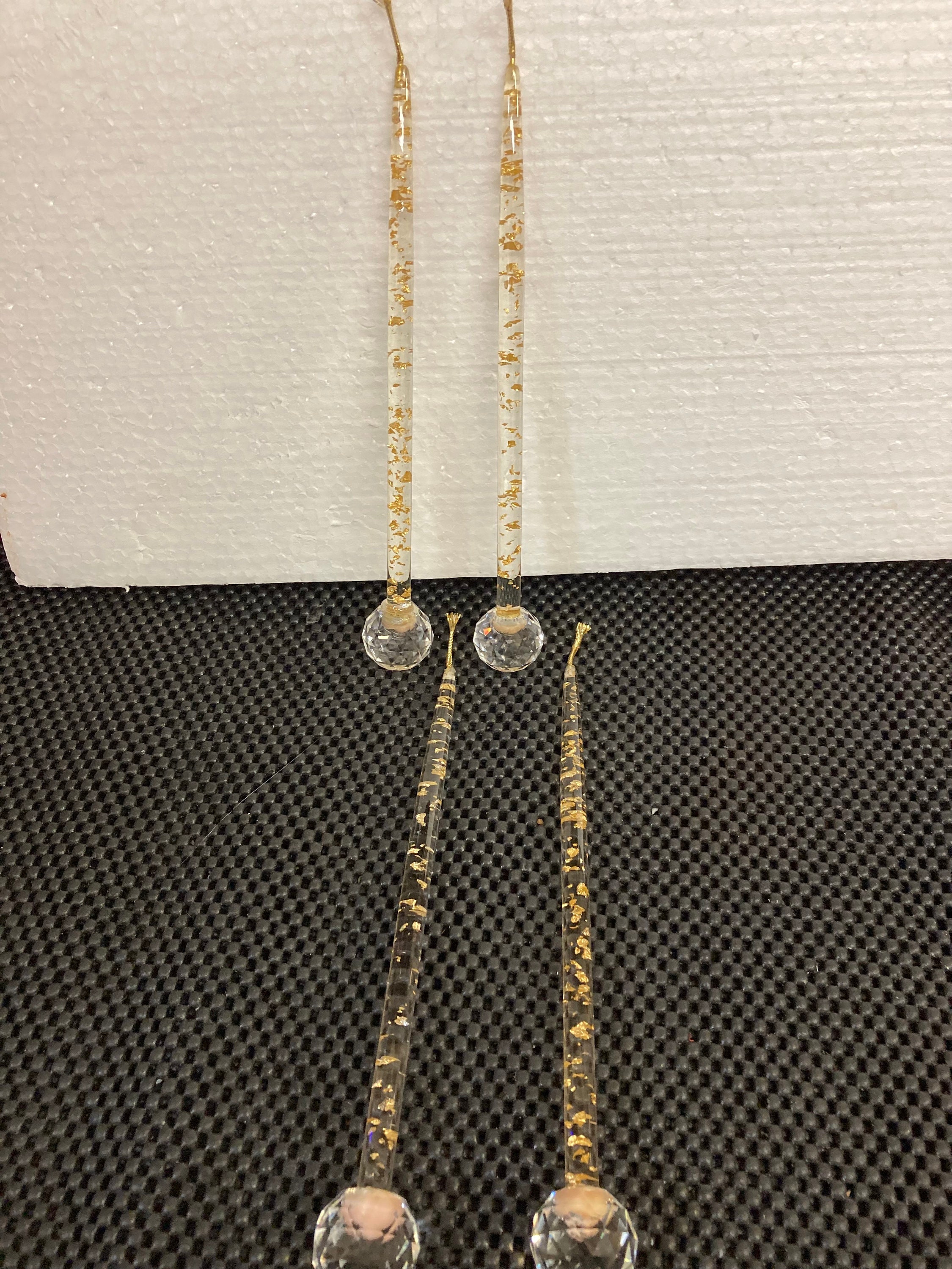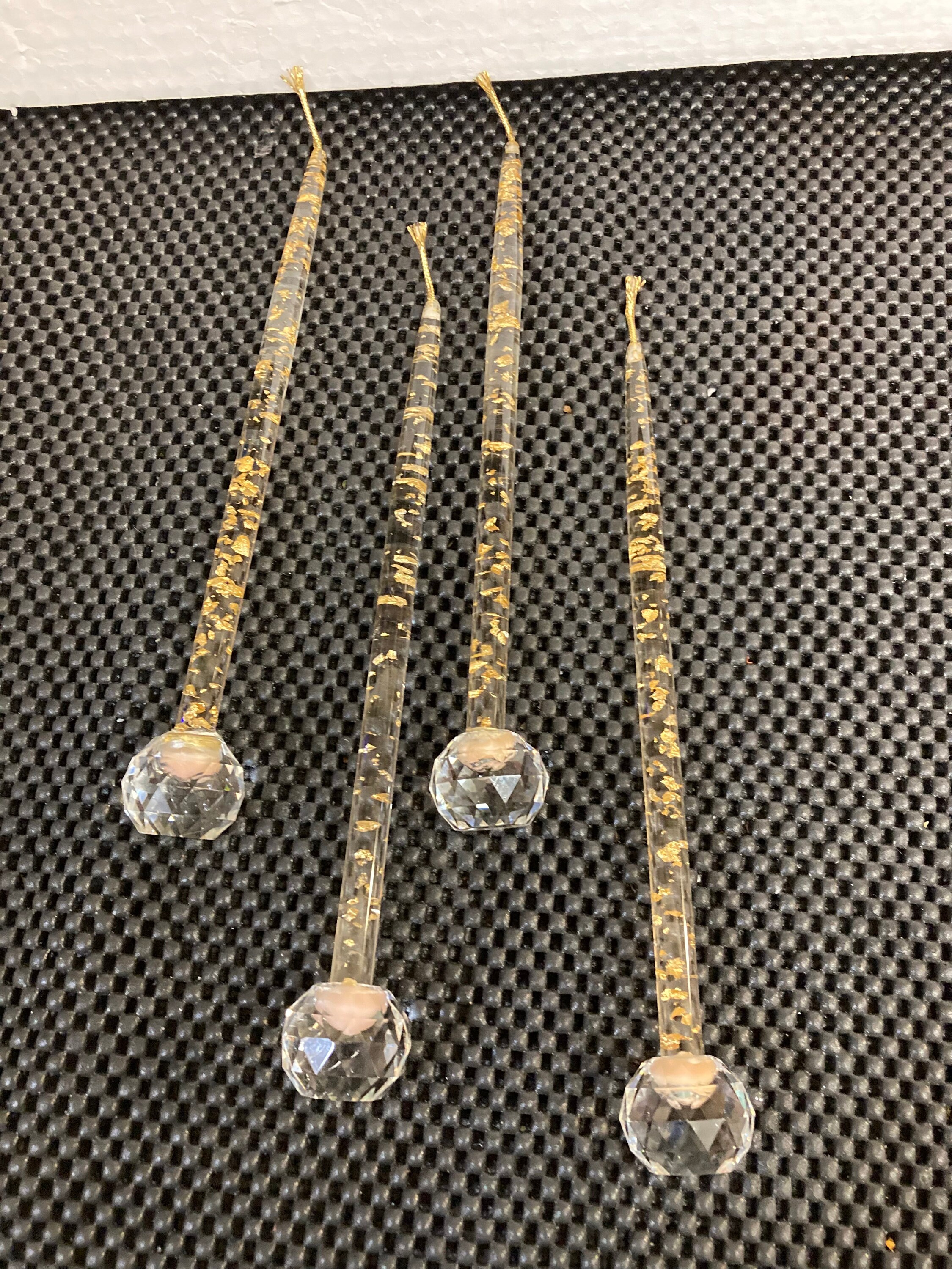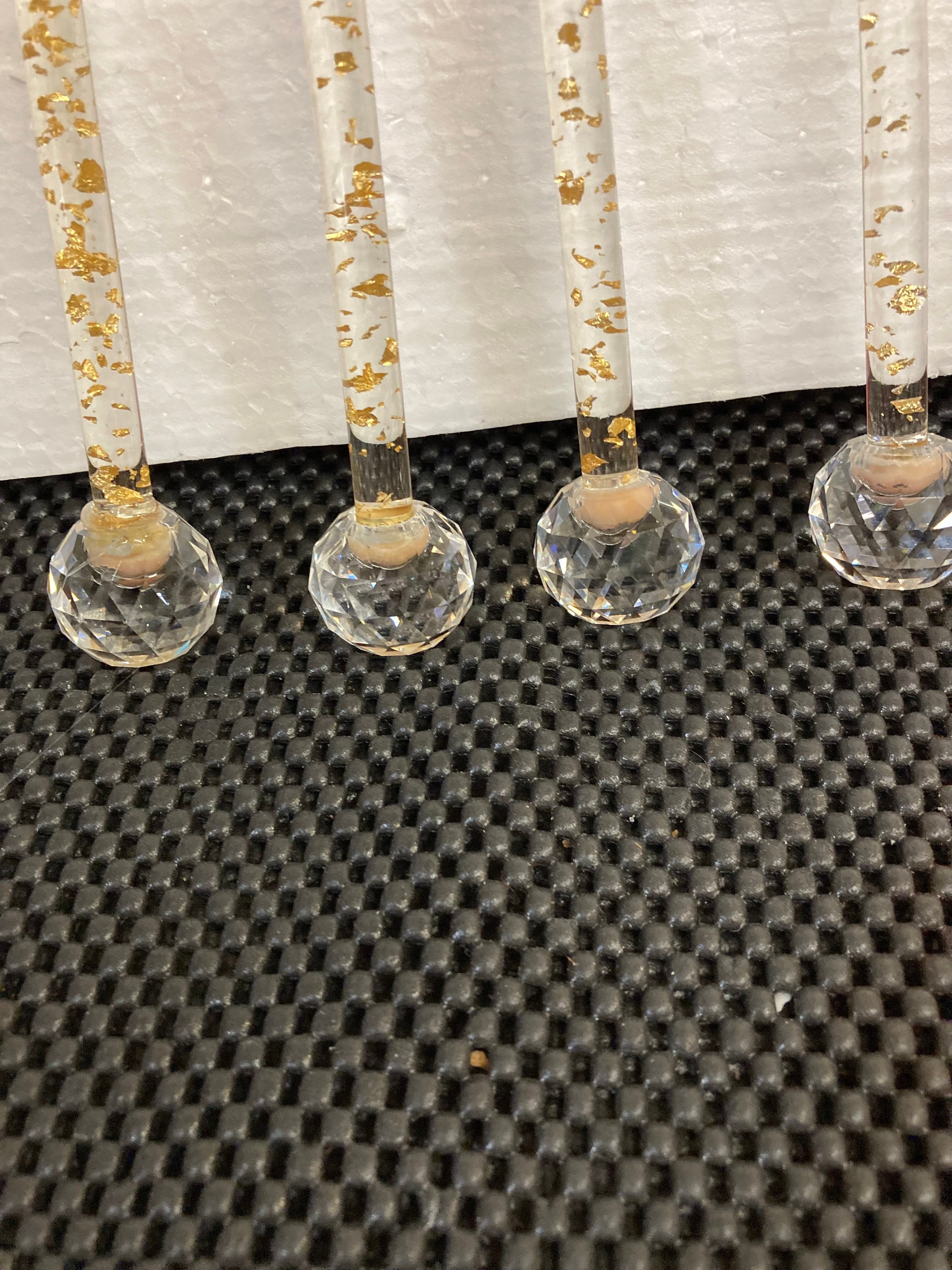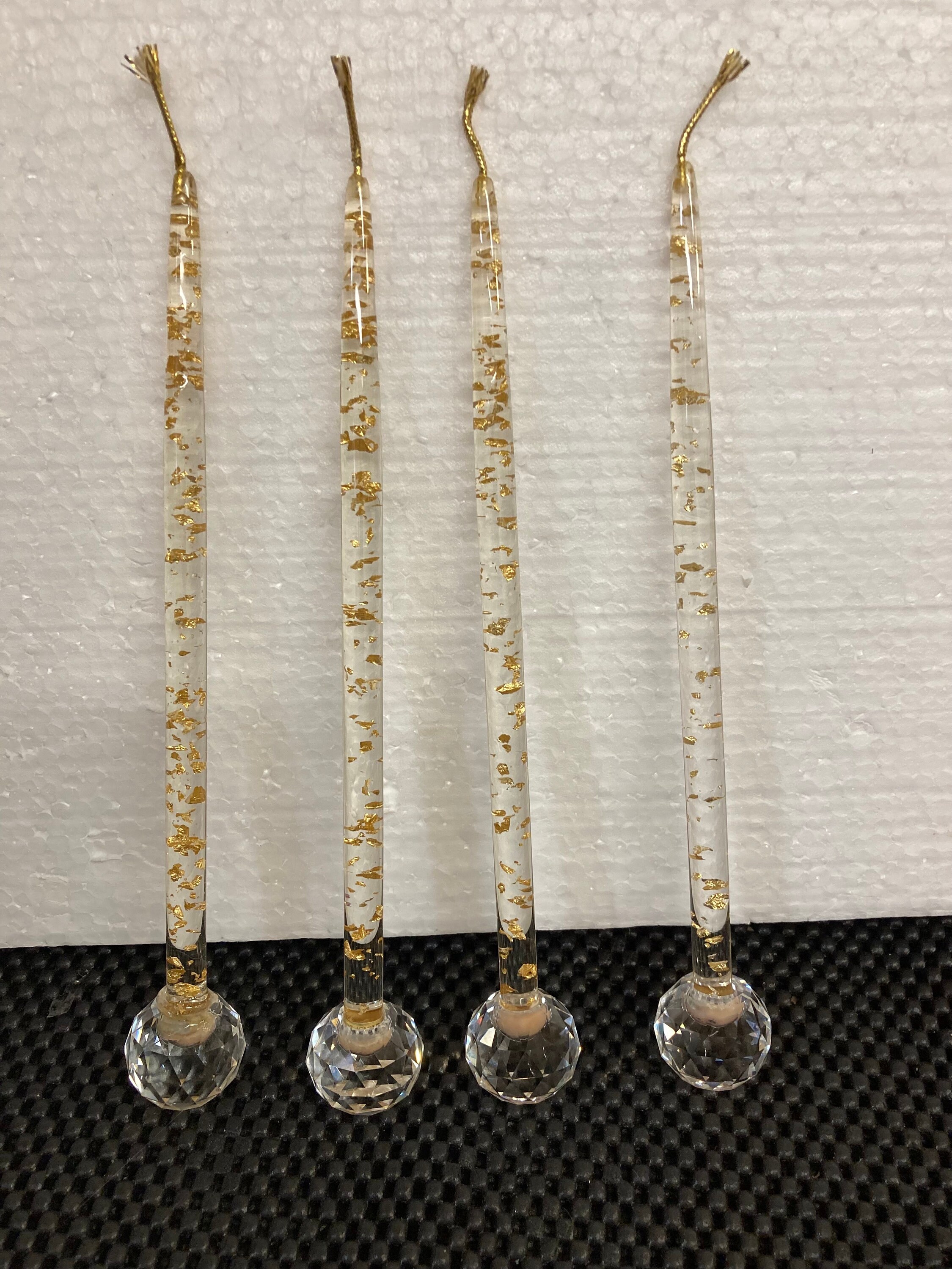 Vintage 4 Acrylic / Lucite Taper No-Burn Candles with 4 Crystal Candle HoldersMCM Lucite Acrylic Candle MCM Lucite Acrylic Taper Candle Clear w/Rose Gold Flakes Circa 1960'sPerfect Condition