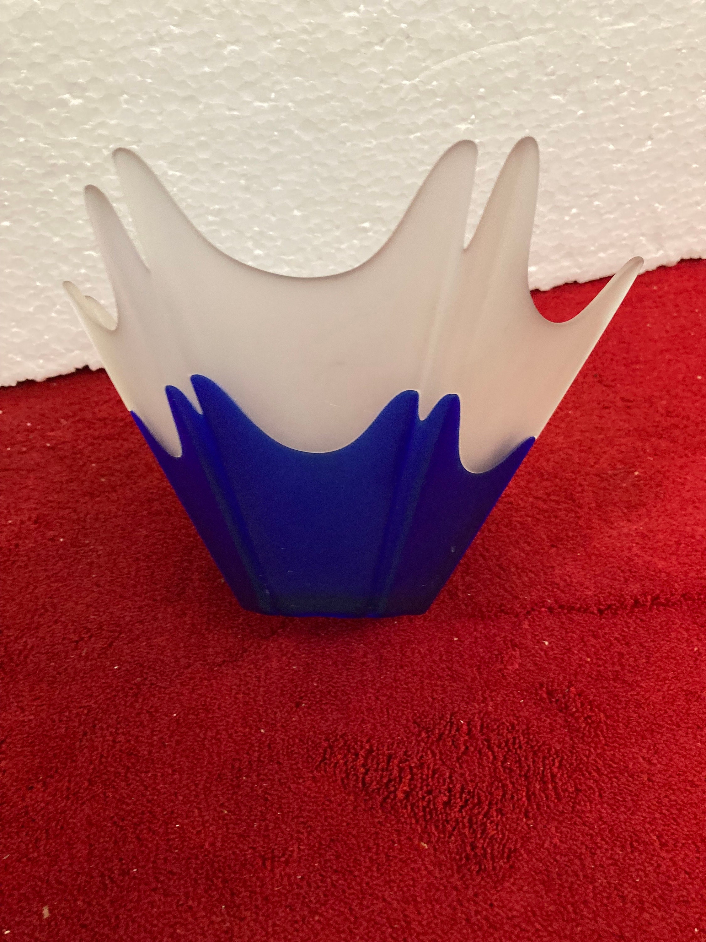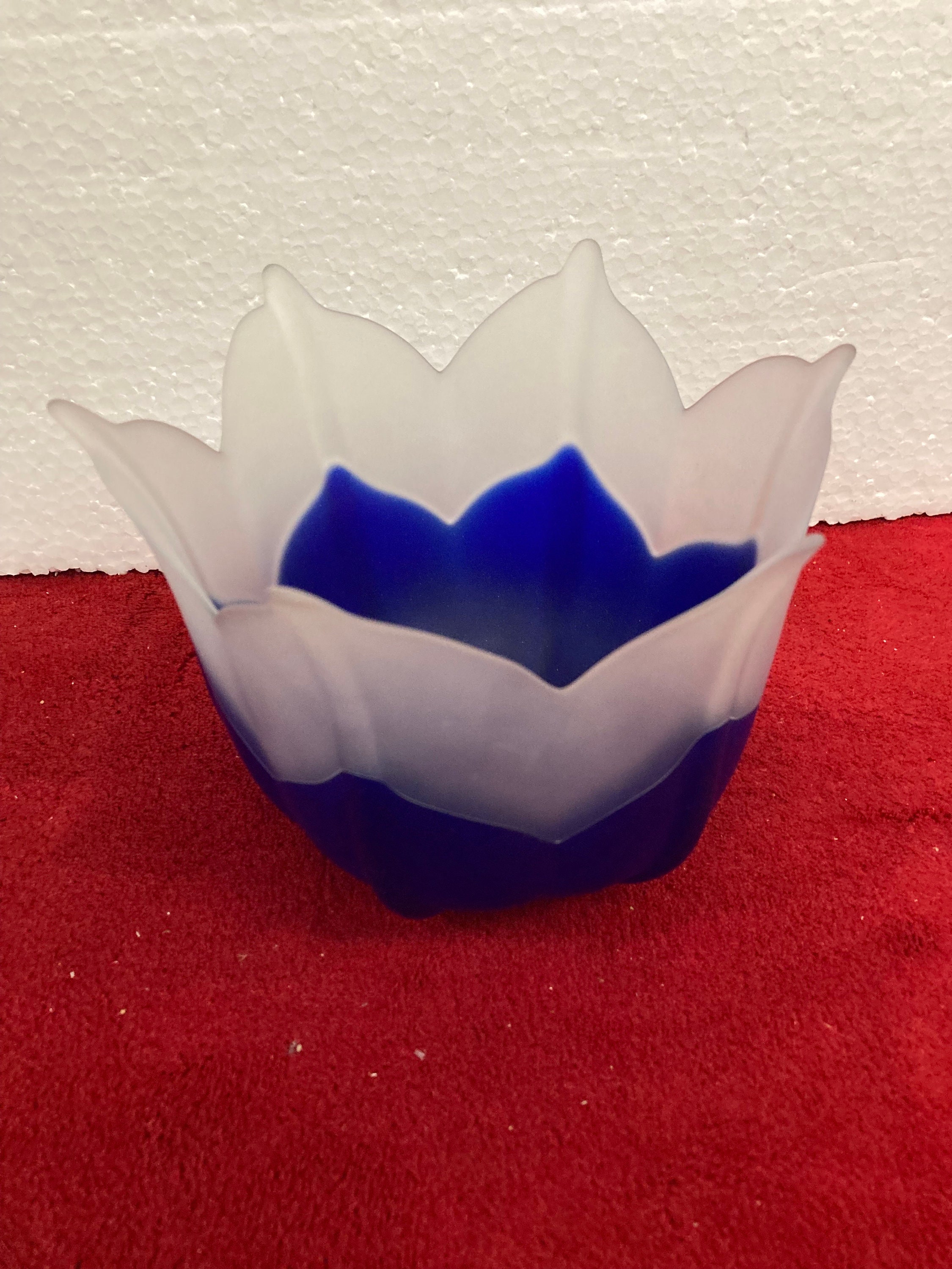 Made in Portugal Exclusively for Partylite. Color: Cobalt Blue/Frosted White. These are cobalt blue and frosted white large candle holder in the shape of a tulip. Illuminate your home with this stunning bold statement piece. Could be used as a decorative bowl. Has some minor scratches and crazing. See pictures. Used in good condition.