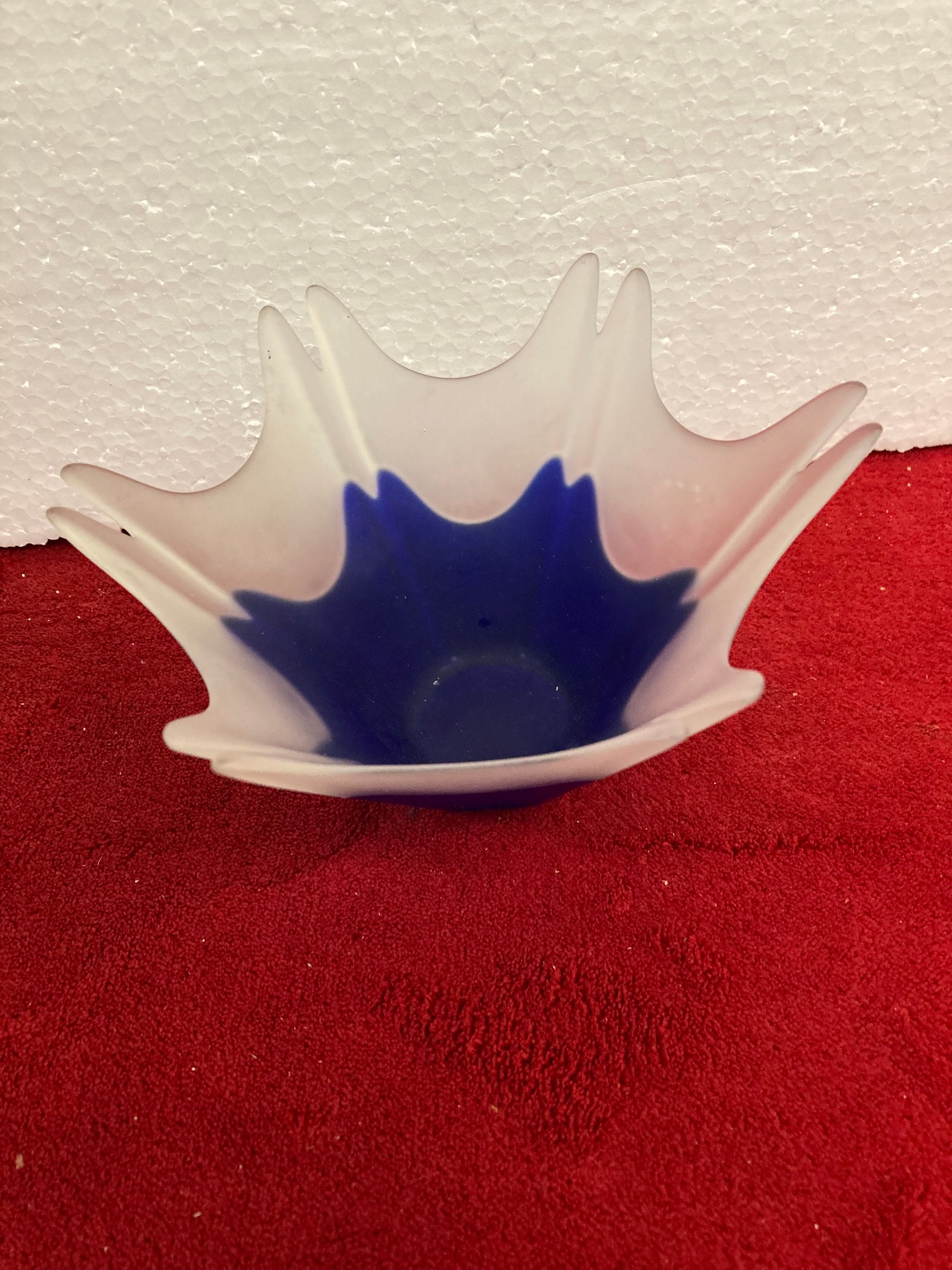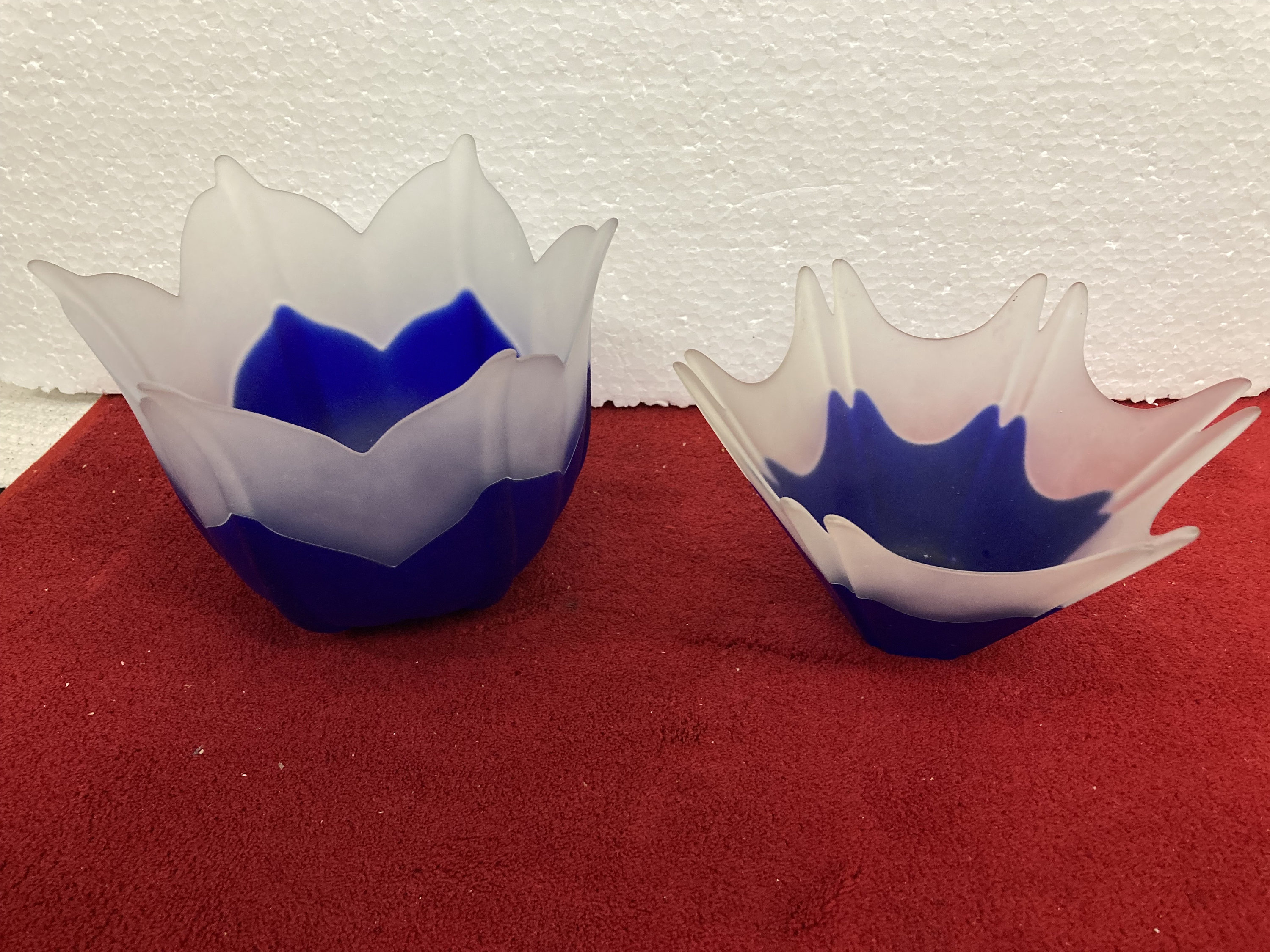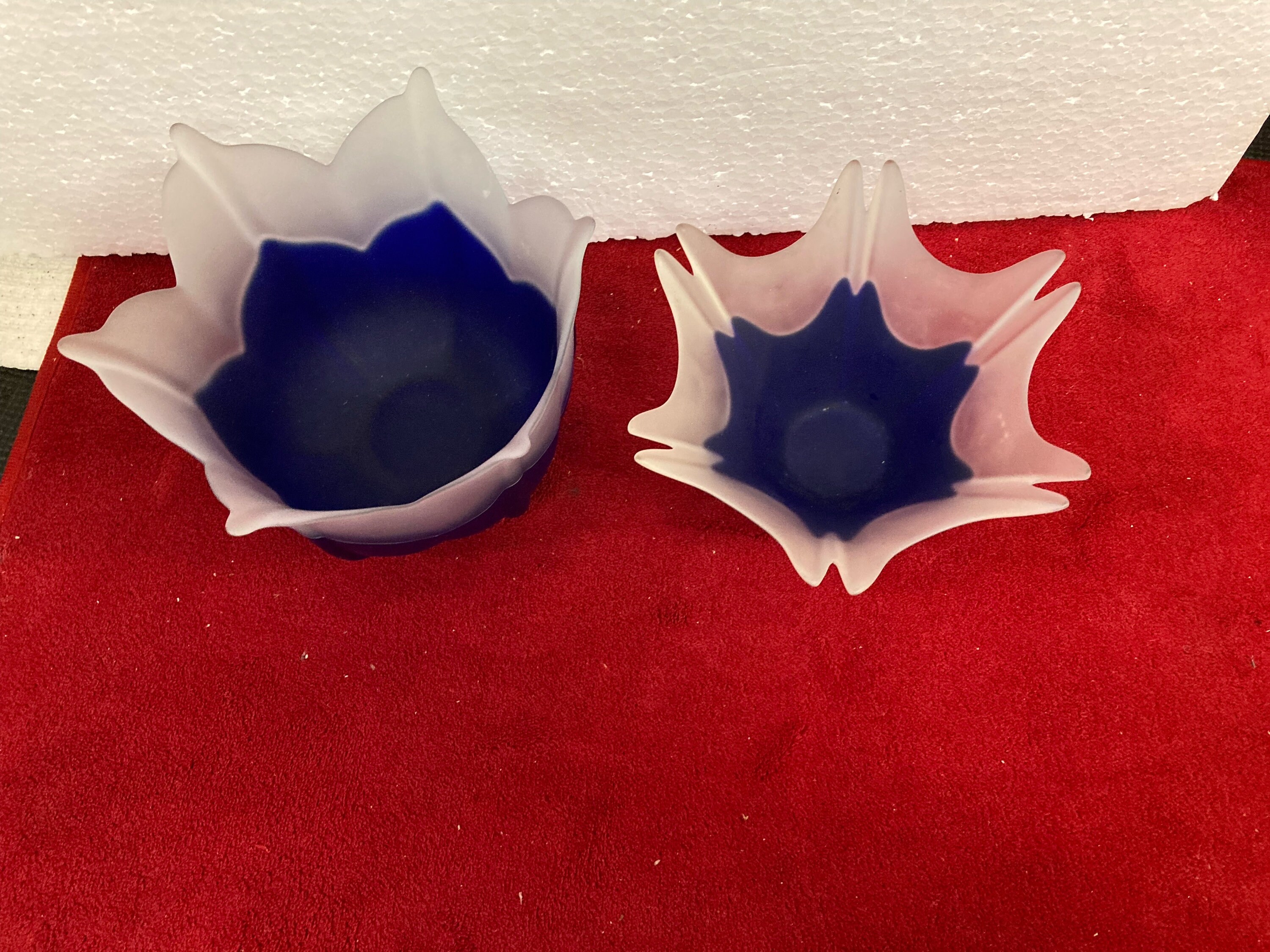 Set of Lotus Cobalt Blue Bowl Glass Star Shape Frosted Vase Candle Holder