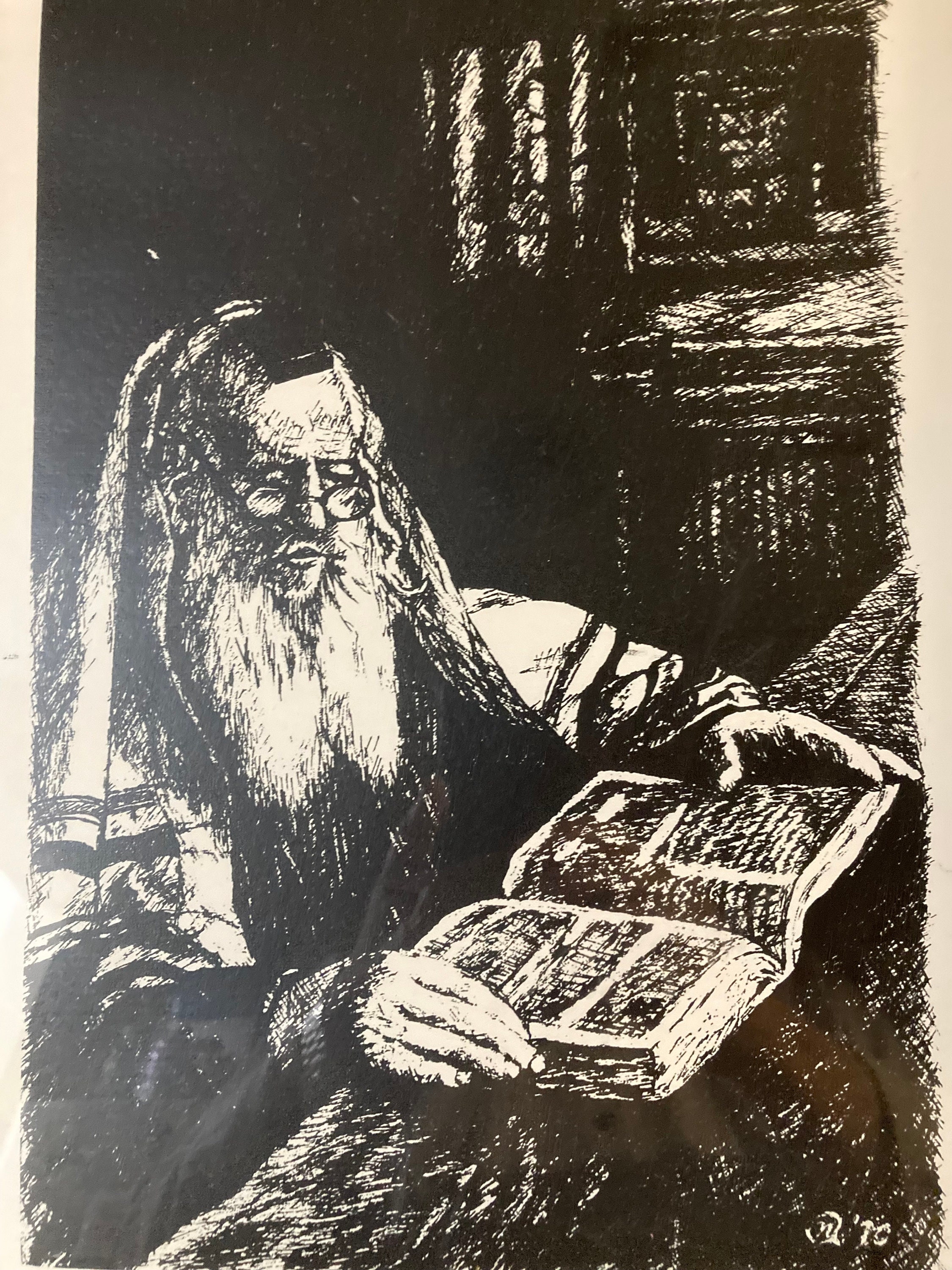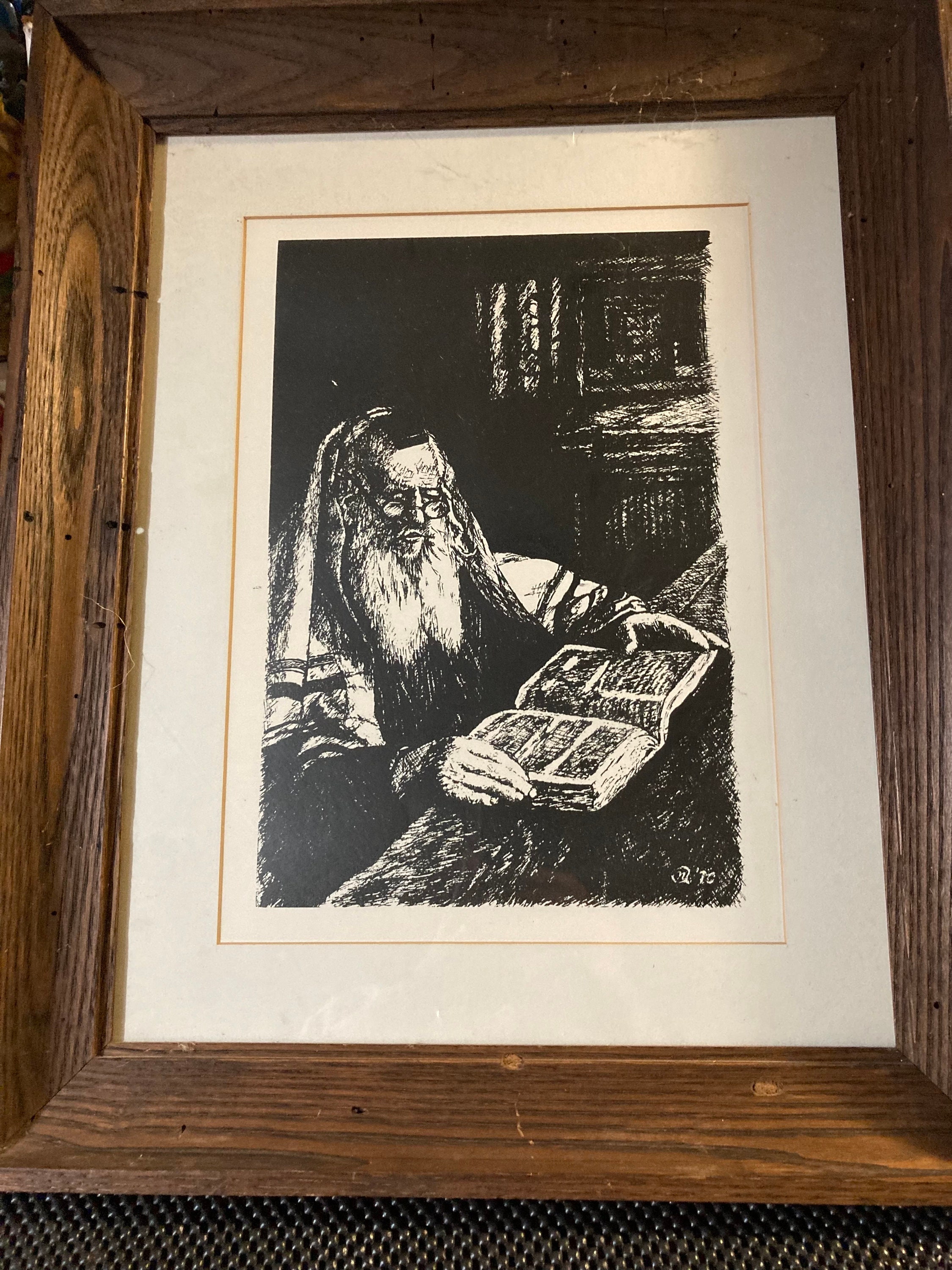 Norm Altman’s depiction of a rabbi studying the scripture captures the diligent nature and contemplative mood of the religious man at work.