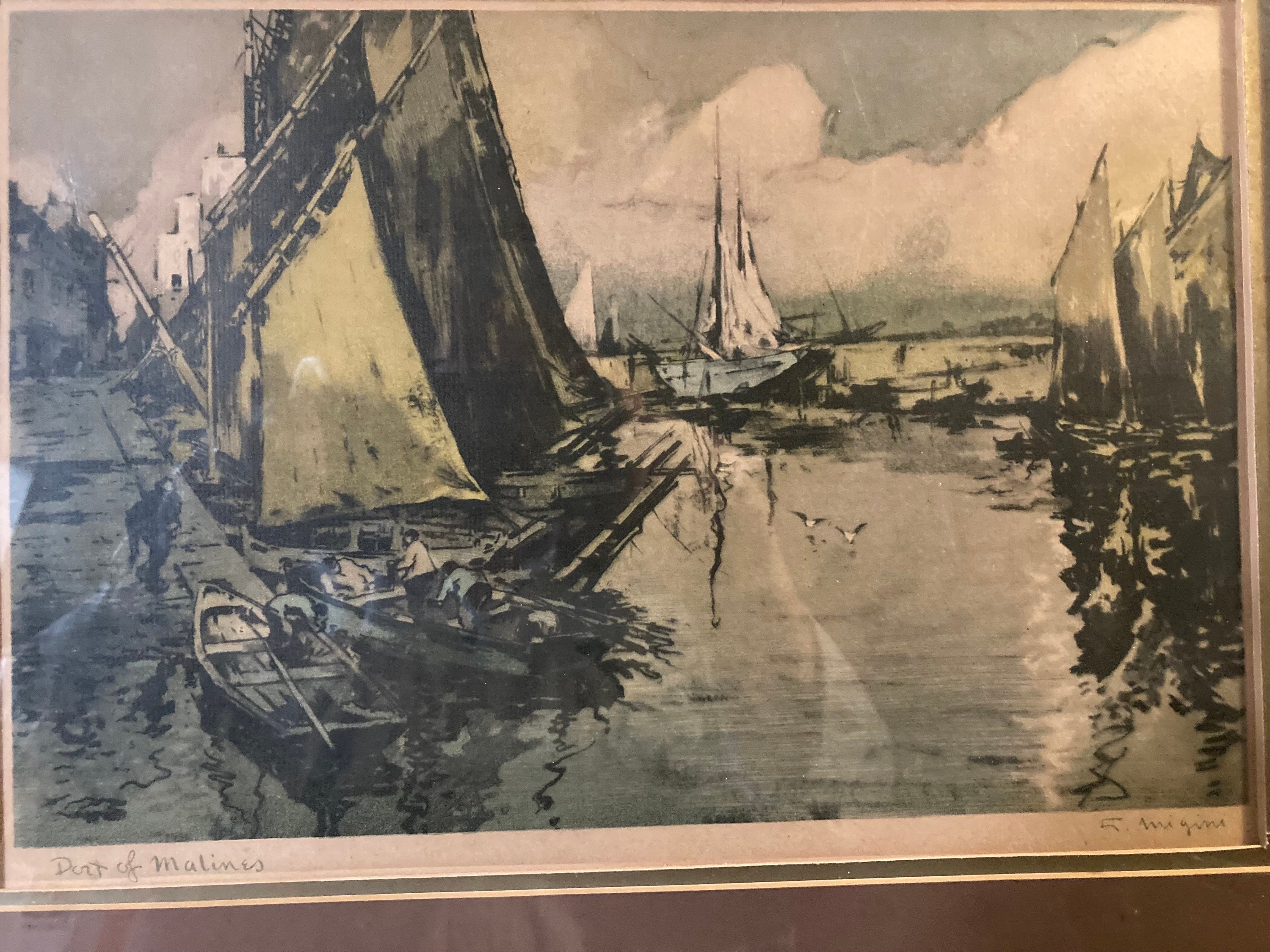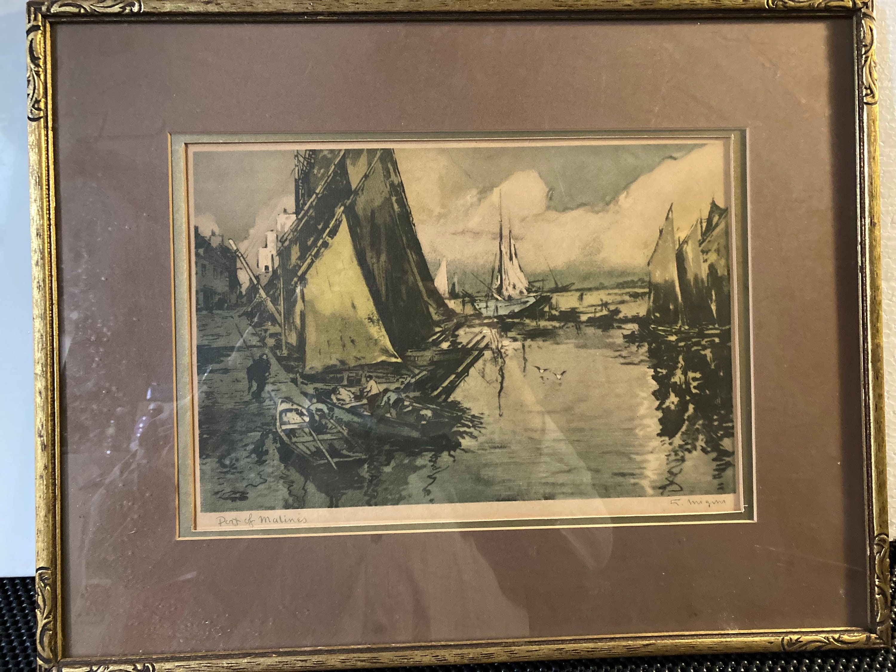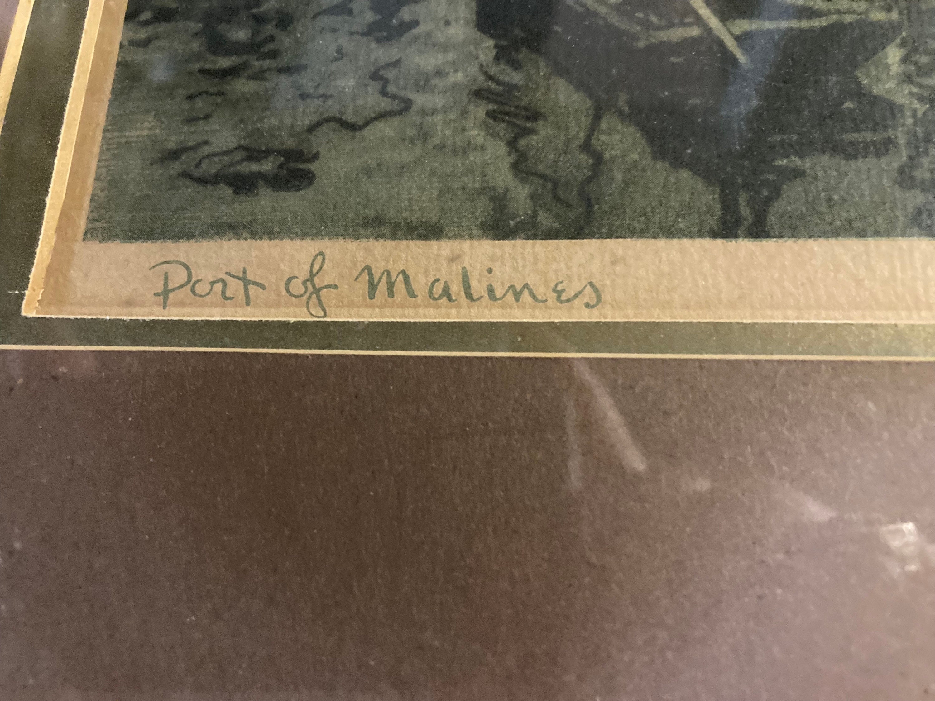 Early 20th Century 1924 large framed etching signed and titled in pencil from the Impressionist Master Ferdinand Jean Luigini titled "Port of Malenes" Limited edition , hand printed/etched by artist medium multiple coloured on high quality watermarked cotton rag vintage board.