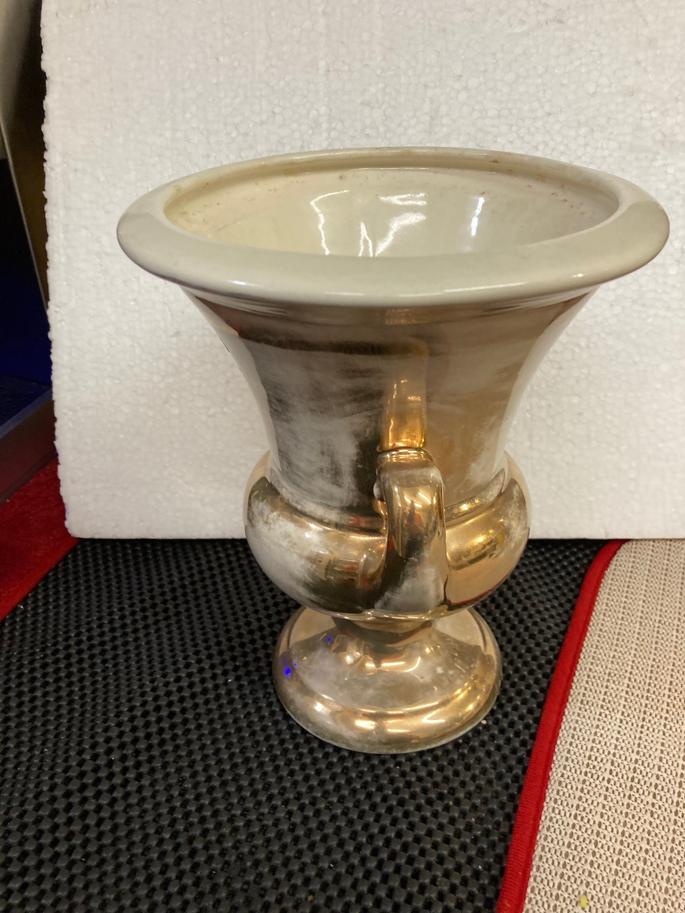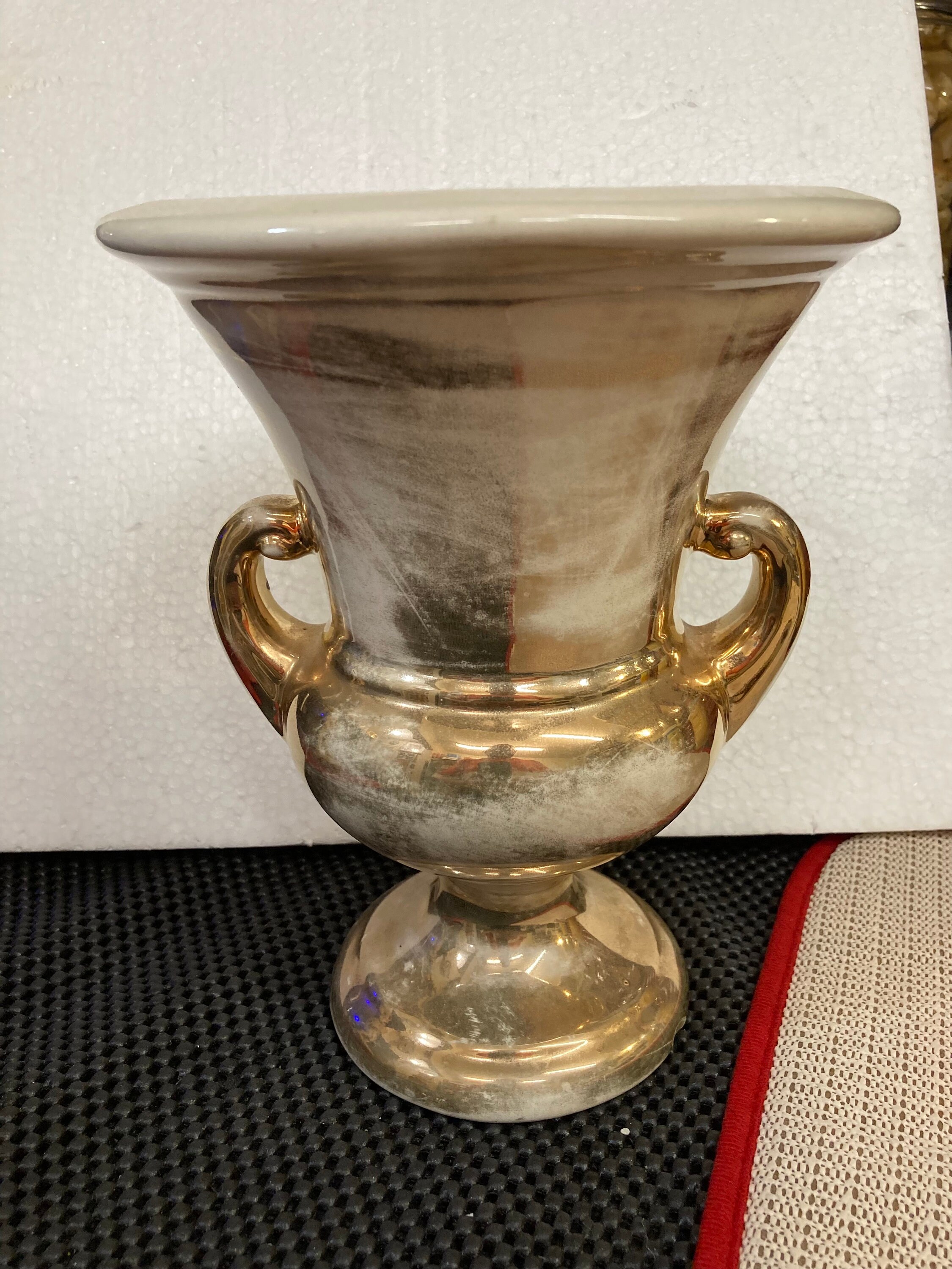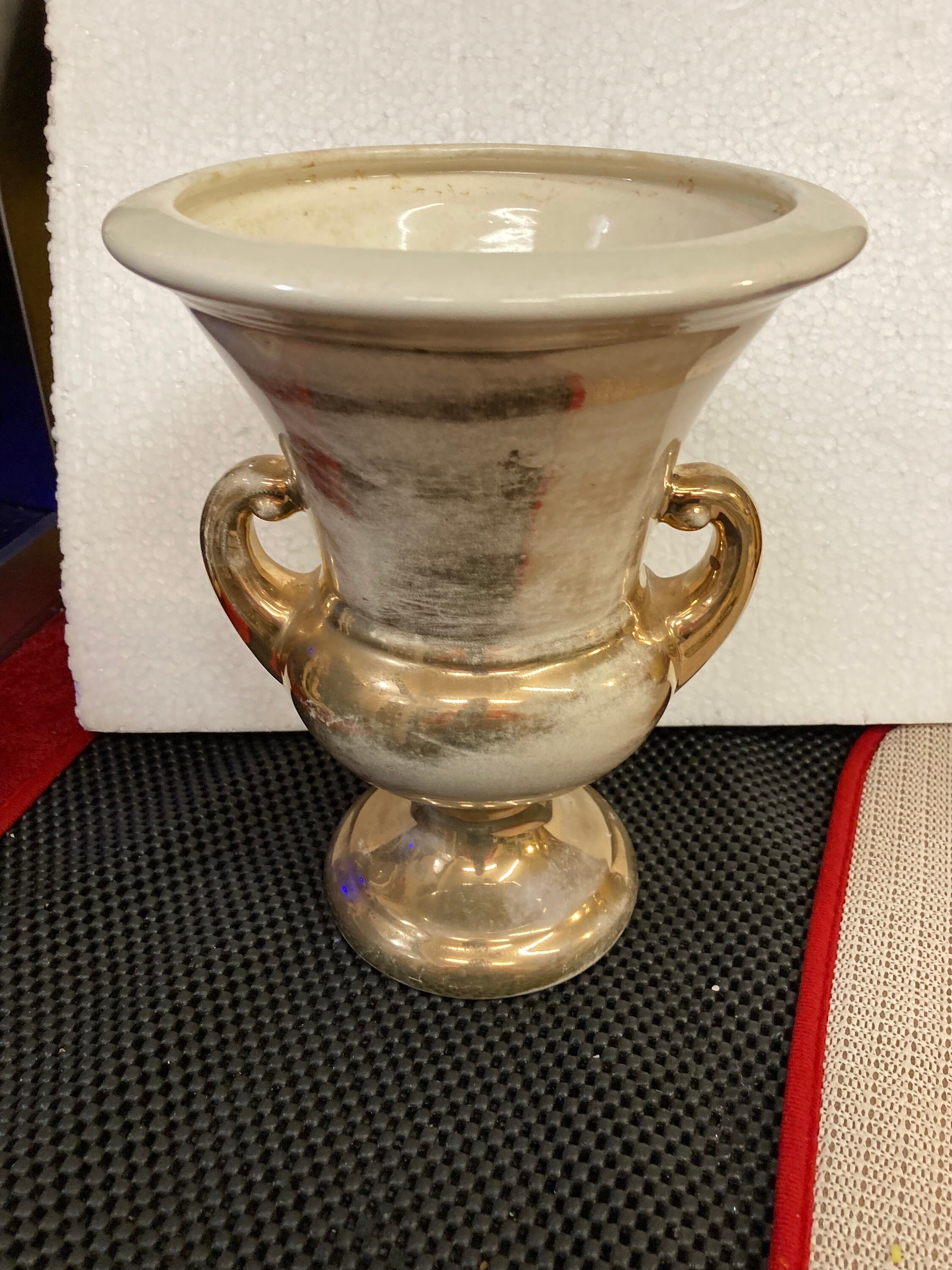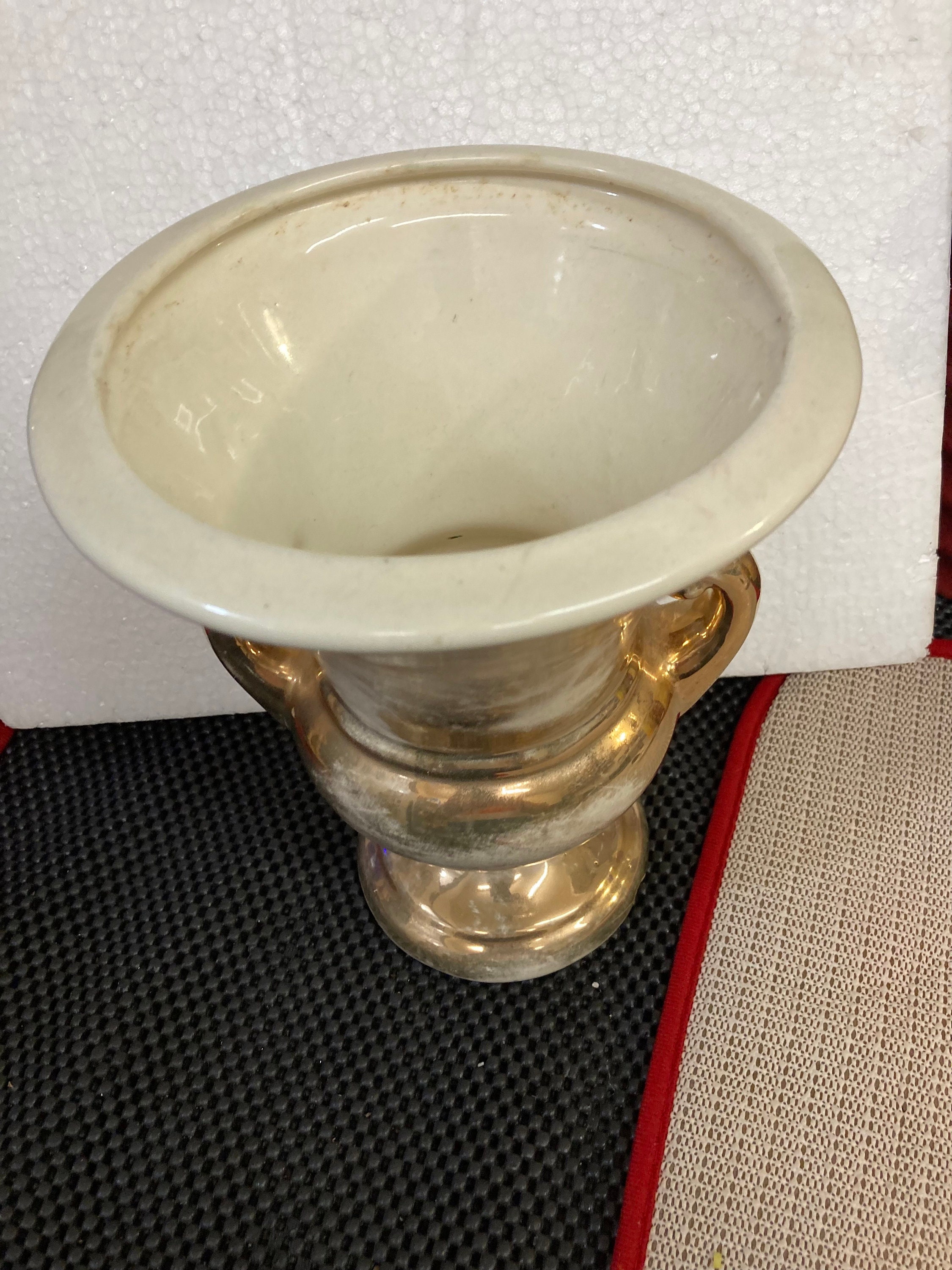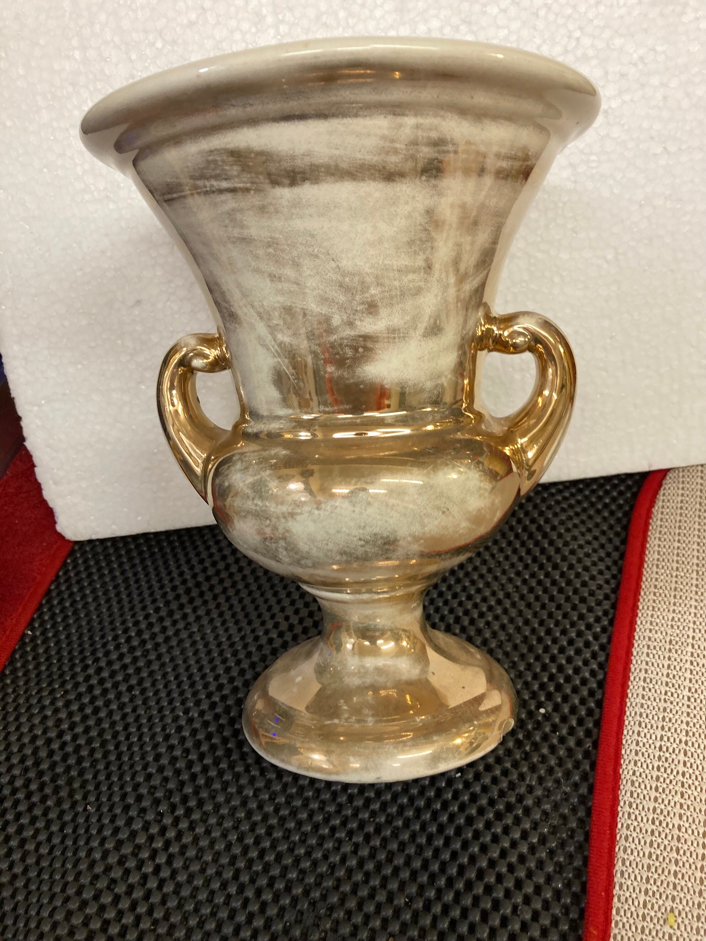HAEGER USA POTTERY VASE, URN STYLE, Gold and Cream combination
