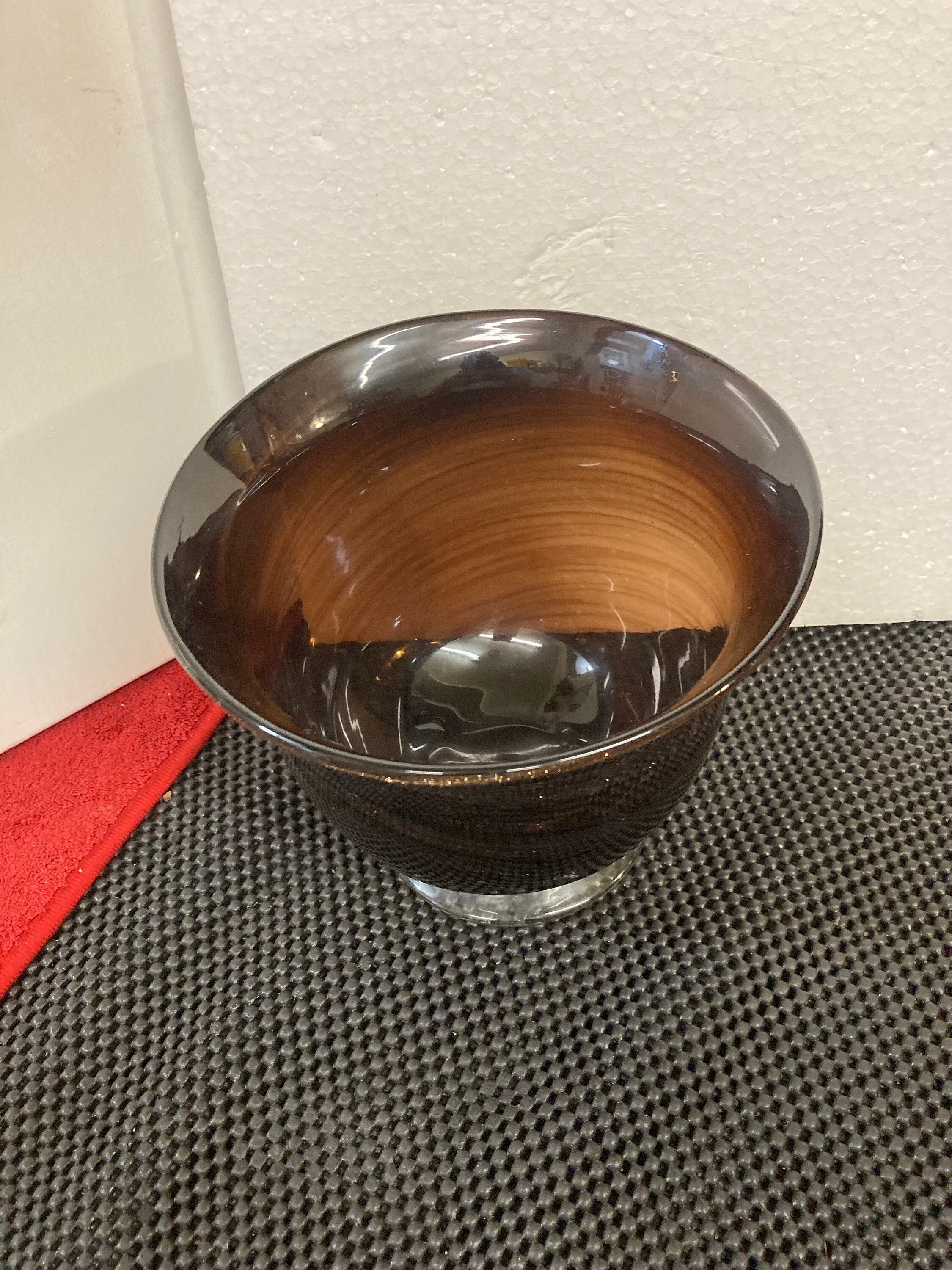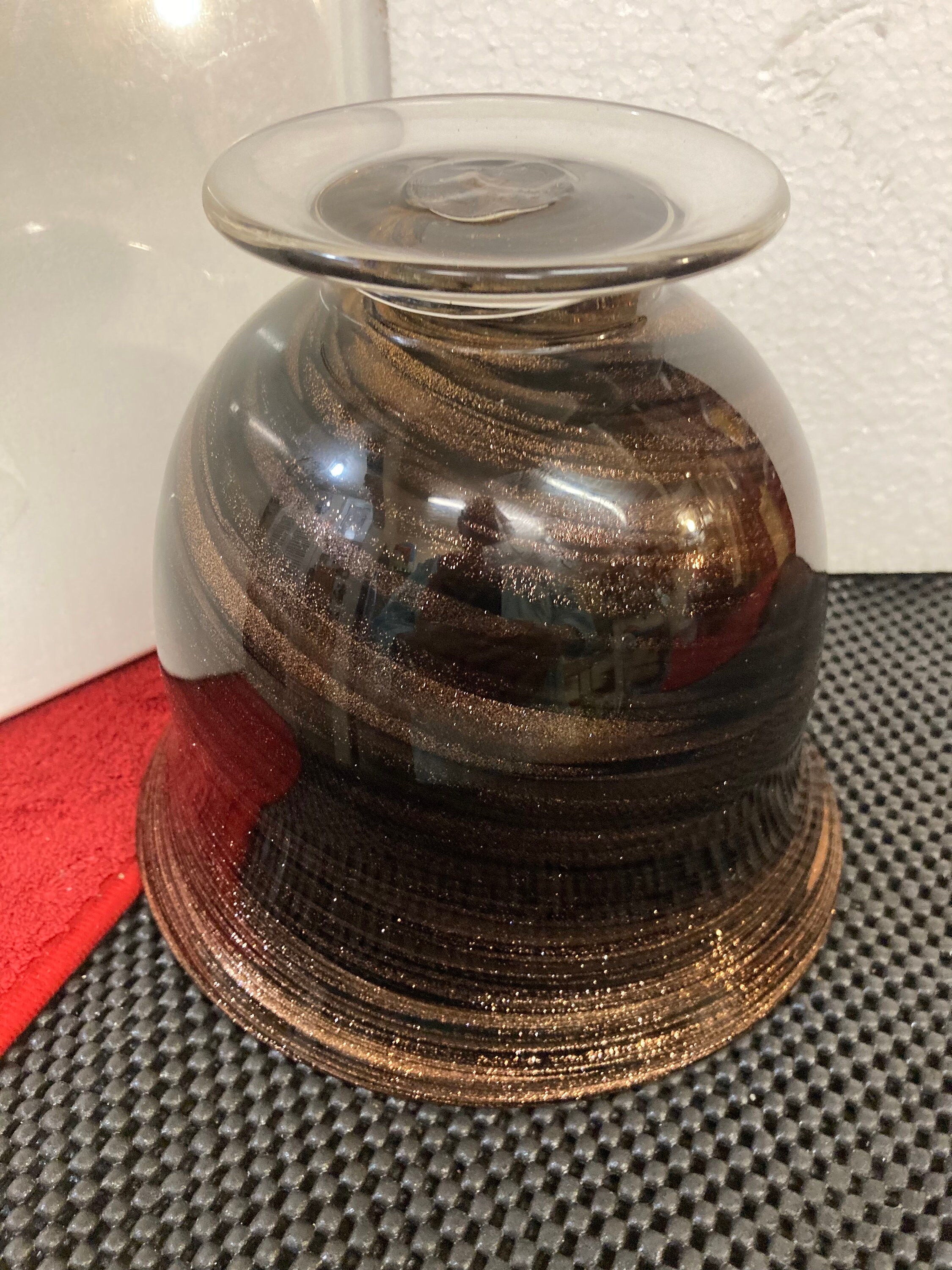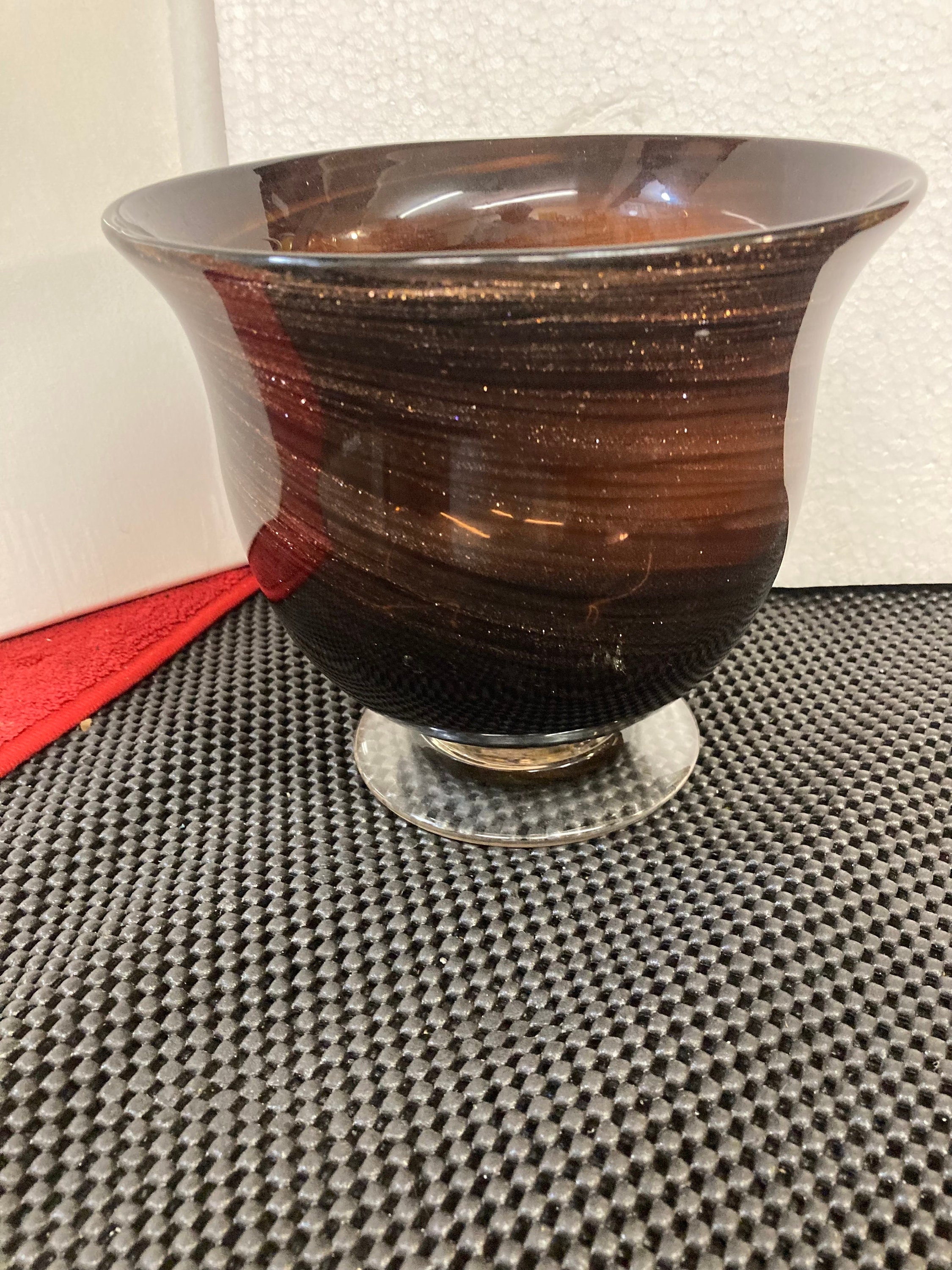 Beautiful, Footed, Wide Mouth Aventurine Vase Weight : 2.5 lbs6.5" tall x 7.25" wide( 9 top) x 4 " at baseExcellent vintage condition with no damages, chips or cracksHandmadeMade In ItalyMurano