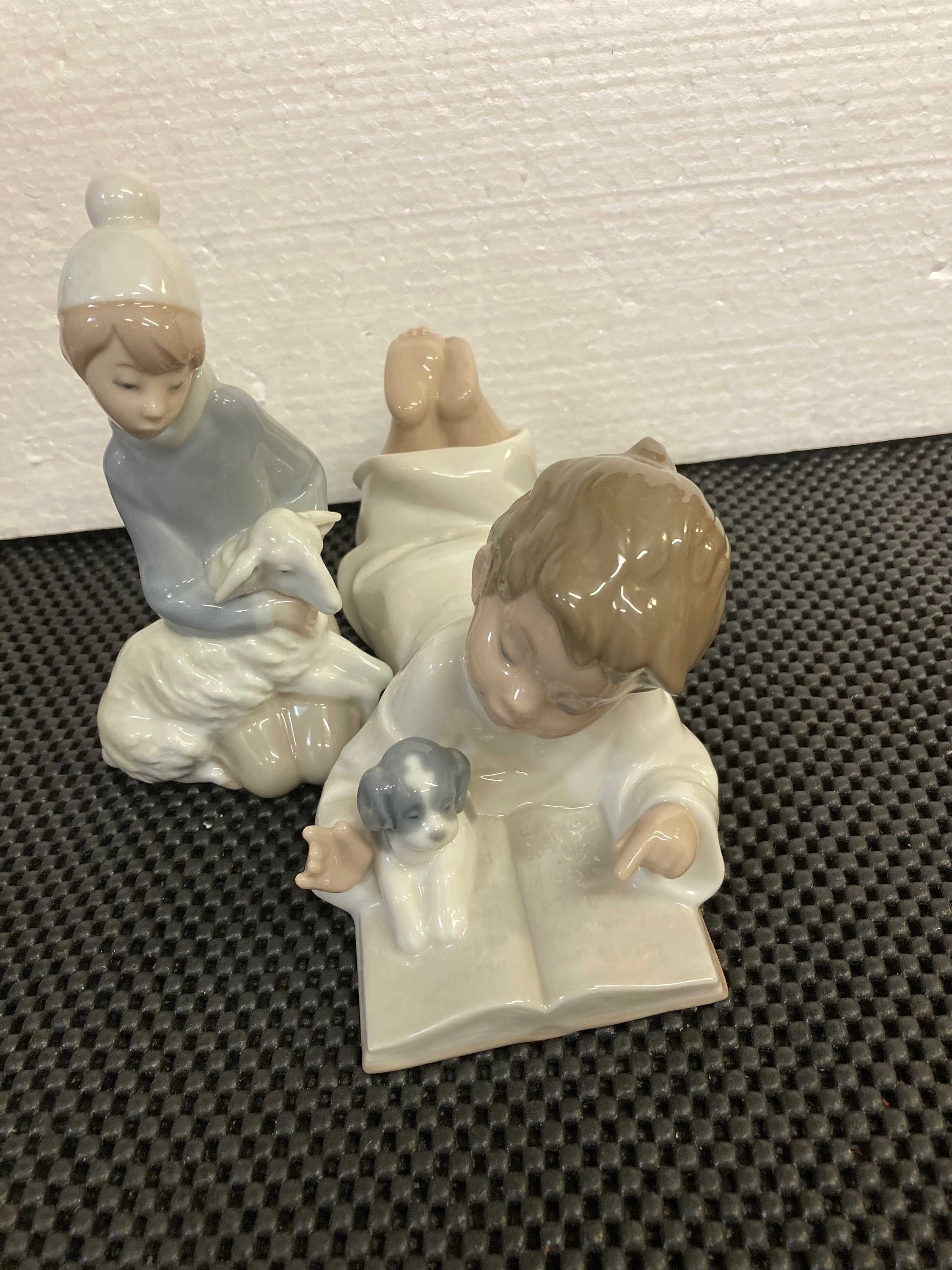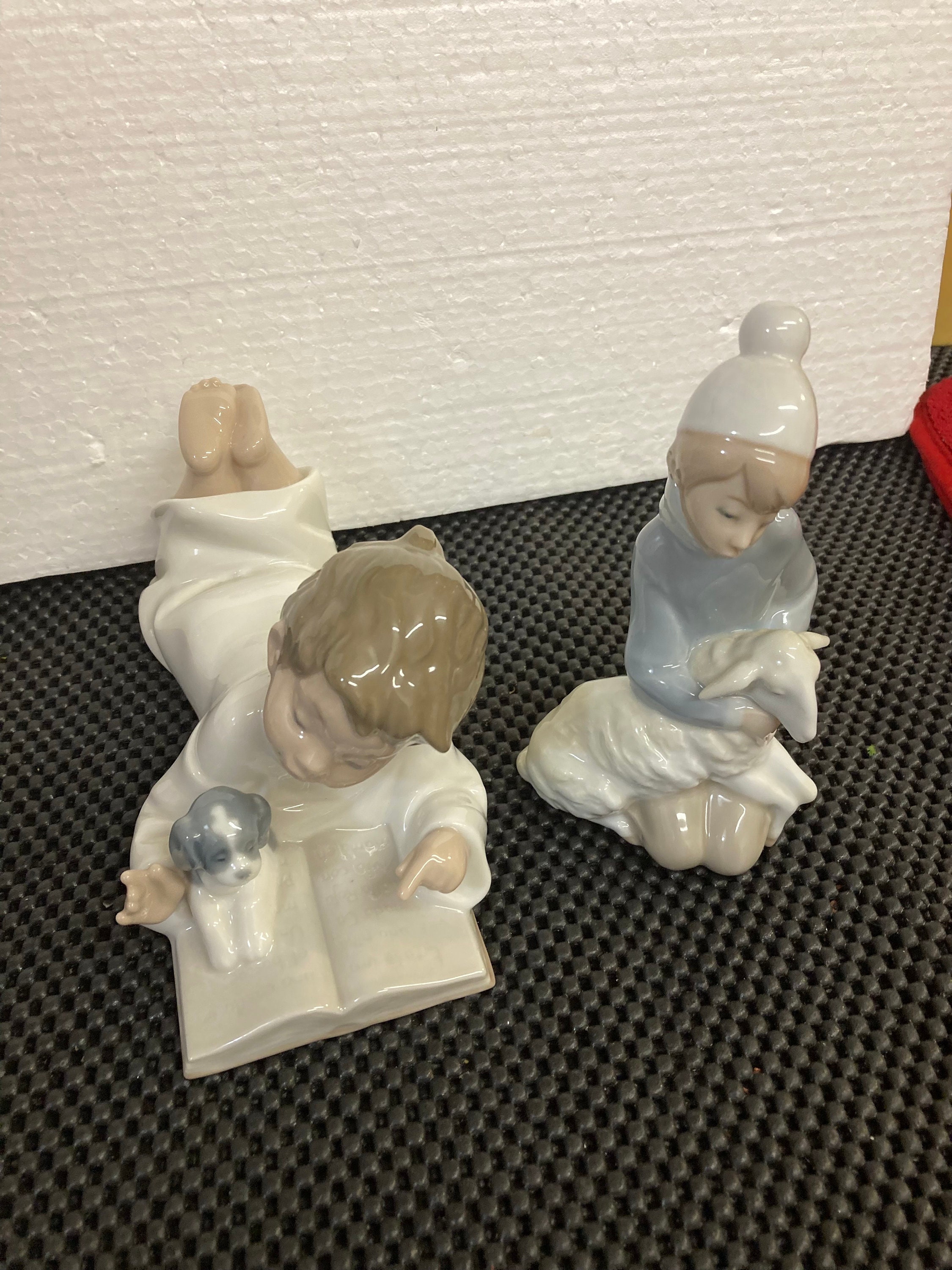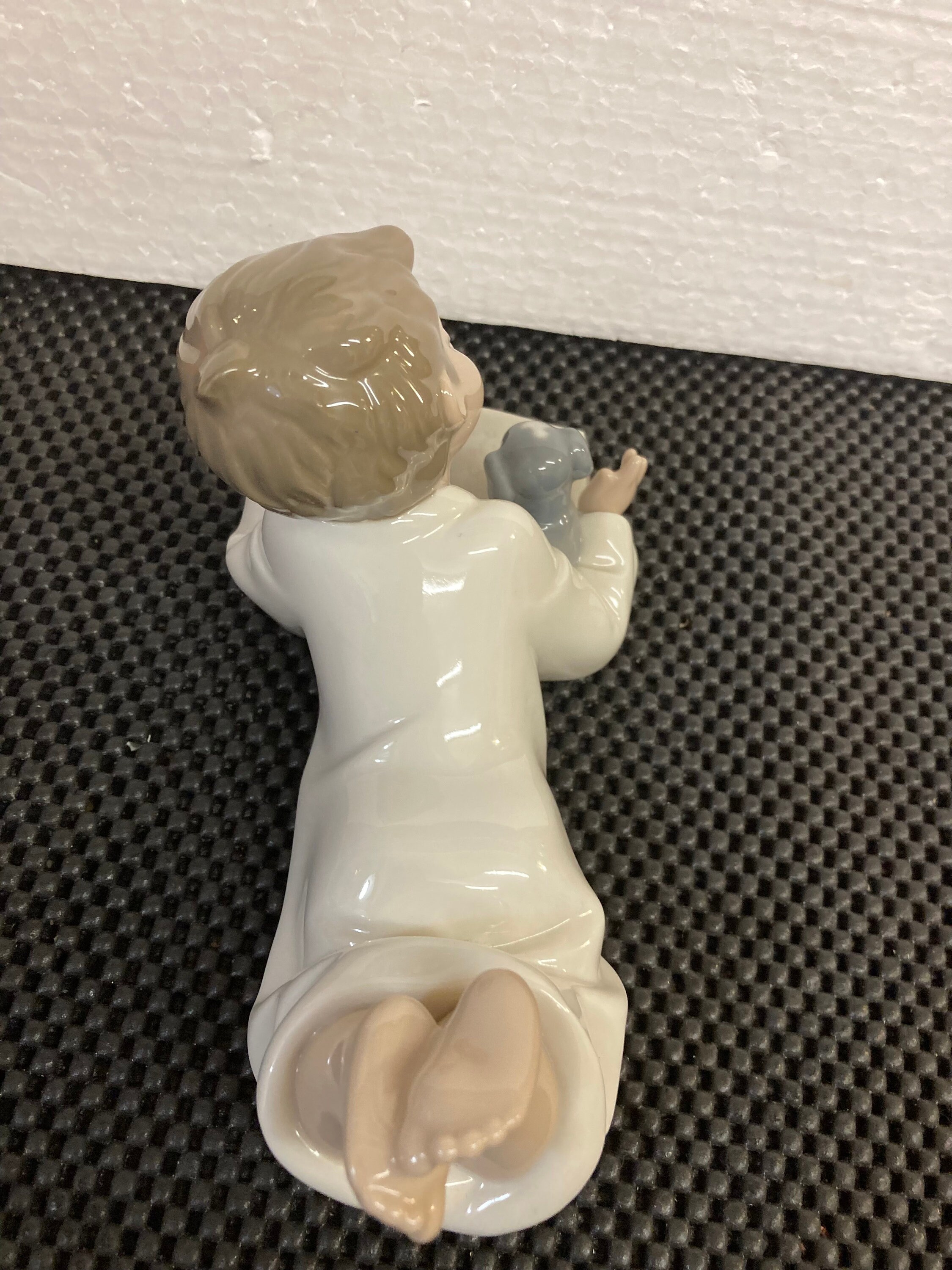 NAO: Boy Reading Book With His Dog next to Him # 1285 , 3 3/4" tall x 7" wide x 3 1/2 " deep