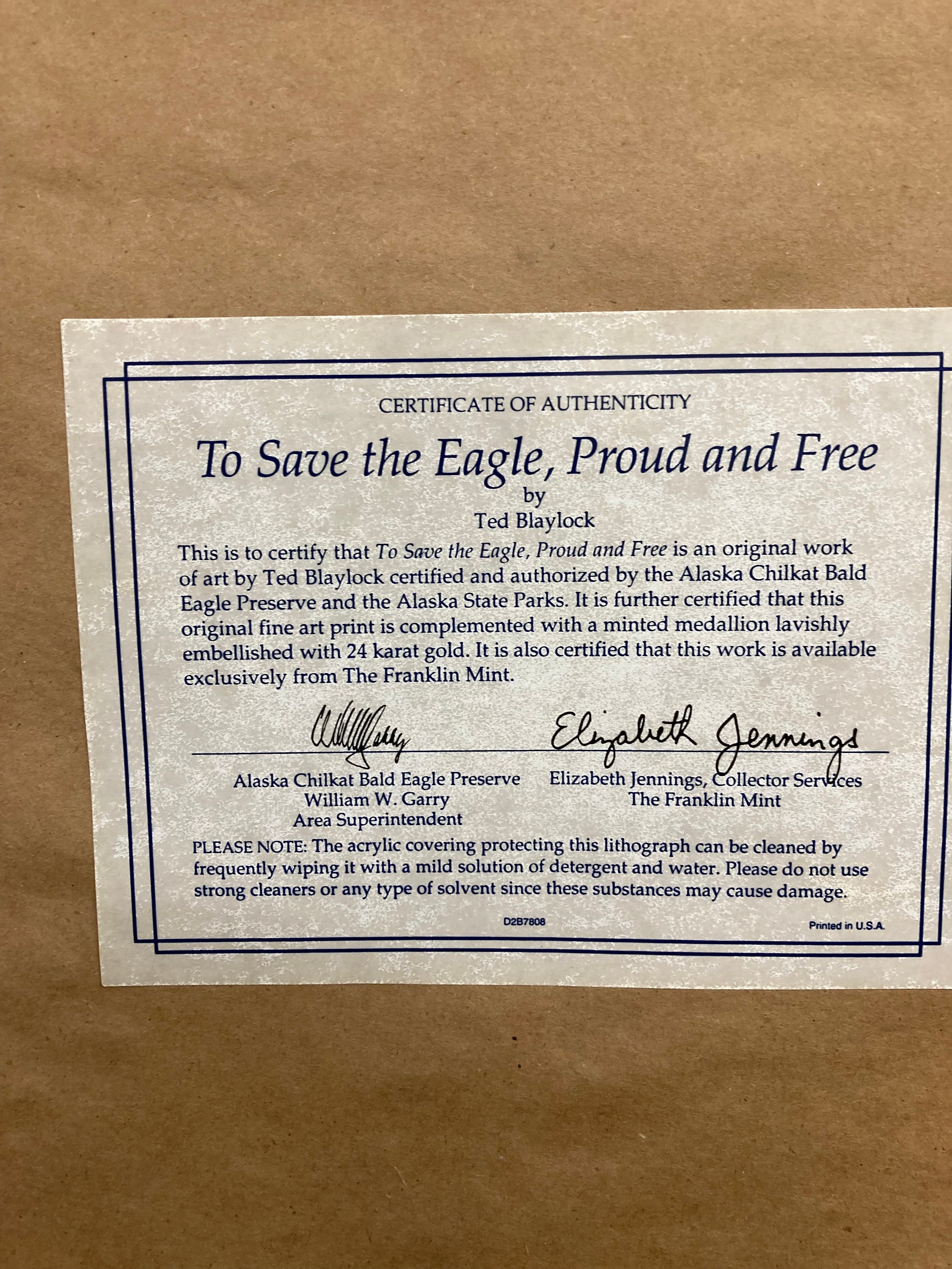 Franklin Mint Ted Blaylock save the eagle signed framed lithograph