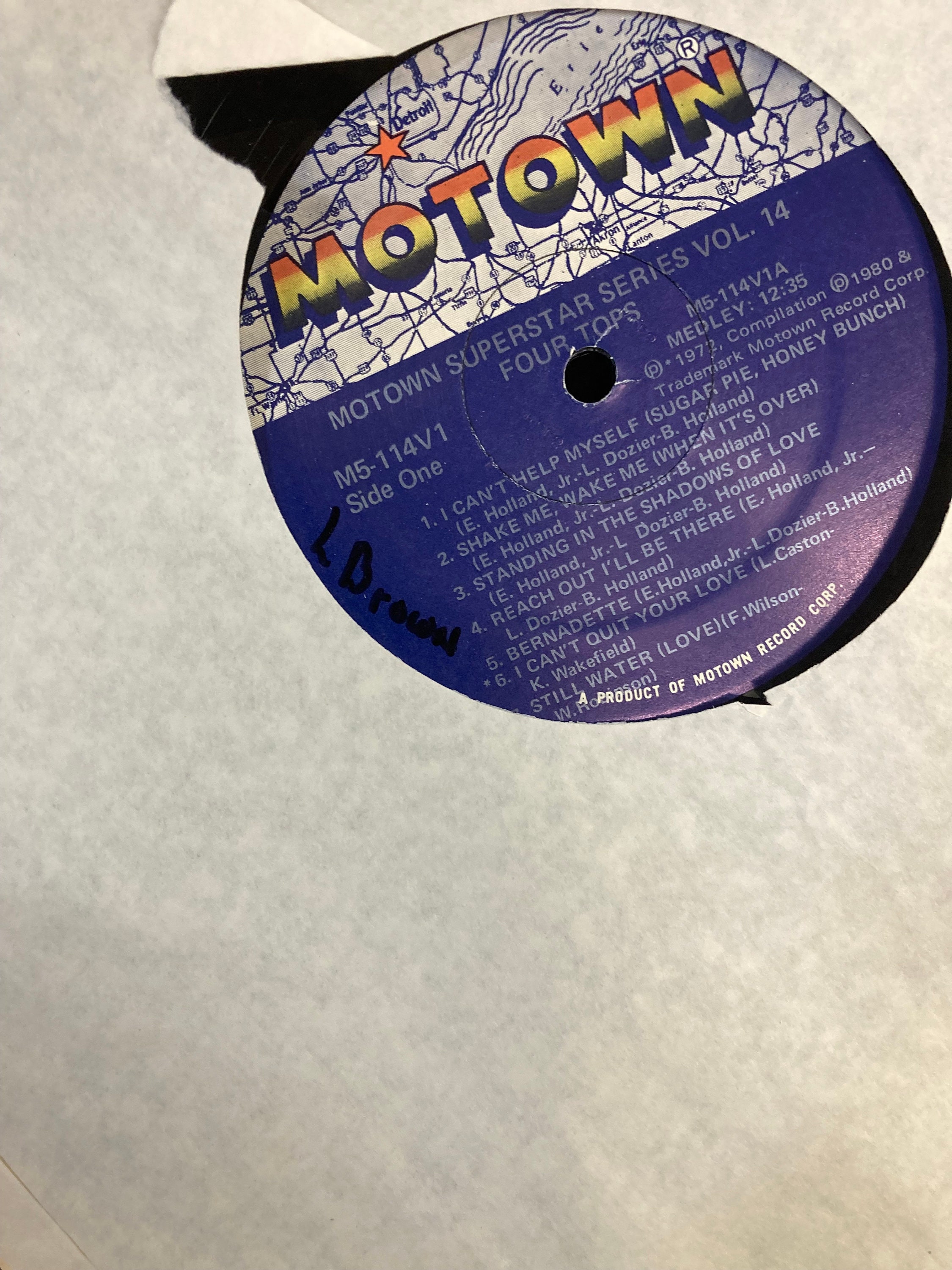 This is the Four Tops vinyl LP from 1972, with the classic medley of I Can't Help Myself, SHake Me Wake Me, Reach Out, Bernadette, Still Water, along with the hits I Can't Quit Your Love, It's The Same Old Song, Ask the Lonely, It's All In The Game, Baby I Need Your Loving and Don't Bring Back the Memorie