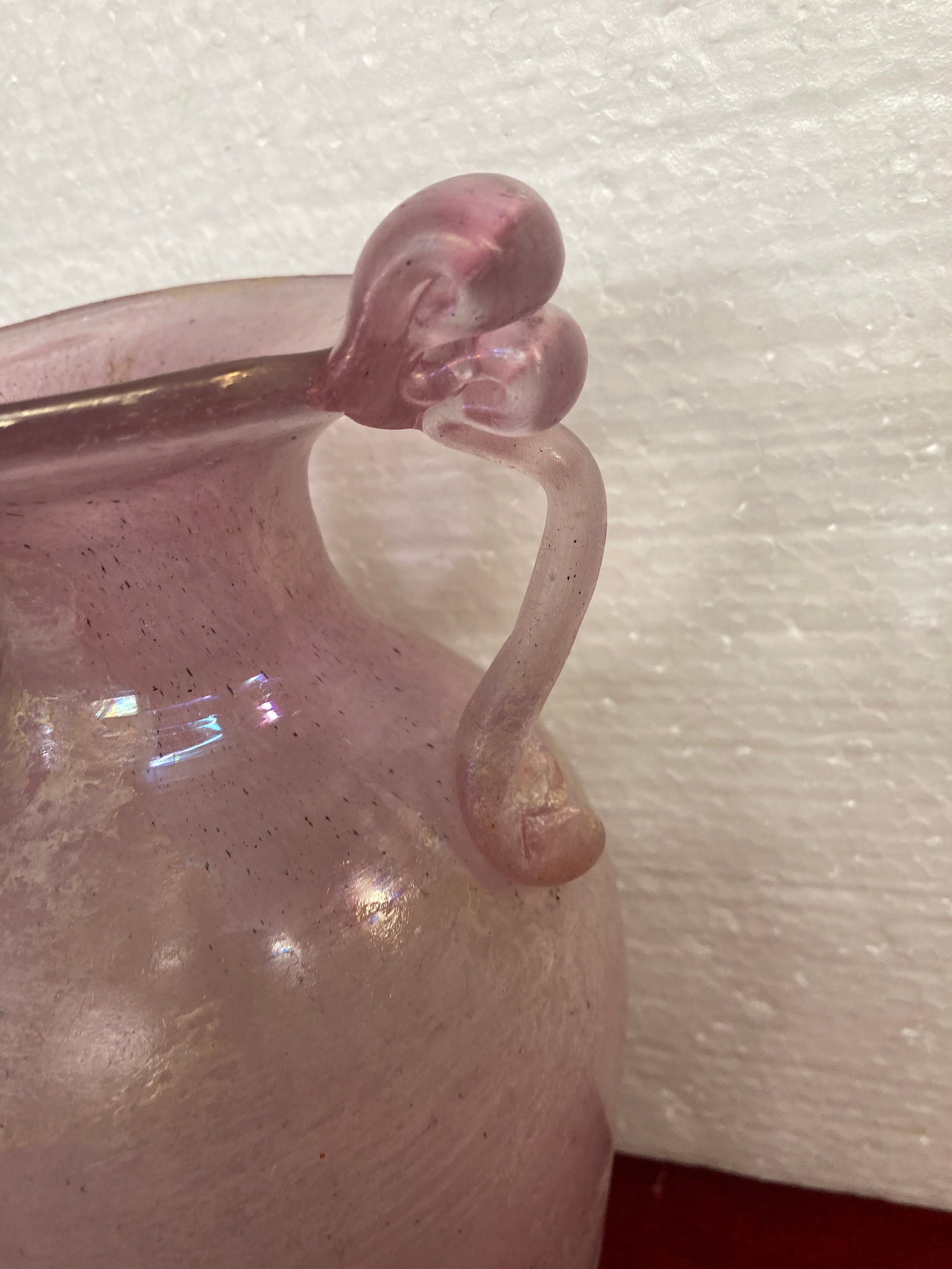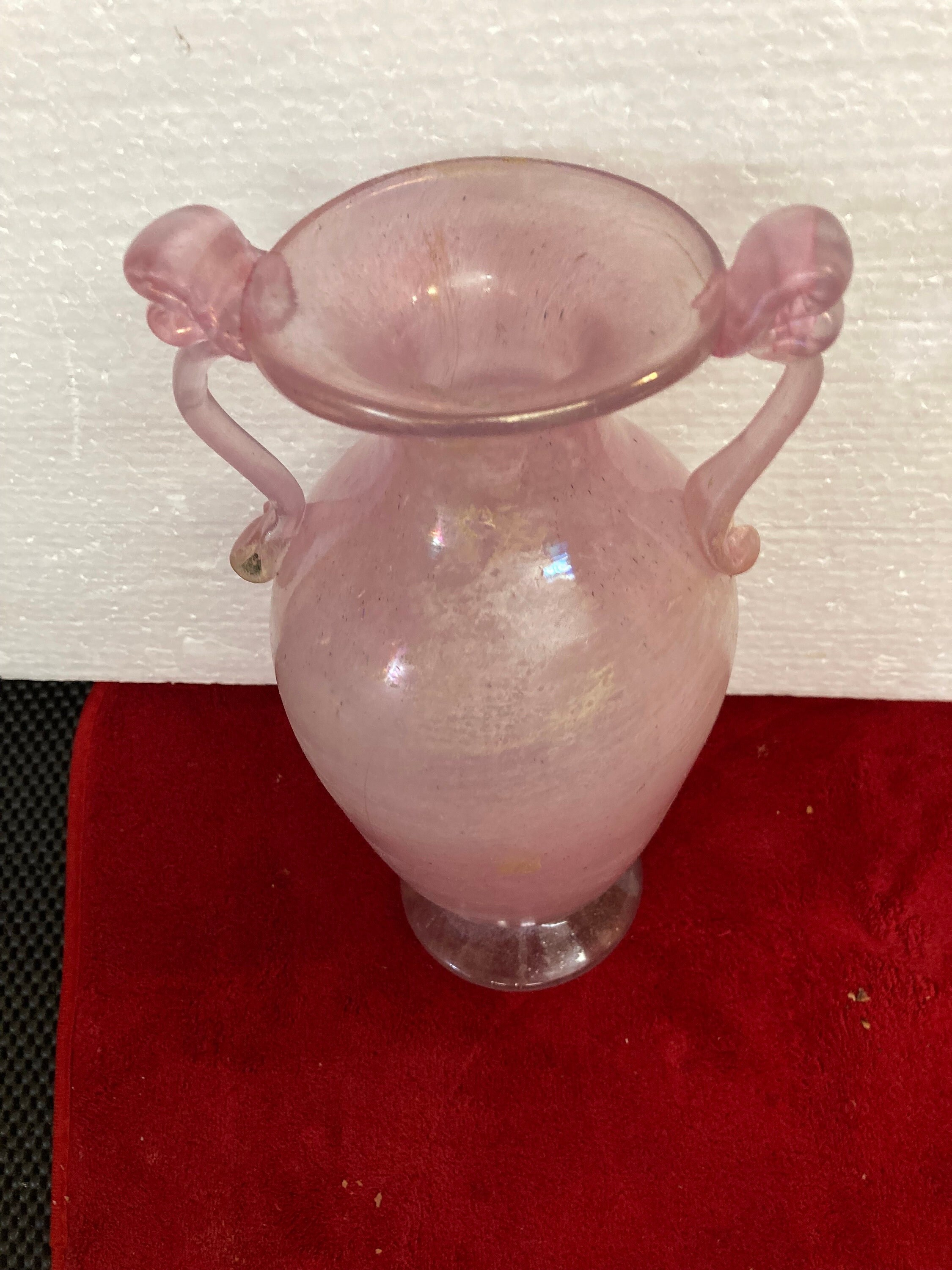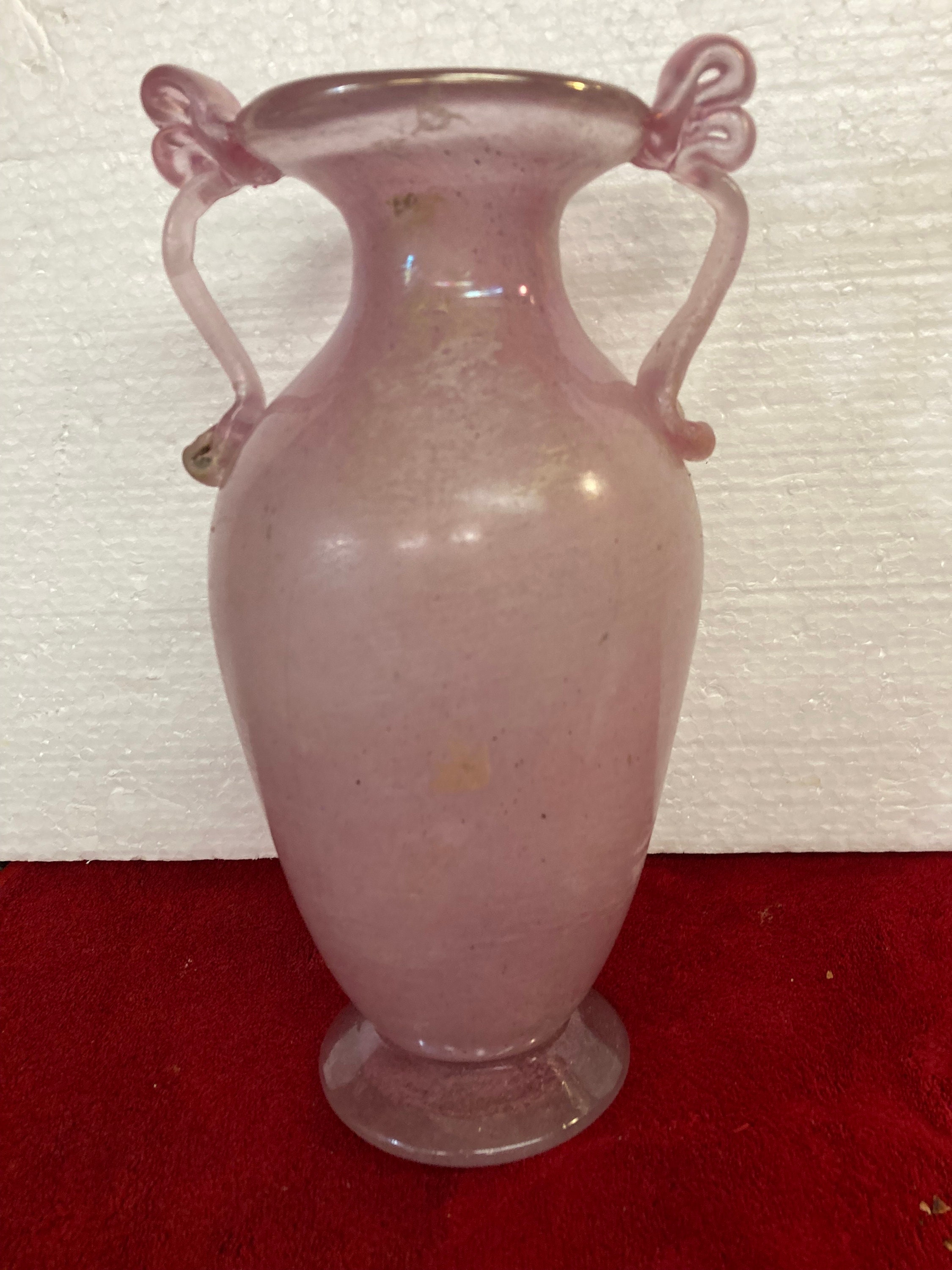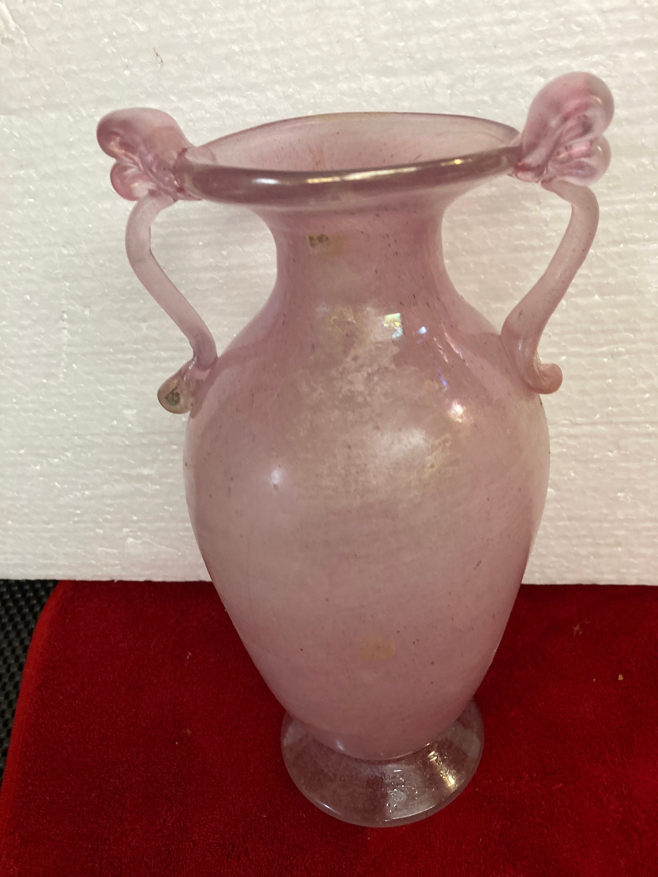 Hand Blown and Handmade iridescent Pink Glass Vase